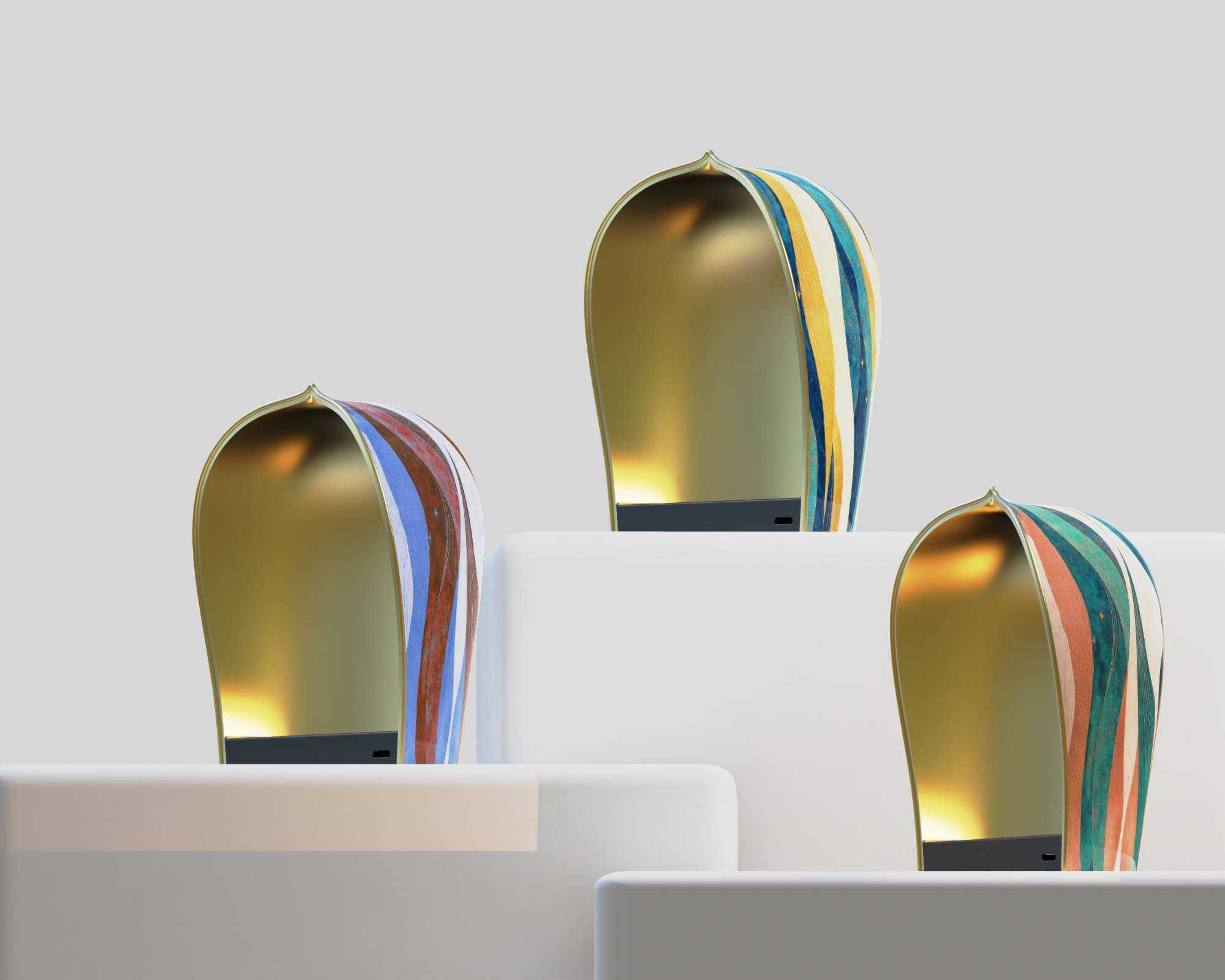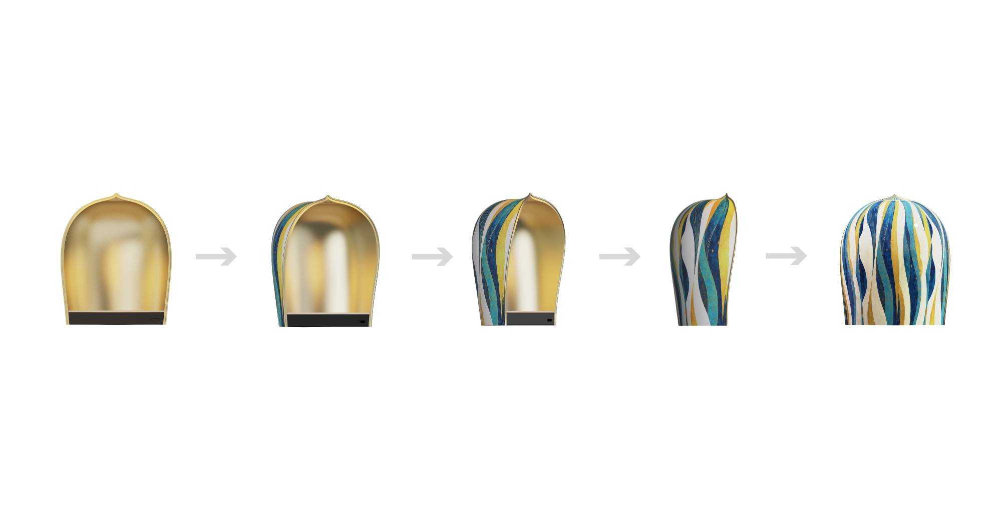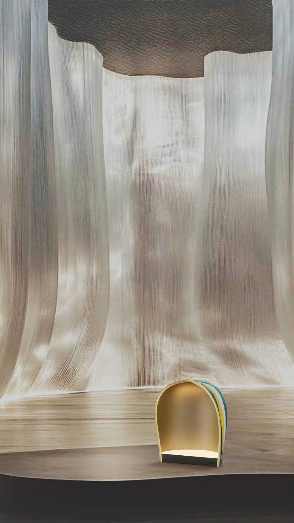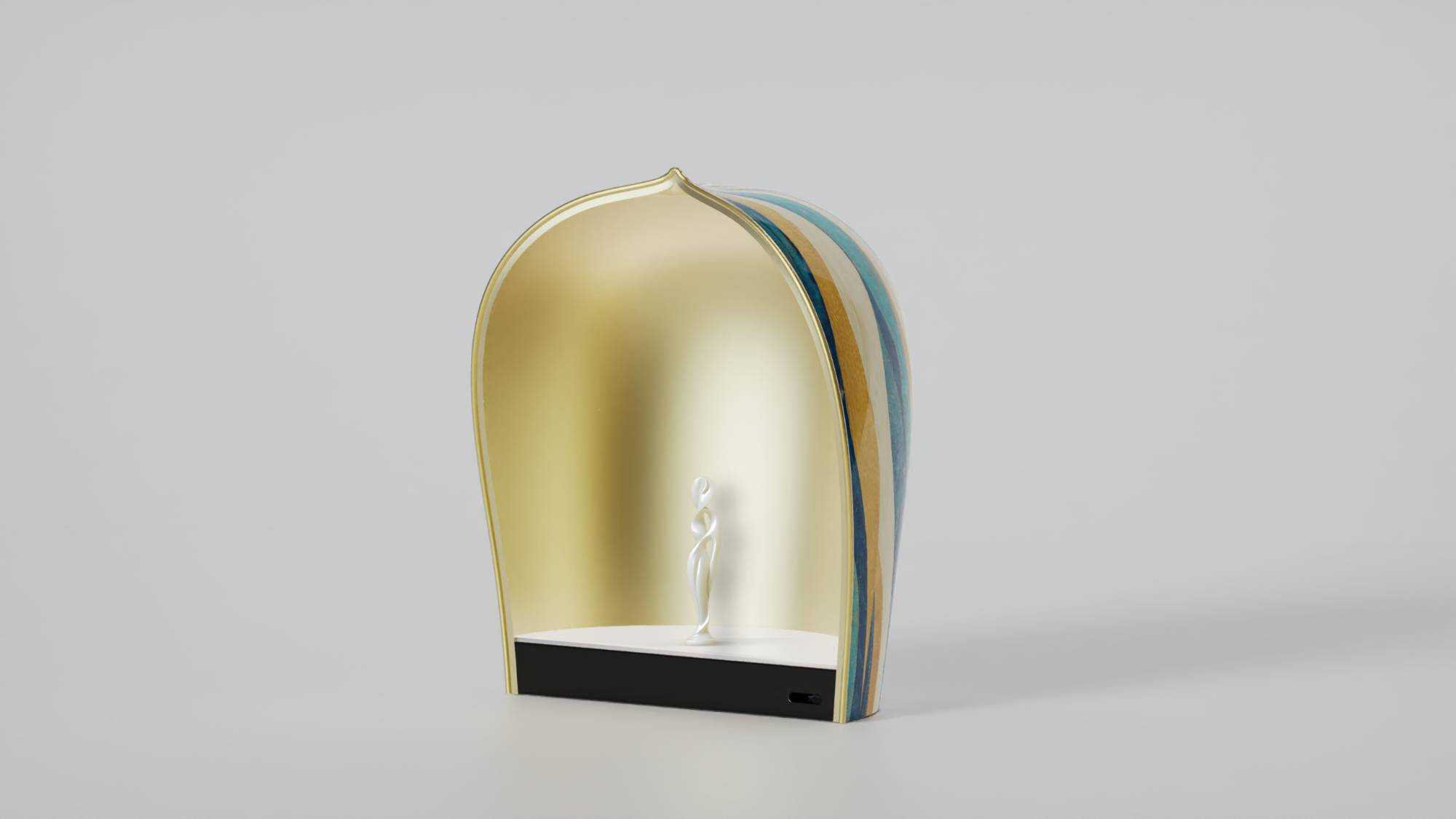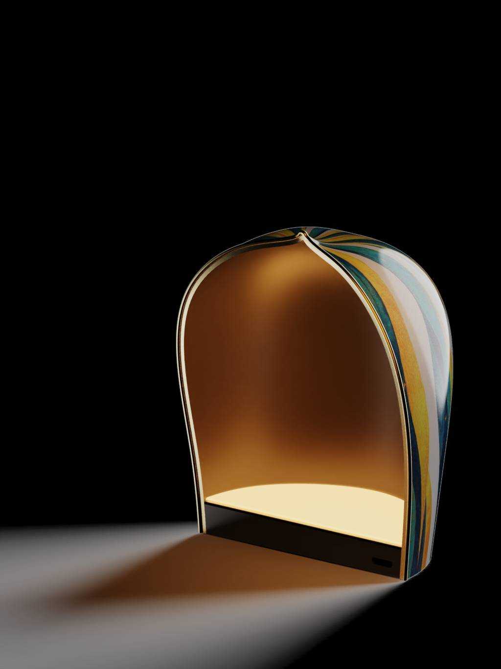 | 《敦煌绮梦》灵感源自敦煌石窟的庄严空间美学,深度融合国家级非物质文化遗产景泰蓝工艺,打造集艺术、功能与情感体验于一体的现代灯具。灯体以精铜为胎,运用景泰蓝掐丝点蓝技艺,釉彩选用敦煌经典矿物色系,于方寸间细腻复现千年壁画的华彩古韵。精心调校的柔光系统模拟佛龛光芒自然晕染、向外弥散的意境,营造“佛光普照”的神圣静谧氛围。创新采用轻拍灯身的温情交互方式,替代传统开关,指尖轻触间点亮灯光,亦唤醒内心安宁,使灯体本身成为可触摸的艺术载体。它提供“可观、可触、可冥想”的沉浸体验:可观釉彩流淌的敦煌风韵,可触景泰蓝温润肌理与铜胎坚实;微光中,它更是引导冥想的伴侣,帮助使用者舒缓心绪,在现代生活压力下寻求精神放松与艺术疗愈。《敦煌绮梦》不仅是一盏灯,更是一座置于案头的微型敦煌圣殿,一场连接古今、触摸千年艺术的光影仪式。 | |||