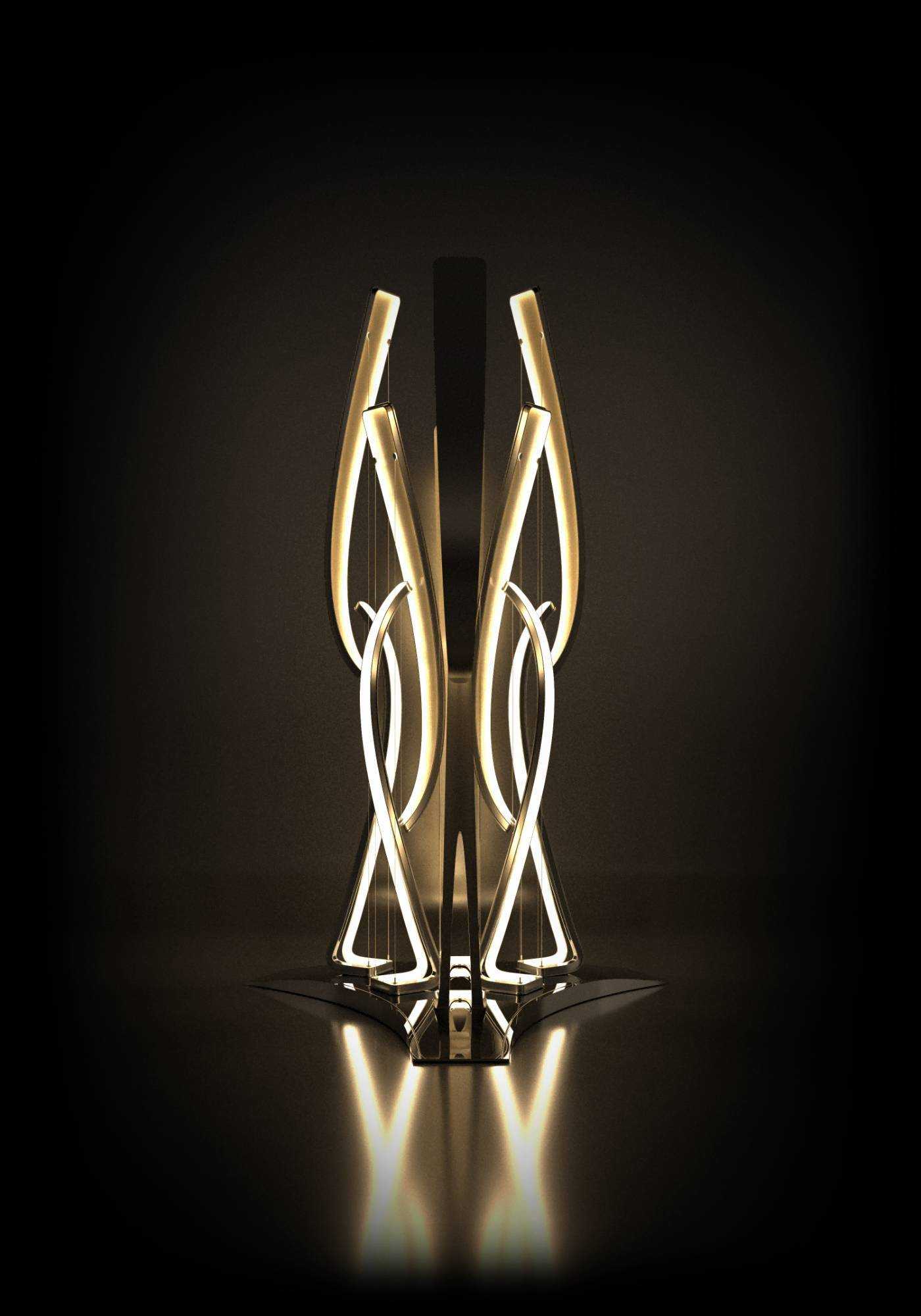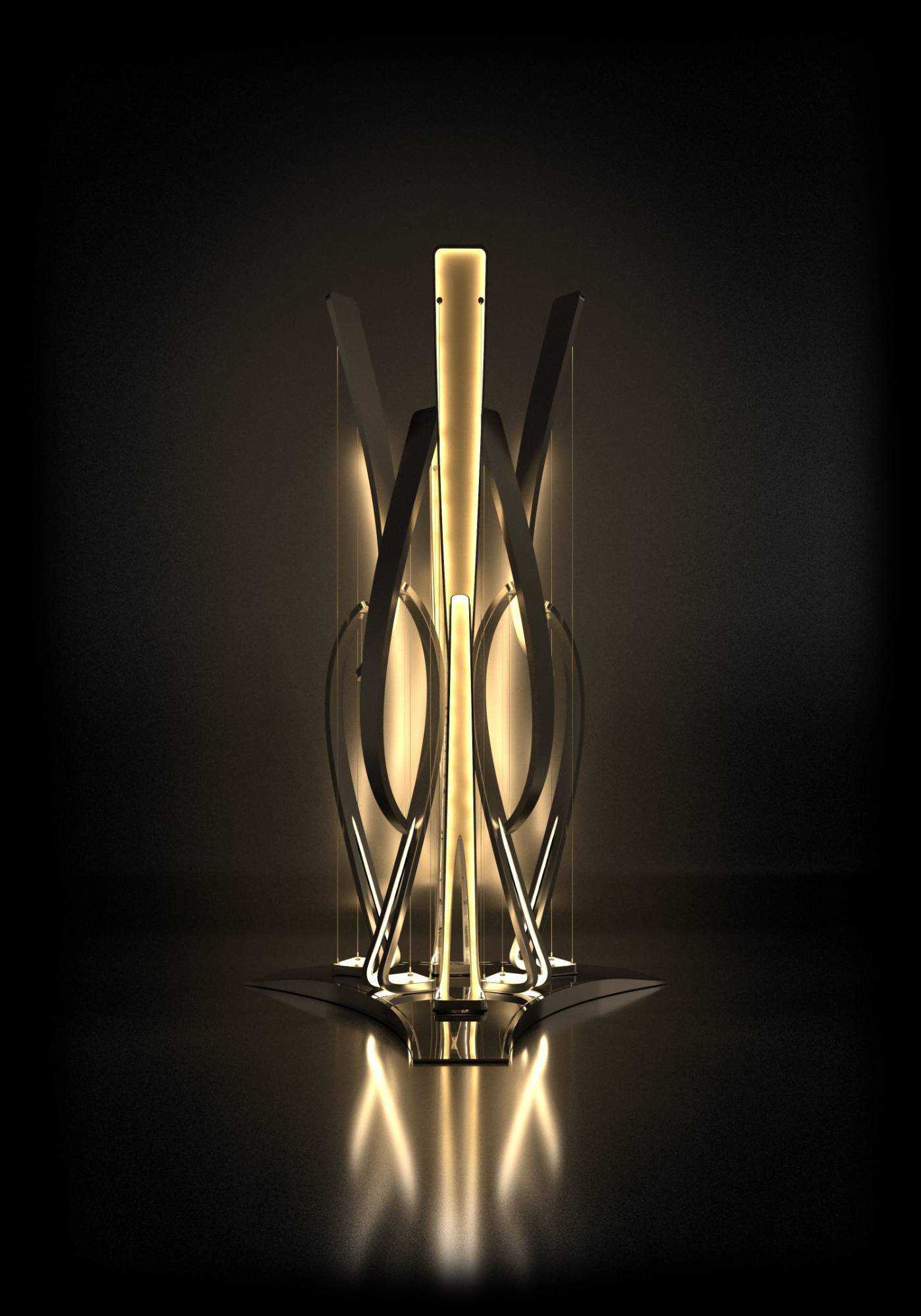 | 以现代张拉结构之弦为骨,勾勒中国经典瓶器之弧形,借力学约束之束聚形塑影,演绎刚柔共生的东方美学新境。灯具通过钢索张力与曲面轮廓的精密咬合,将宋瓷的优雅流线转化为当代光影载体——弦如弓矢赋予动态力量,弧若流水承续文脉,束光成器间,投射出传统与现代、力与美的诗意对话。 | |||
