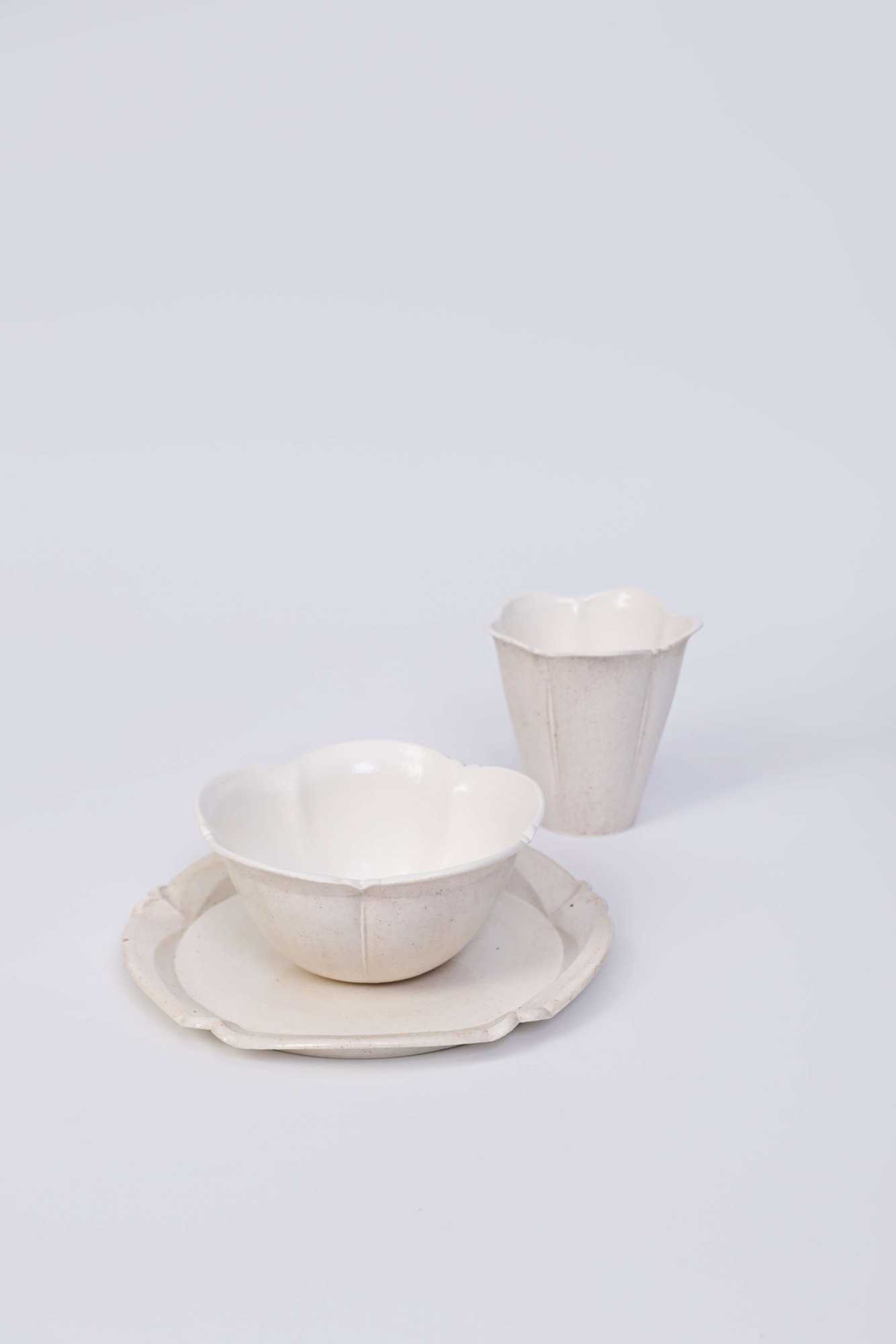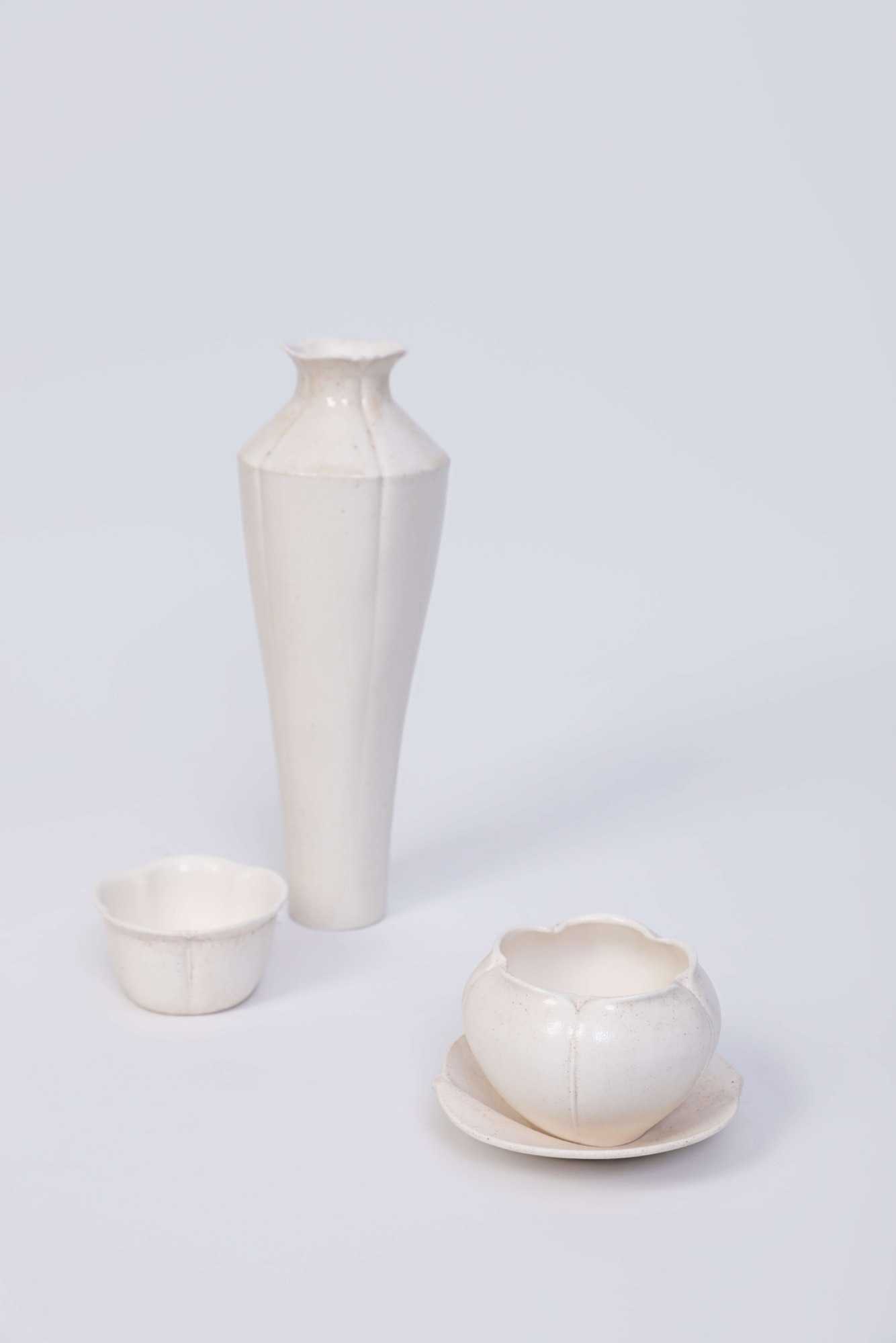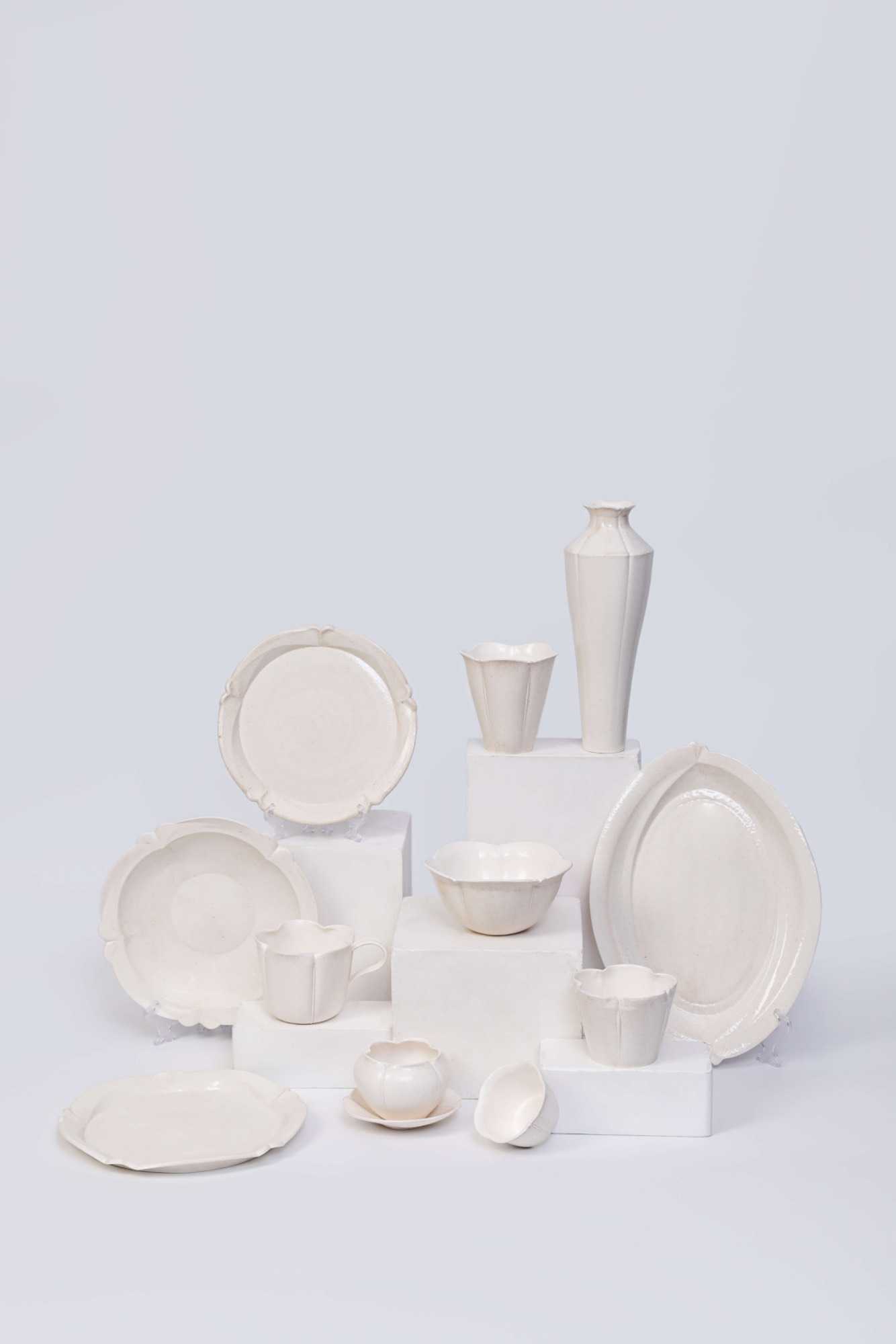 | 《土间晴白》是一套“一人食”餐具组合。“一人食”文化是一种新型的餐饮模式,区别于家庭共餐制,“一人食”人群远离餐桌社交功能,回归餐饮行为自我满足的本源,并赋予独自用餐仪式感。独自用餐通常效率更高,浪费更少,满足年轻人生活节奏快、工作压力大的生活现状。目前,国内大多数知名餐具品牌仍保持着生产宴会餐具或成套餐具的品牌调性,未能精准覆盖到独居人群。国内现在还没有针对年轻群体的成熟餐具品牌,餐具设计对极简主义风格领域涉猎较浅,在这一领域的空白亟待探索和补充。我希望能够通过陶瓷产品从设计到生产的实践转化,探索如何将传统美学与自然美感融入当代生活场景中,在快节奏社会中构筑一片慢节奏的感性角落。 作品名字“土间晴白”的寓意为:广袤宁静的大地之上,辽远无垠的晴空之下,泥土中的万物生机正在萌发。我以人们常见的种子萌芽、飞蛾振翅、花朵绽放、蜂蝶飞舞等生动景象为灵感,将大自然的勃勃生机融入生活中不可或缺的食用器中,使观者即使身处快节奏的都市日常中,也能感受到陶瓷艺术源自大地、归于自然的生命力。作品材料为高白泥,采用注浆成型与手工修坯相结合的方式制作,以化妆土、透明釉和亮面结晶釉进行装饰,希望在保持造型细节的同时,维持瓷器洁白光亮的基调。作品整体风格呈现出英伦下午茶的雅致的同时,不失东方美学之底蕴。作品造型线条挺拔流畅,质感分明,颜色素雅明亮,营造出优雅舒适的就餐氛围。其风格兼具古典美与现代美,简洁大方的同时细节丰富,适用于多种家居环境,让使用者在日常生活中也能感受到泥土焕发的勃勃生机。 在陈设空间中,《土间晴白》具有优秀的视觉兼容性,无论是深色背景、浅色背景或是复杂的背景,白色都具有极强的包容性。在简单的背景中,素雅的色调不会喧宾夺主,而东西融合的现代设计使其在现代家居中具有极强的普适性;在复杂的背景中,暖白色的餐具能够提供视觉缓冲的效果,成为室内设计的调节剂。从实用角度出发,白色为食客带来干净的使用体验,简单的颜色会衬托出食物自身丰富的色泽与形态,提供摆盘艺术发挥的空间,使菜品与餐具浑然一体。辅助提升就餐的审美体验与仪式感。 | |||