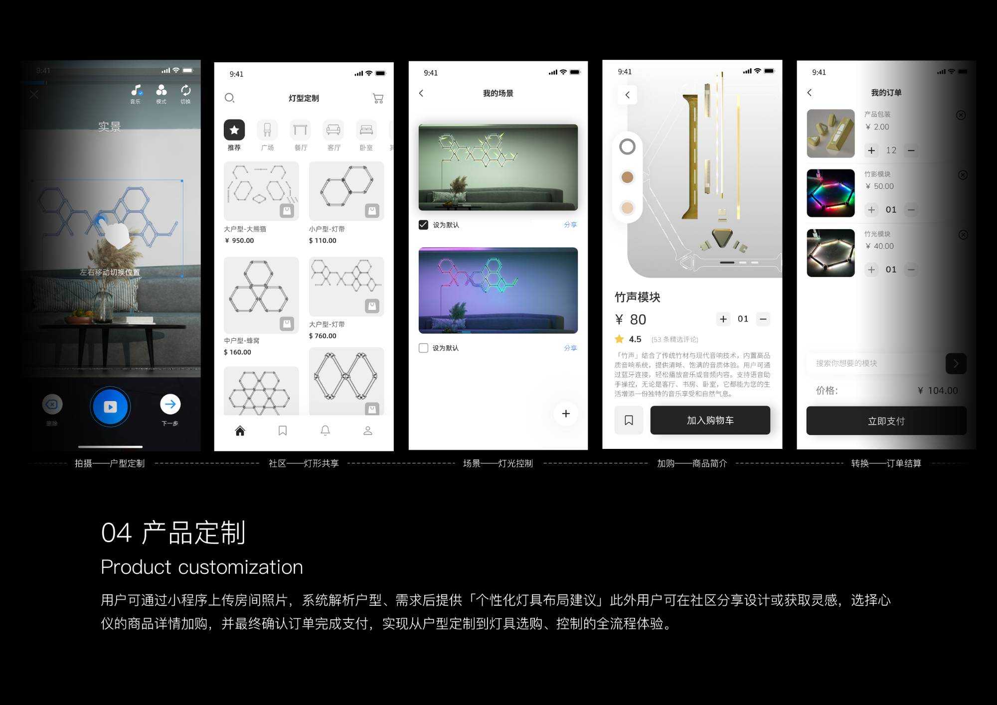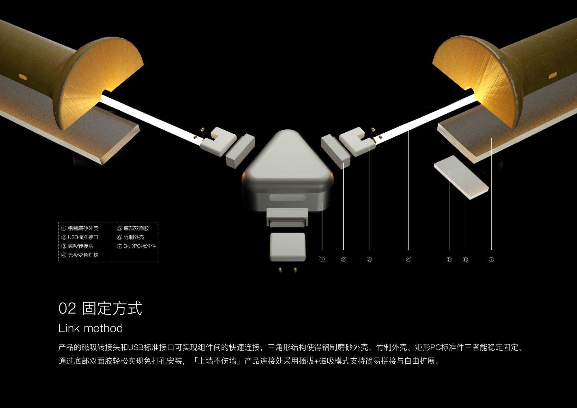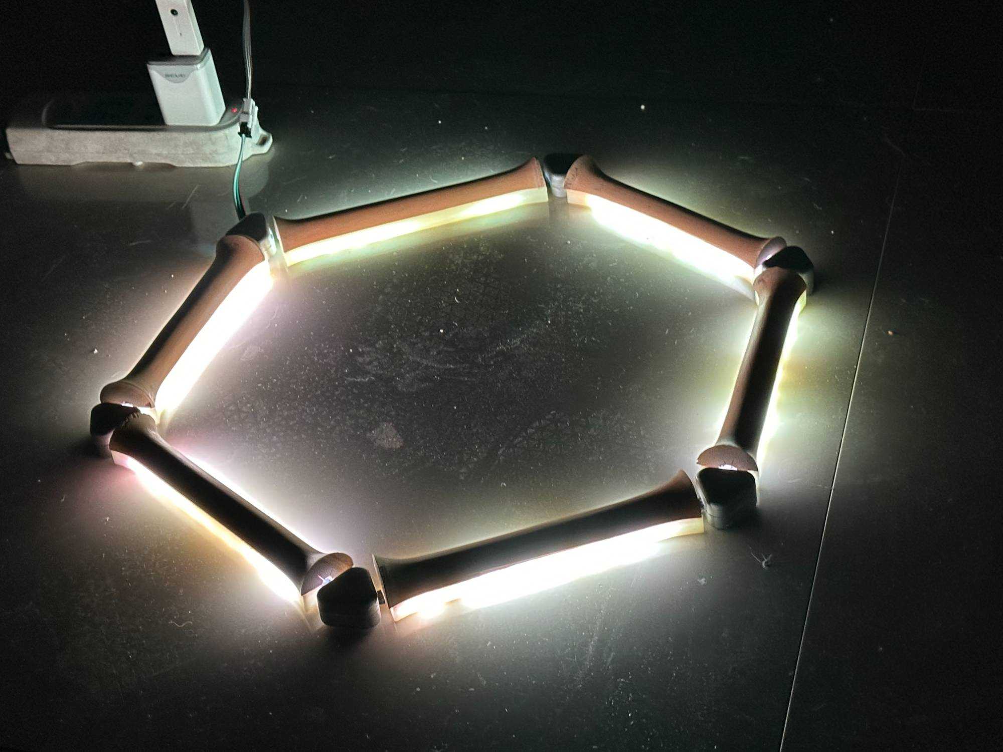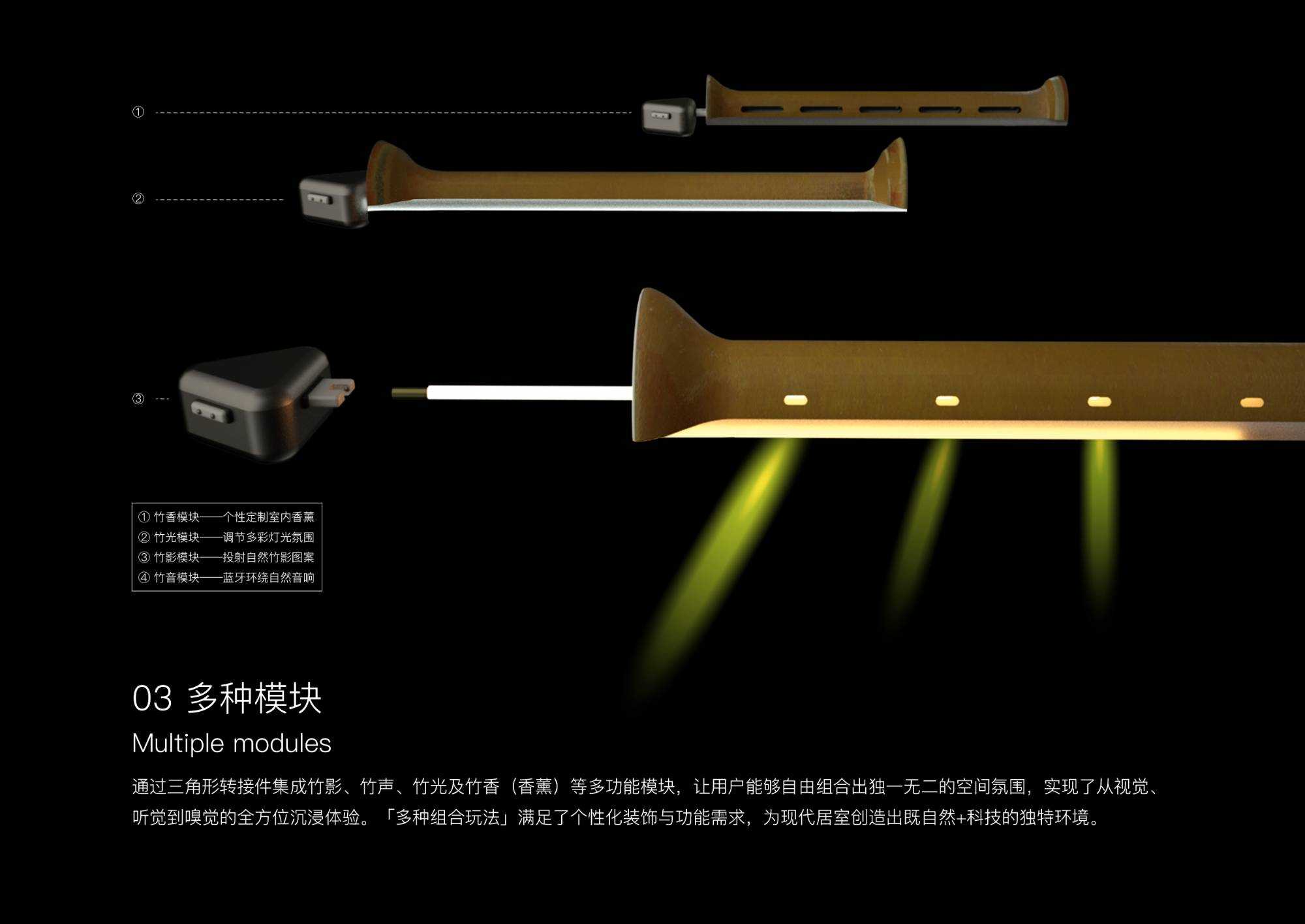 | 一款融合光影艺术与模块化结构,打造多感官沉浸氛围的智能竹制氛围灯,兼具可玩性、适配性与环保性。 本产品的创新体现在“光效艺术化”、“结构模块化”与“多感官沉浸化”的三重融合。 一、通过LED光柱与定制导光板,营造如独特东方意境,赋予空间灵动而富有诗意的视觉体验; 二、模块化结构设计支持用户根据空间布局与个性偏好灵活拼接,实现多种风格的自由切换。 三、通过声、光、香…不同模块组合打通视觉、听觉与嗅觉感官通道,构建沉浸式多感官体验场域。 作品生产工艺简单,材质方面选用干燥筇竹与标准PVC件,兼顾自然美感、环保性能与加工适配性,满足工业化生产需求;结合智能小程序平台,产品将提供个性化布局建议与图案模拟服务,形成从选购到搭配的全流程用户参与机制,满足当代用户对空间个性化、文化感与情绪共鸣的多维诉求。 | |||