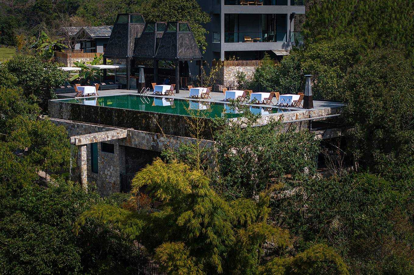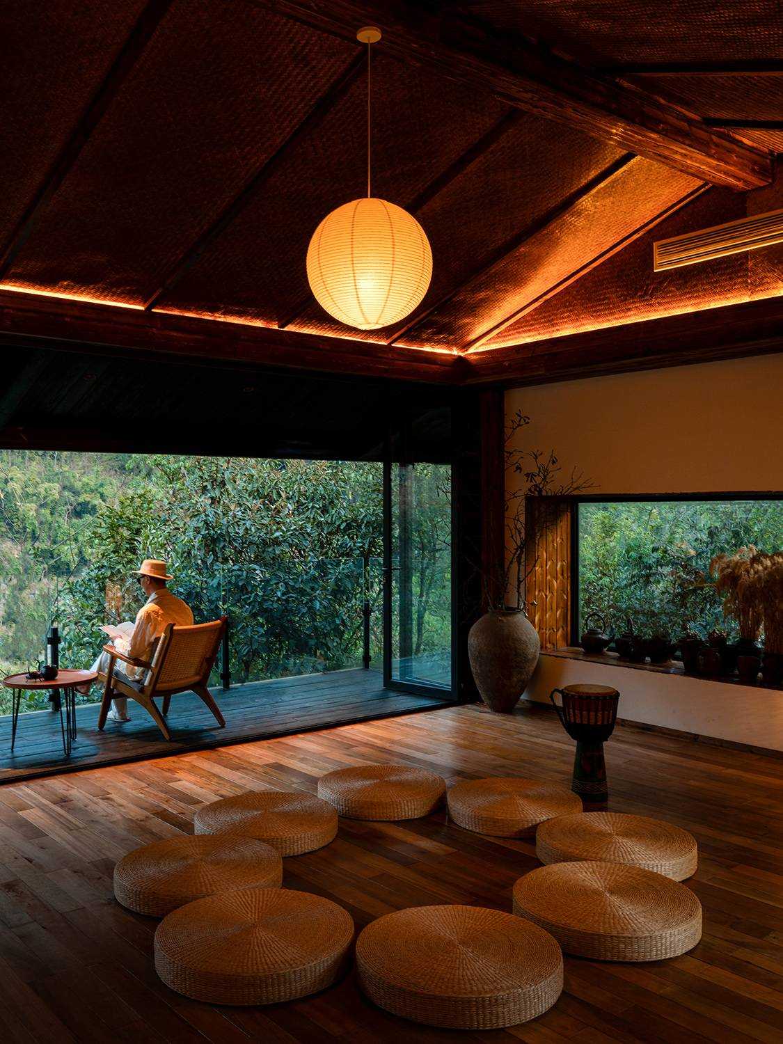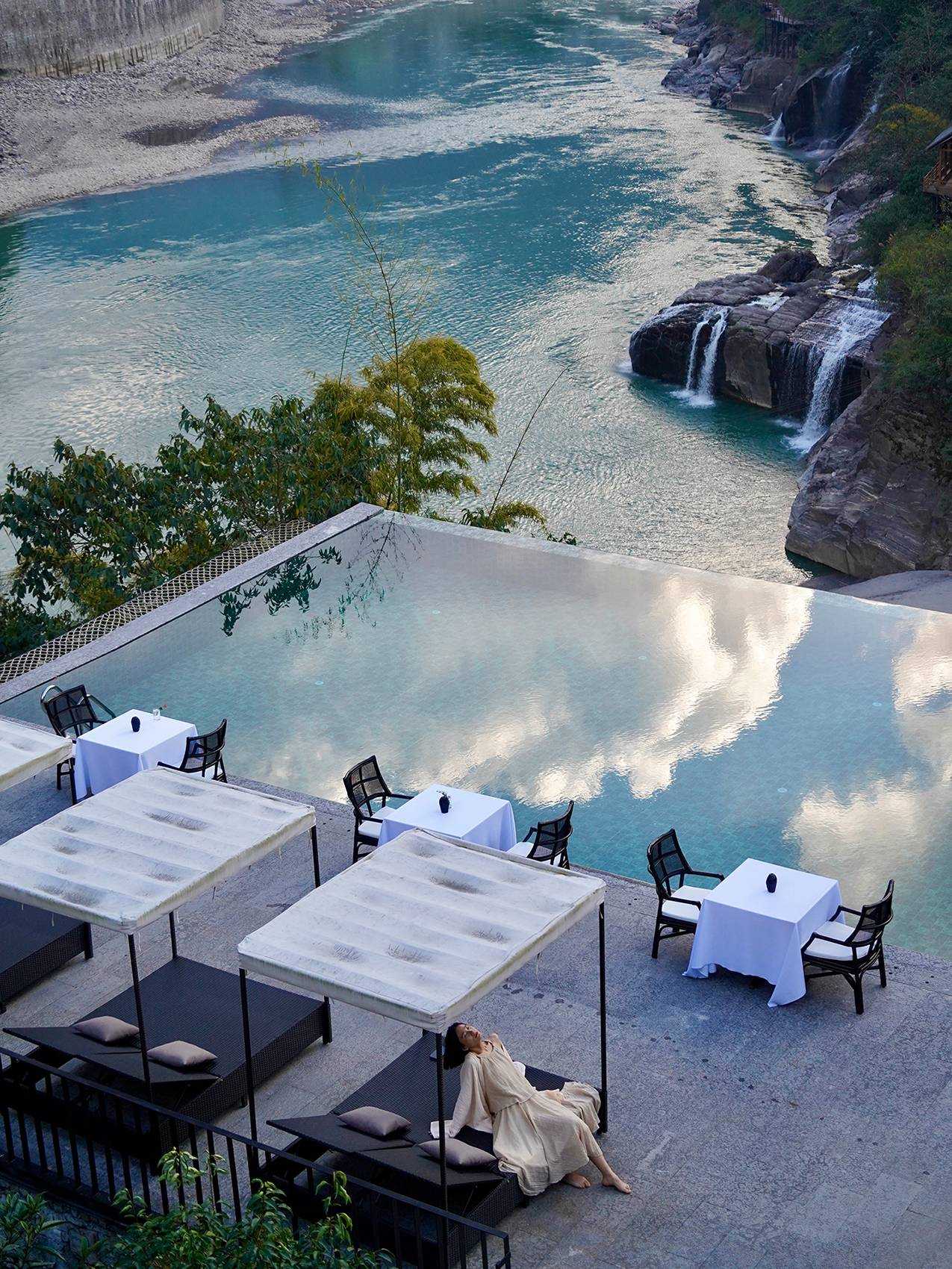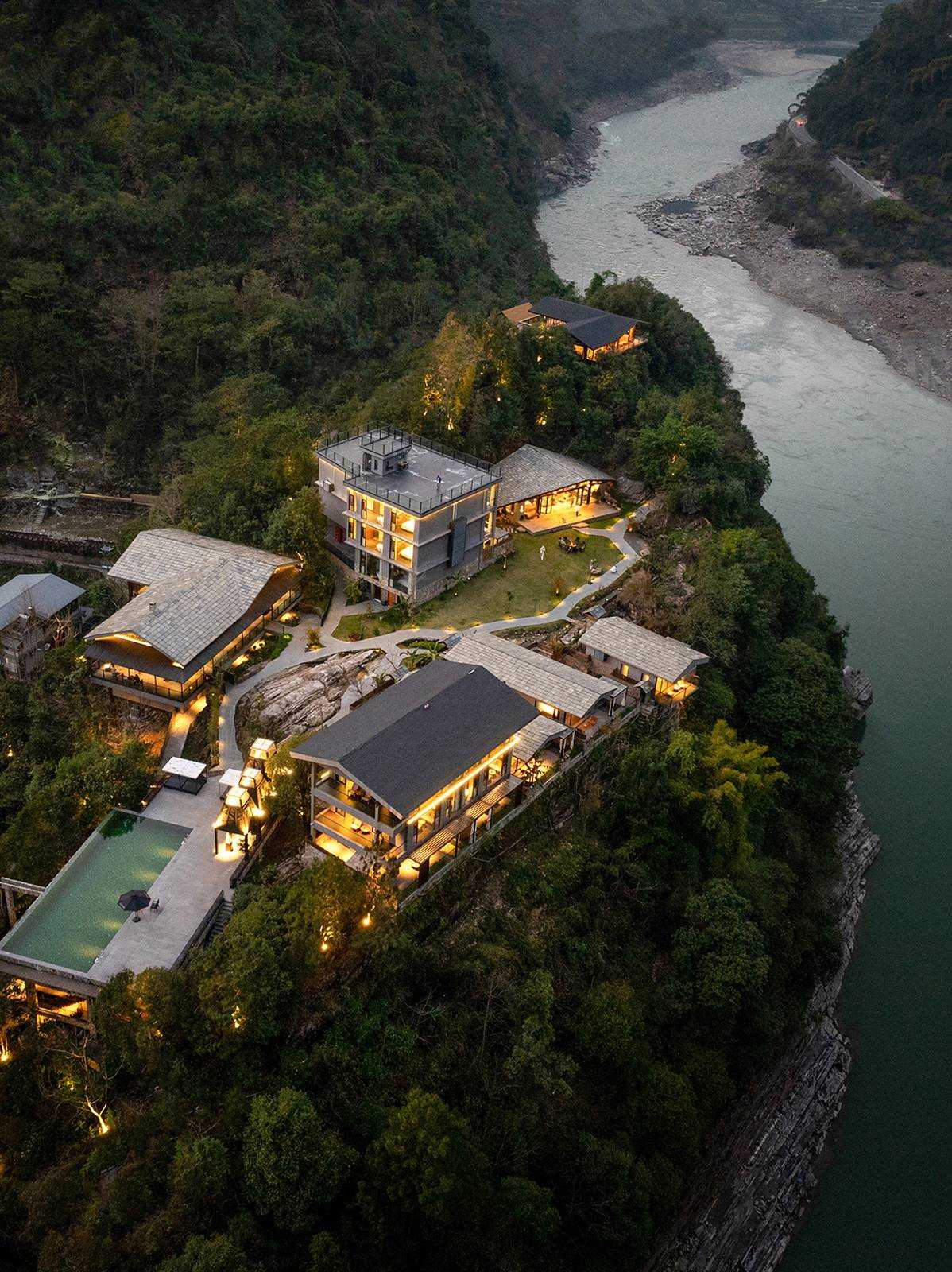 | 行,不止于逗留和经过,更是内心与世界的连接,而酒店,正成为人们在旅行过程中的“家”,超越了住宿本身的功能意义,塑造一个提供情绪寄托的场所。秘境湾酒店位于怒江福贡县施底村,占地22亩的山头上,以怒江在地文化为背景,打造具有当代东方的避世之境。有22间各具特色的客房,一户一景,合院和一层客房都带有庭院和私汤,每个房型都有不同的体验与景色。配备有多功能傈僳族餐厅、悬崖泳池、沙滩木屋咖啡、秘境酒肆、山顶禅修室、傈僳族合院、健身房,周边环境有沙滩、瀑布、吊桥、溜索、亲水栈道、教堂、非遗体验馆等。 设计通过“自然而然,顺势而为”的建筑哲学,依山势而做建筑,在山间构筑一个避世又能触碰烟火的疗愈之所,理想和日常、山水和城市、当代性和在地性对抗后的虛实和调和,建造极简的现代建筑、赋予山水场域精神,让云雾、峡谷、飞瀑、山林、川流能与人内心产生共鸣,达到内观自己,让人的身体和心灵得到放空。 设计比较克制,以自然为底色,弱化建筑物于自然场景的存在感。深灰色为主调建筑立面,将建筑消隐在山林里,与傈僳族、怒族传统建筑的结合,吊脚楼、低矮的石板瓦瓦檐,赋予建筑沉稳、低调的气质。客人到来车停在对岸,步行经过50长的软桥跨过怒江,在桥头接待厅体验傈僳族的迎客之道,然后乘坐18米高的观光电梯到半山腰,步行走过空中木栈道,此时可以看到飞瀑、听着鸟鸣,感受着自然的气息,沿道而上,要经过悬崖泳池底部,到达餐厅、悬崖泳池,视线豁然开朗。 将可持续发展理念贯穿始终,从老木板、青石片、石板瓦、竹编等材料运用,到餐厅当地原生食材选购,始终以亲近自然的方式回馈自然。整个酒店给人们的感觉是呆得住,很放松,在酒店的每个角落,都好像和自然在对话,一种久违的松弛慰流淌过心里,让人的整个灵魂慢下来,酒店变成生活乌托邦。 | |||