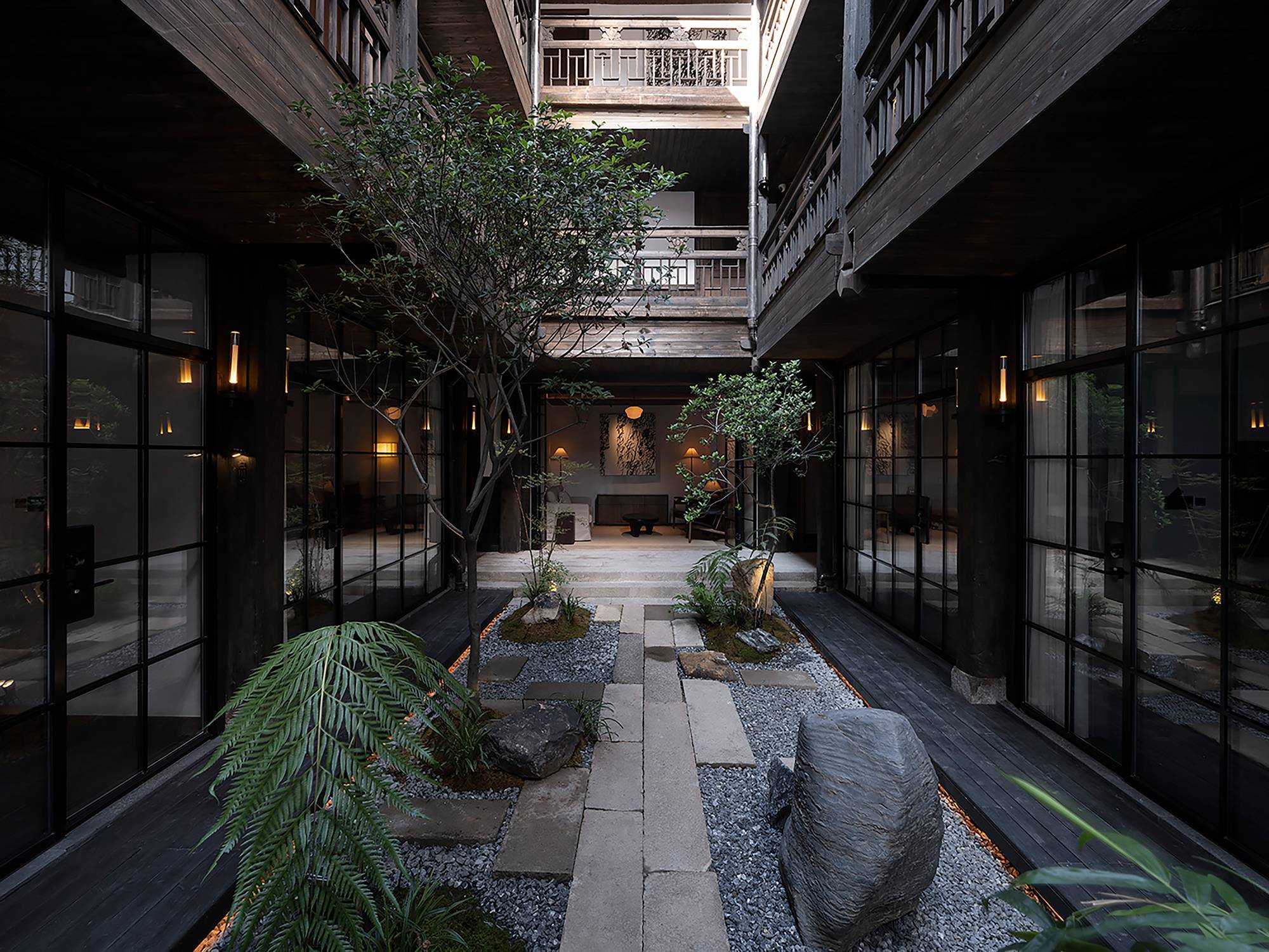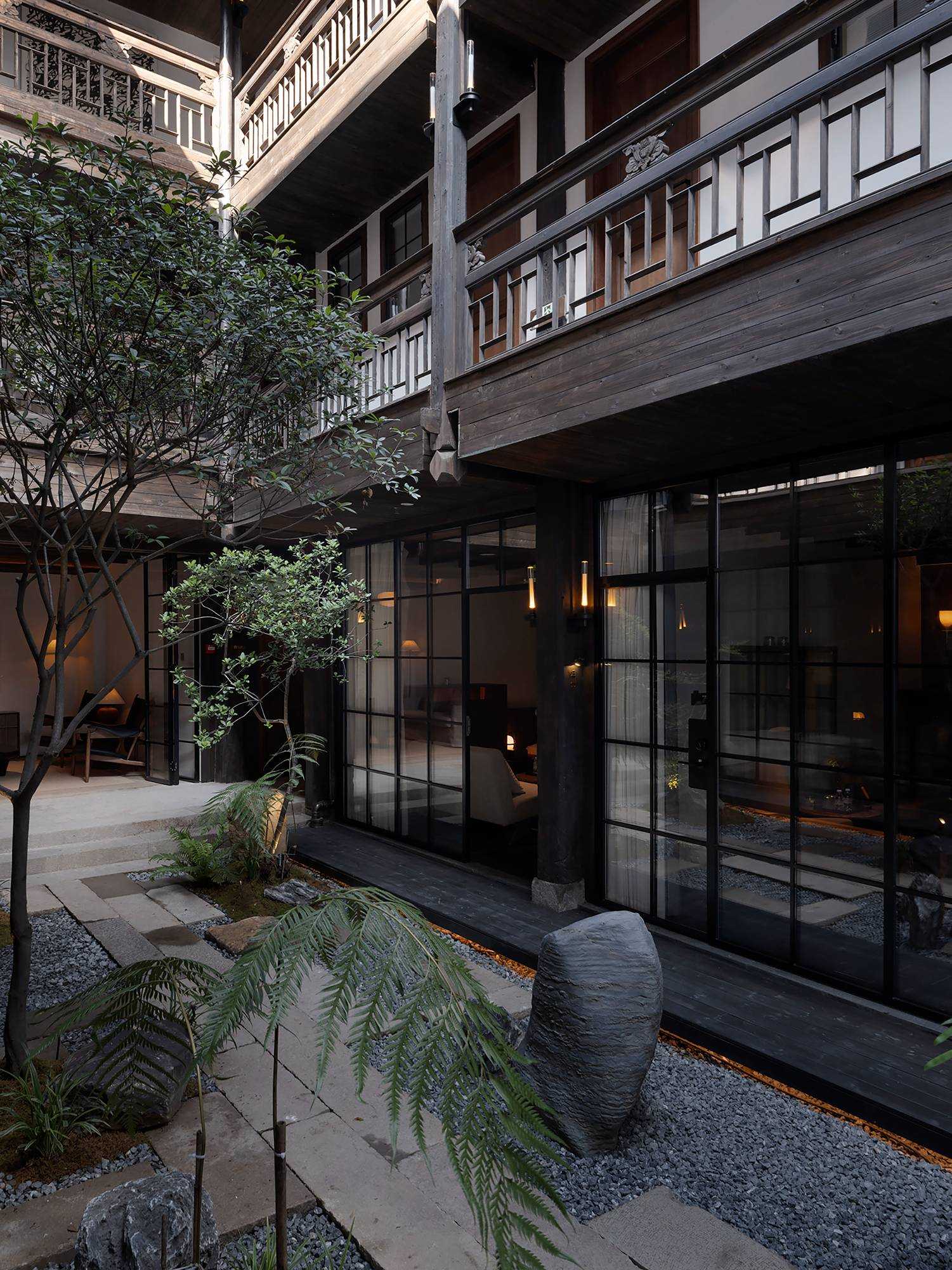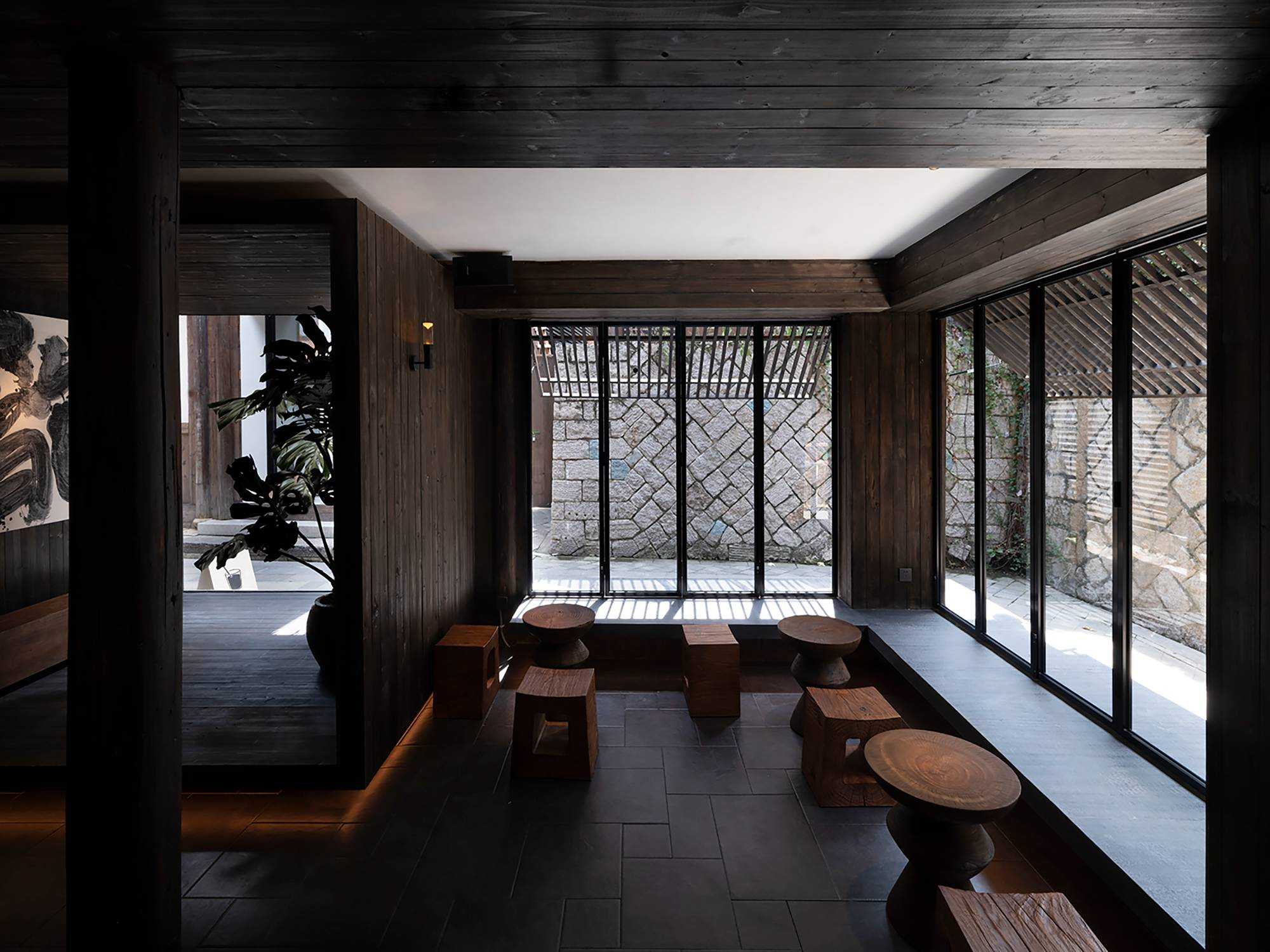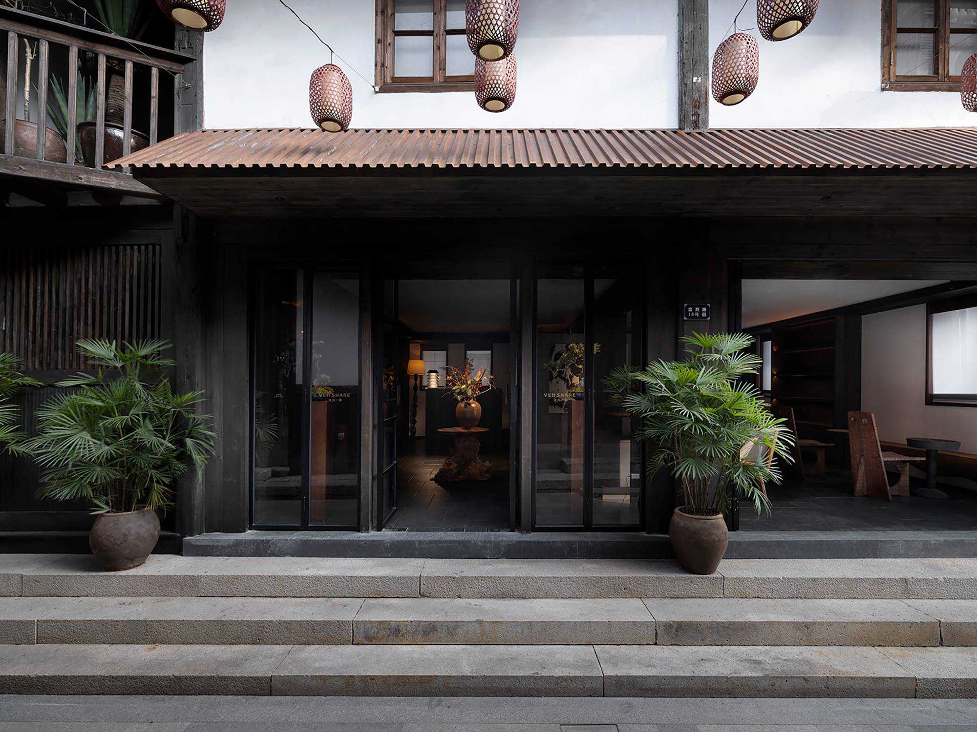 | 繁华烟台山,诗意憩息地 文川一舍坐落于福州仓山区烟台山历史保护区内,这是一座由清末民国时期百年建筑改造而成一家度假民宿酒店。 酒店尽可能地保留了历史建筑的原貌,每一处砖瓦、每一根梁柱都透露出厚重的物质文化韵味。一跨入酒店,便能感受到扑面而来的东方美学气息,从简约的装饰到精心挑选的古木家具。住客在这里不仅能享受到舒适的住宿环境,还能完全沉浸在东方美学的氛围之中。 从室外到室内登记前台,从身体感官上可以感受到空间的安静,让心灵得以初步的放松,仿佛外界的喧嚣与纷扰瞬间被隔绝开来。那静谧的氛围如同轻柔的薄纱,慢慢包裹住身心,嘈杂的声音渐弱,视觉上也从热闹变得聚焦有序,鼻间萦绕着室内独有的木质气息,空间木色带着些许沉稳,使人不自觉地放缓脚步,沉浸其中。 当客人完成登记,穿过那扇斑驳的钢板移门,外界的喧嚣便被彻底隔绝于身后。踏入客房区域,围合庭院的客房布局立刻映入眼帘,静谧与优雅的气息扑面而来。这使得客人的心境再次发生变化,心灵进一步得到释放。仿佛找到了精神的归属,心灵得以安放。 空间中广泛采用木饰面,木材作为大自然的印记载体,以其天然的纹理和温暖的触感,营造出人与自然之间的宁静氛围。它散发的气息,宛如森林深处的深沉呼吸,又似岁月长河的低沉呢喃,让人的心灵得到安宁,回归宁静之境。 | |||