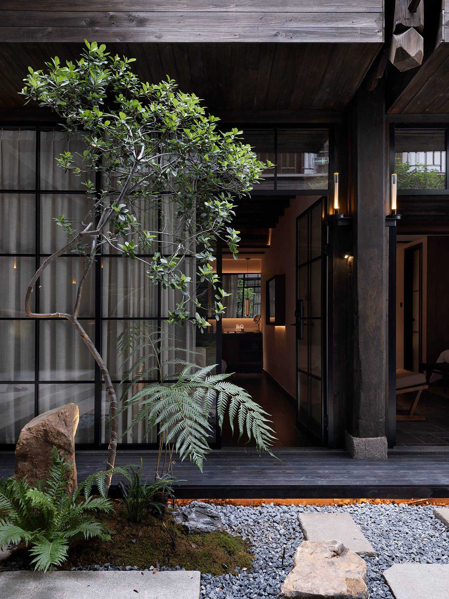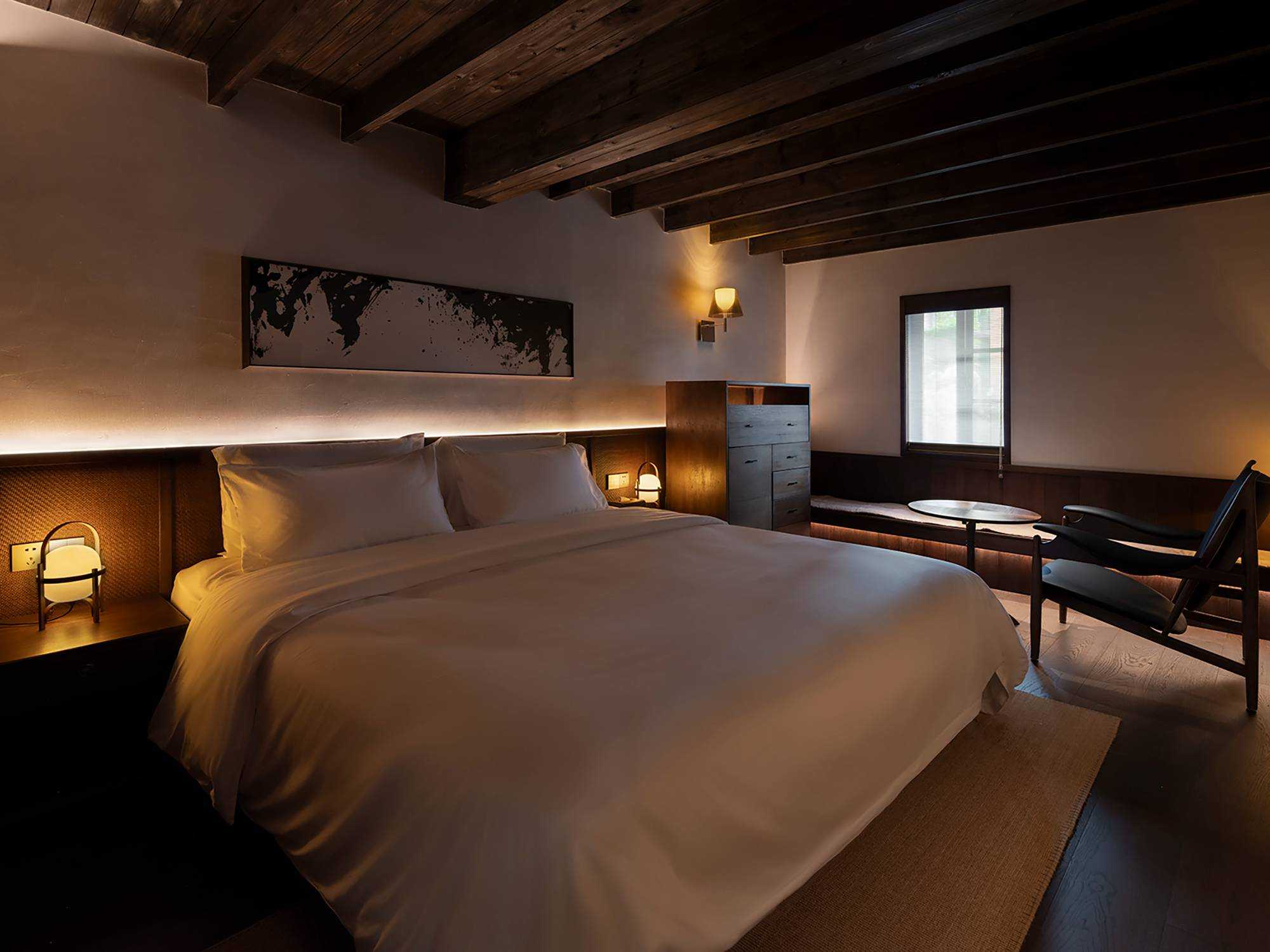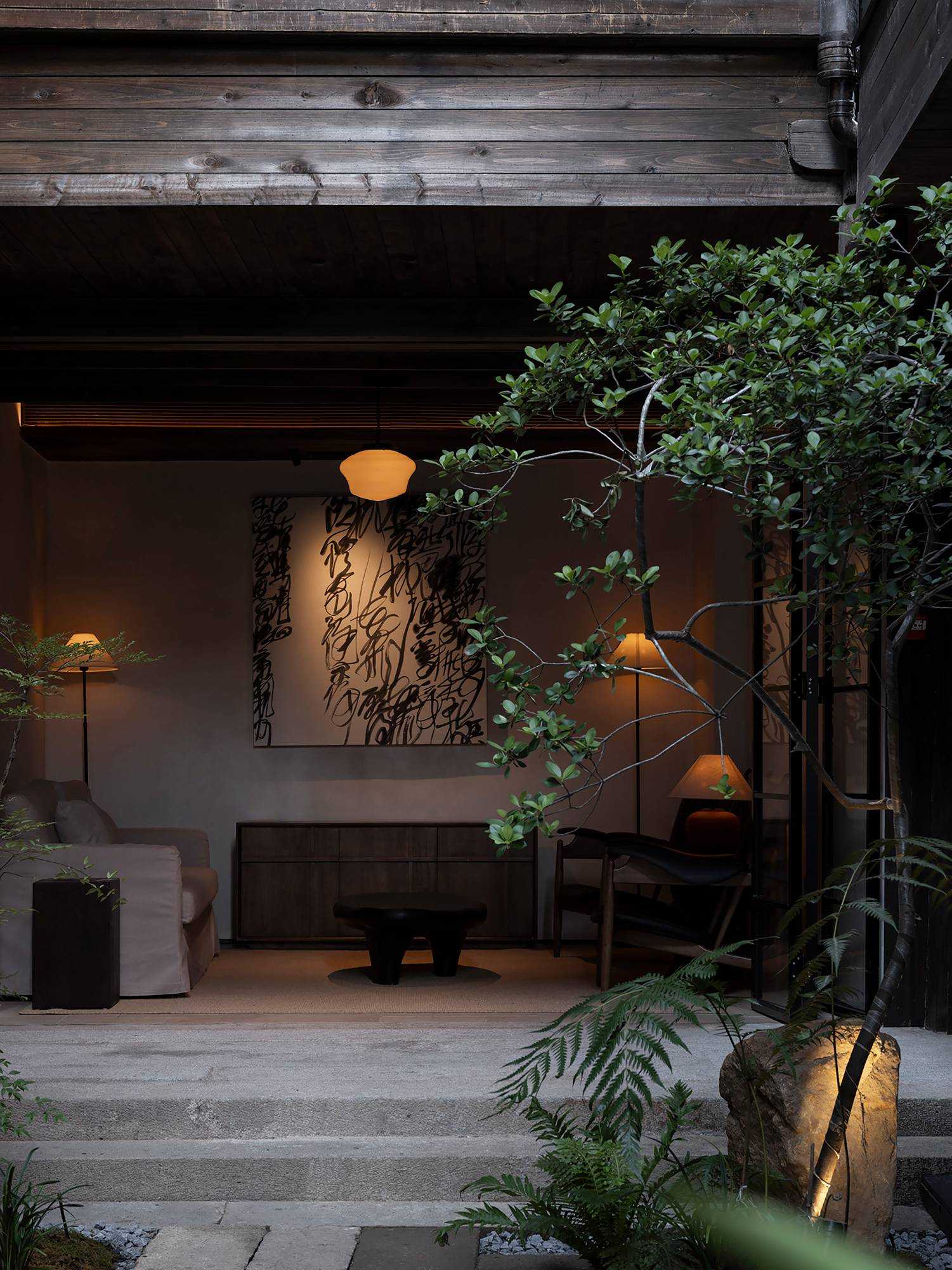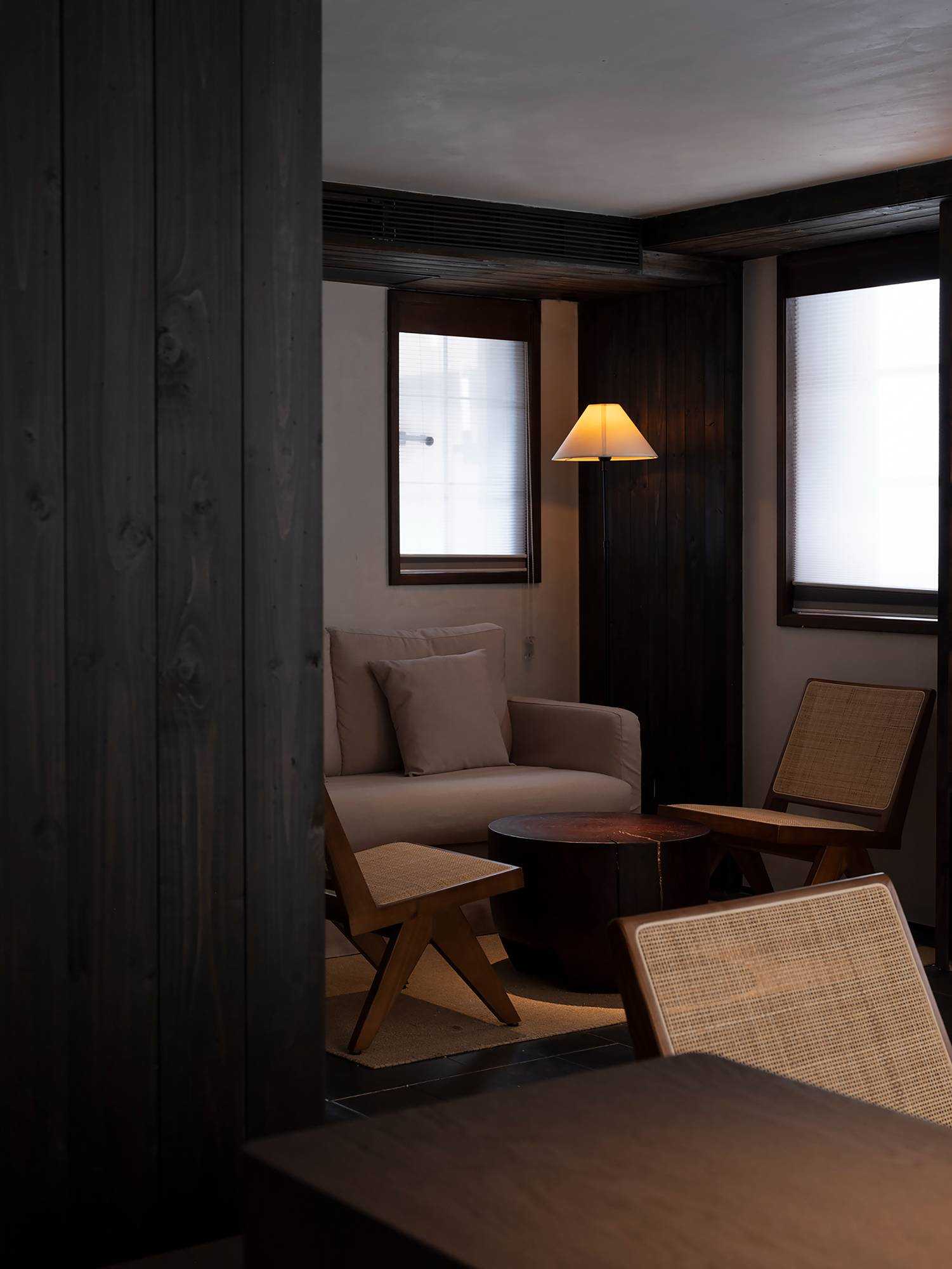 | 繁华烟台山,诗意憩息地 文川一舍坐落于福州仓山区烟台山历史保护区内,这是一座由清末民国时期百年建筑改造而成一家度假民宿酒店。 酒店尽可能地保留了历史建筑的原貌,每一处砖瓦、每一根梁柱都透露出厚重的物质文化韵味。一跨入酒店,便能感受到扑面而来的东方美学气息,从简约的装饰到精心挑选的古木家具。住客在这里不仅能享受到舒适的住宿环境,还能完全沉浸在东方美学的氛围之中。 从室外到室内登记前台,从身体感官上可以感受到空间的安静,让心灵得以初步的放松,仿佛外界的喧嚣与纷扰瞬间被隔绝开来。那静谧的氛围如同轻柔的薄纱,慢慢包裹住身心,嘈杂的声音渐弱,视觉上也从热闹变得聚焦有序,鼻间萦绕着室内独有的木质气息,空间木色带着些许沉稳,使人不自觉地放缓脚步,沉浸其中。 当客人完成登记,穿过那扇斑驳的钢板移门,外界的喧嚣便被彻底隔绝于身后。踏入客房区域,围合庭院的客房布局立刻映入眼帘,静谧与优雅的气息扑面而来。这使得客人的心境再次发生变化,心灵进一步得到释放。仿佛找到了精神的归属,心灵得以安放。 空间中广泛采用木饰面,木材作为大自然的印记载体,以其天然的纹理和温暖的触感,营造出人与自然之间的宁静氛围。它散发的气息,宛如森林深处的深沉呼吸,又似岁月长河的低沉呢喃,让人的心灵得到安宁,回归宁静之境。 | |||