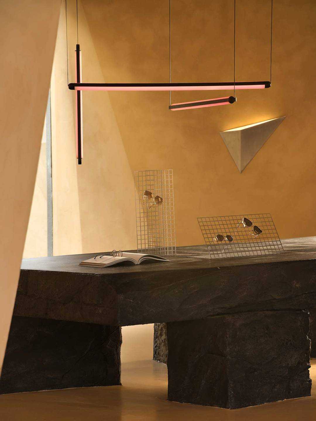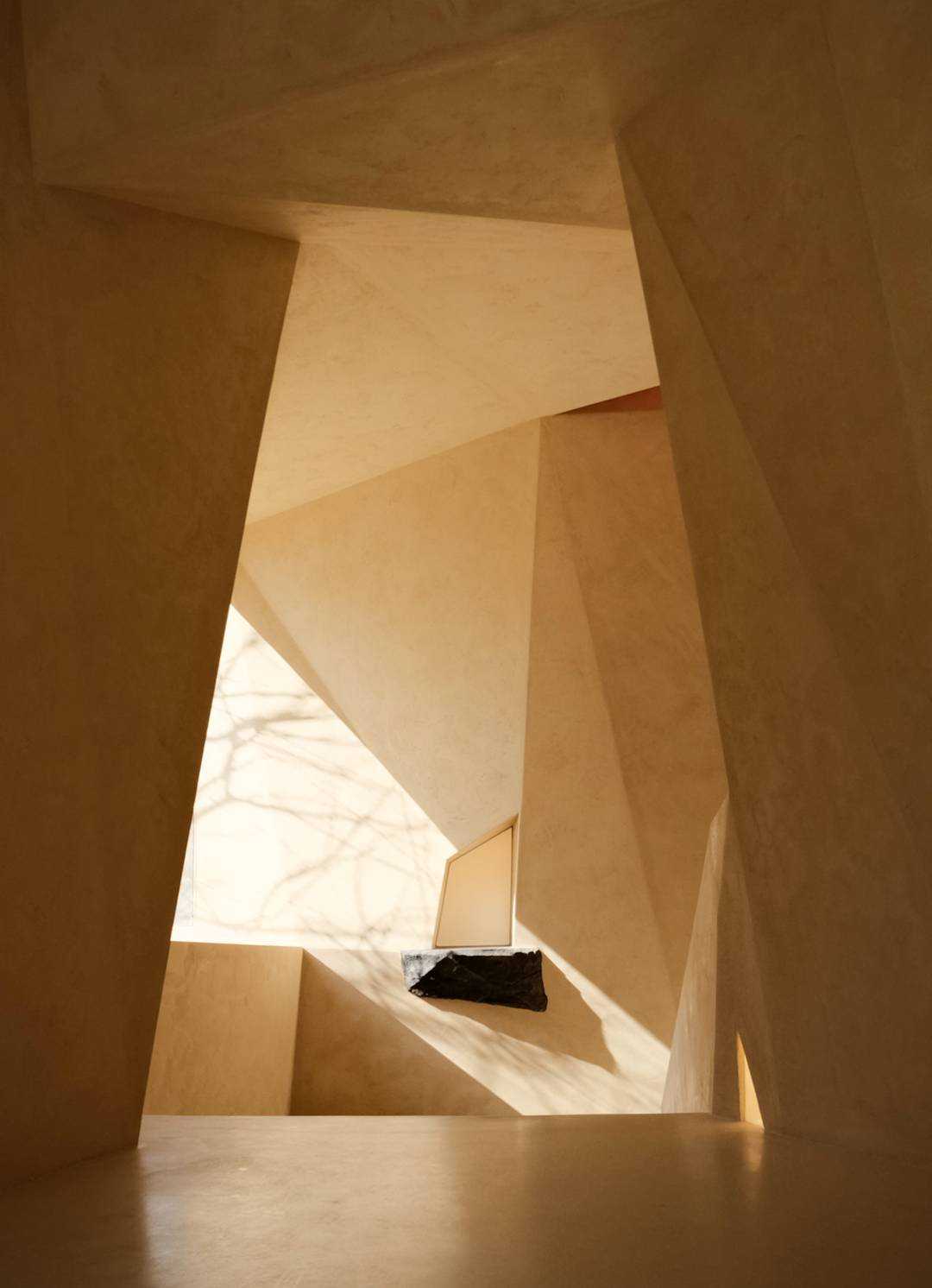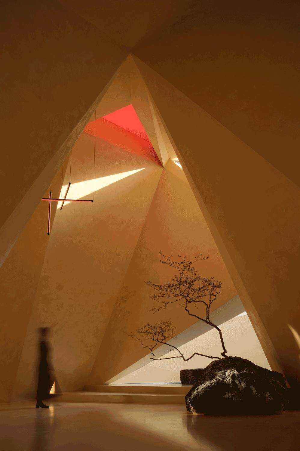 | 这是一次全新策略的商业更新设计 是立足于城市文化基因的革新探寻 以凌驾于商业建筑体之上的目光 柔软地落地在人文的逻辑思考背后 艺术地标式商业思维 浙江温州,一座以眼镜工业著称的城镇里,诞生自1992年的方氏眼镜在经济退行的时代背景下,决定以全新的眼镜艺术展厅为新的转折点,思考商业与文化的碰撞逻辑,重启企业发展之路。 立足于城市更新背景,通过变革传统商业展厅的方式,将方氏眼镜的全新展厅视为立足于城市发展进程中的一座艺术地标,当商业目的被掩盖,存在于我们眼前的是一座具有时代创新风格的解构式艺术展厅,设计的目光早已超越了简单的功能主义空间维度,旨在探索商业空间在工业城市中的有机转型与新的存在模式。 光线为引,形状再生 在天文光学中起源的三角学说,其形态的几何性秩序,意味着未来,象征精神属性的创造。 设计自此概念中提取45°光线作为视线的索引,形成自然的三角几何关系。从眼镜展厅的复杂元素中,抽取“目光”这一概念,作为贯穿空间始终的脉络,把玩着视觉与场景间的互动体验关系,室内照明以软膜灯光为主,隐藏在几何错落间的缝隙里,适量红色灯影调和整体大地色的温暖感,被置于向上凹进的天花内,随目光的靠近而愈发明晰。阳光作为应邀而来的观众,自由地穿梭于场景的结构之间,通过立面的折转,形成束状的光线错觉,并随着时间的游移而不断变换,场景间的明暗层级关系反复交错,创造起戏剧性的沉浸式商业空间体验。 流动的共生空间形态 室内空间打破常规的静态分区模式,以流动共生的空间逻辑作为组织原则,在敞开式的场景内,以光线的走势为脉络,在保持视觉和空间连续性的同时,有机串联空间的功能分区,将装置展厅、咖啡空间与艺术书局三大功能体块进行有机交融与重构。 入口接待为始,脉络依次向内延伸,穿过中庭巨大的展陈空间,光与影在几何结构下交错呼应,不断回应“几何光场”这一命名主题。 于此同时,愈行愈烈的咖啡香气引起人们对空间向内的好奇,穿过几何形体的切分,终于到达预料之外又意象之中的咖啡主题区域,而作为书局存在的阅读空间需要走上楼梯,在相对静谧的状态下,引起场景平面与立面间互动的话题。 这种连贯的,以视觉、嗅觉与直觉为主导的动线路径,将展陈打碎糅合进不同板块之间,使其成为场域间的“连接件”,重新定义商业空间的城市角色。 如此一来,场景在商业组成的前提下,植入新的可成长基因,这是一次对传统零售空间的思维重构,将传统眼镜展厅转译成一座活化地域的城市艺术地标,以此赋予空间更多属性的存在形式,给予更多值得人们踏入并驻足的理由,重新定义商业空间在城市有机体中的角色——不再单一的承担销售与展陈功能,更代表城市基因的一个部分,以传达具有在地属性的精神内核,代表城市的某个具象缩影。 柱体被几何化重塑,光线穿梭其中,形成犹如舞台布景般的层次感。 空间整体采用新型环保艺术漆,为顶面、立面、地面三面打造一体的视觉感受,场景如同一个完整而连续的雕塑,带来错综的迷途般的路径感受,复杂又简单,紧密且疏离。 室外空间作为内场地的序言,摒弃传统园林式的繁复设计,以后现代美学主义意象的几何体块呼应场地的元素精神,高低折转的地面与透明玻璃的窗景,打破边界,视线城市建筑的呼吸共振,从而创造出一个完整的城市建筑艺术设计。 | |||