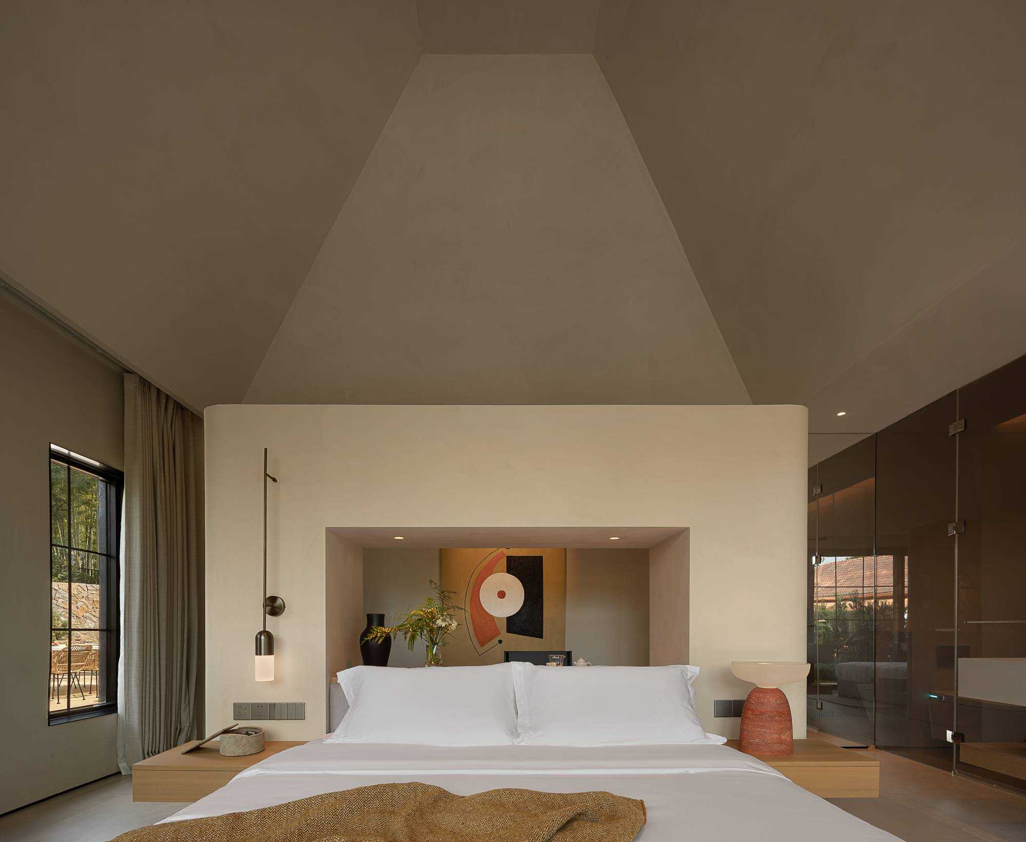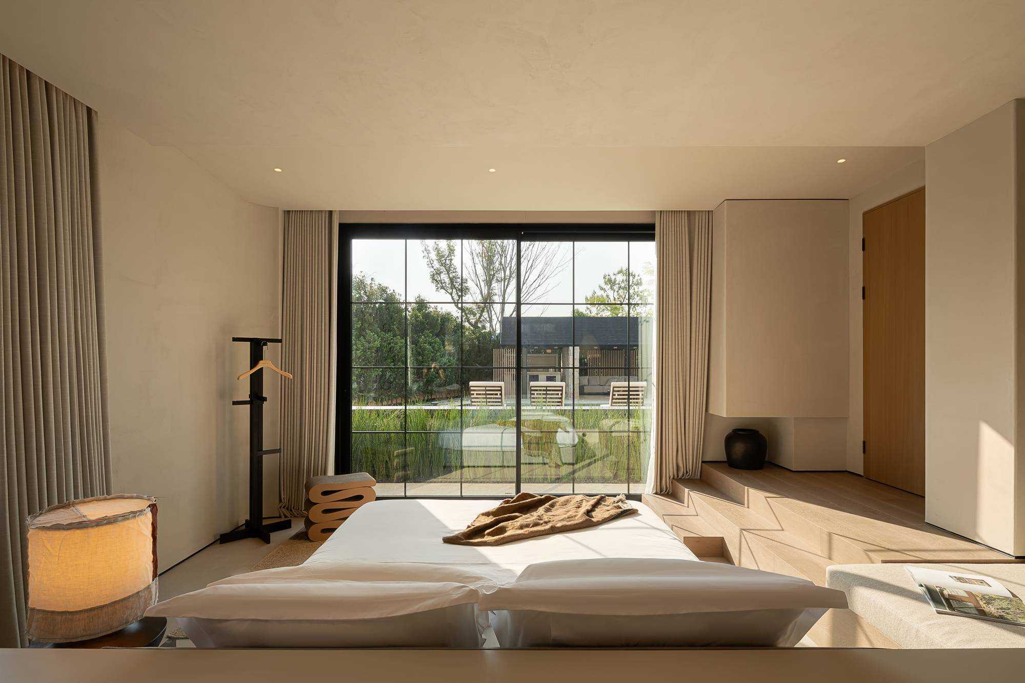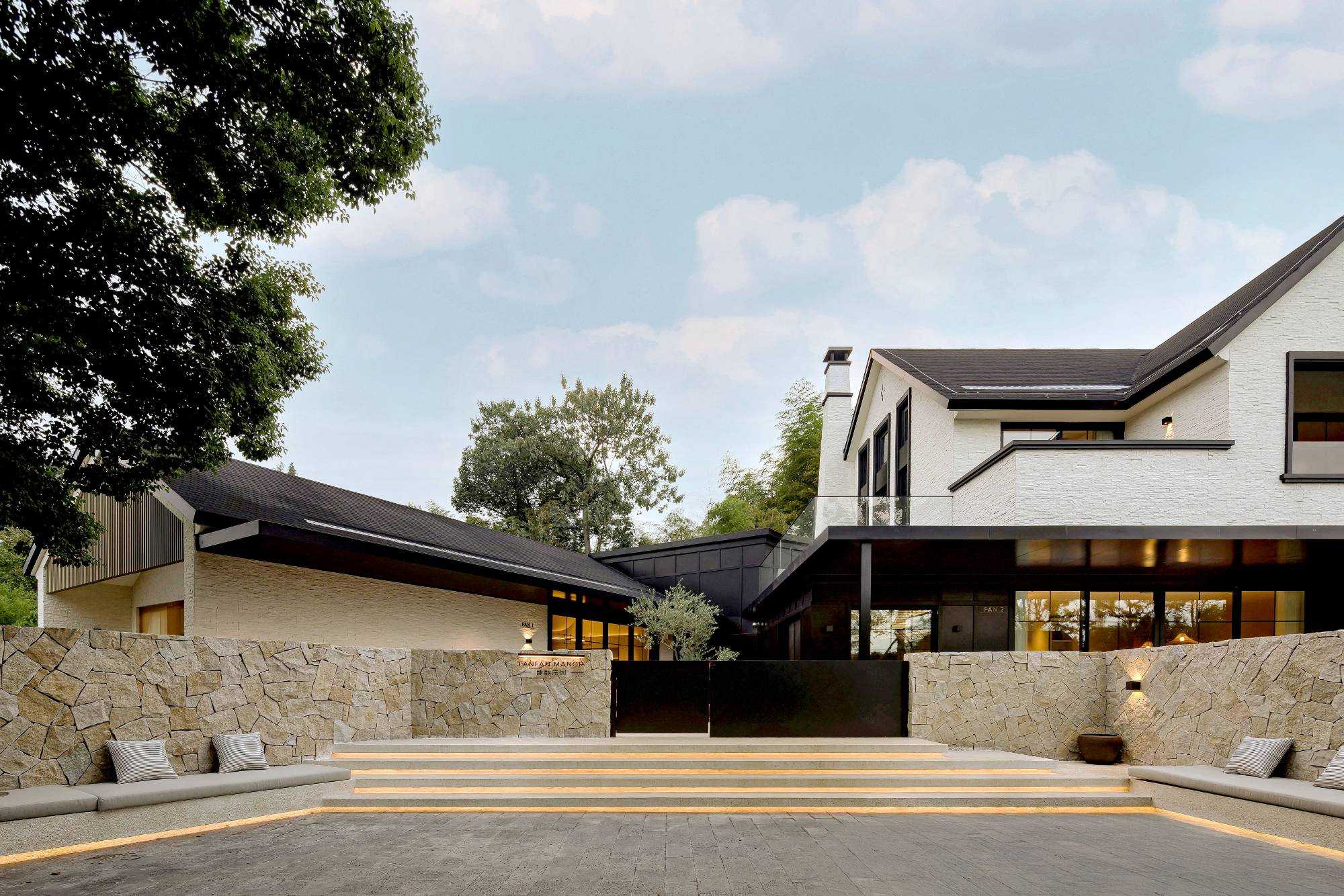 | 以南法庄园的浪漫、优雅与田园生活为灵感,将自然元素、复古韵味与舒适体验相结合,营造出一个宁静、惬意且充满艺术氛围的度假环境。而根据地形和功能需求,设计师灵活安排建筑布局,主楼和辅楼的形式丰富了民宿的建筑外观,更高效地利用了土地空间。并且将坡屋顶特色与其他元素融合以彰显南法庄园民宿风格,设计师在建筑外观上,使用大面积的米白色墙体搭配深灰色坡屋顶,形成鲜明对比,在视觉上增强了建筑的立体感与层次感。 | |||