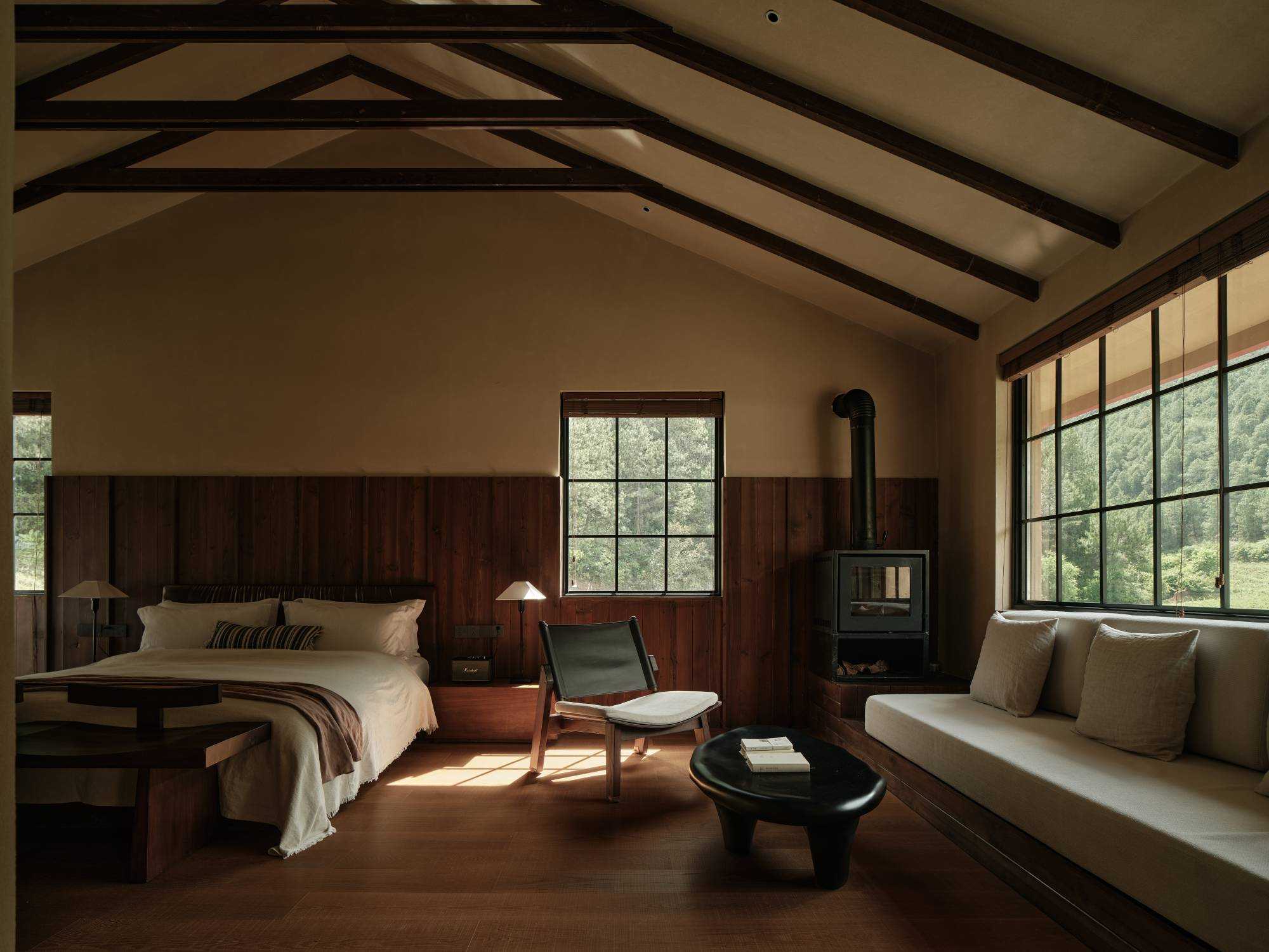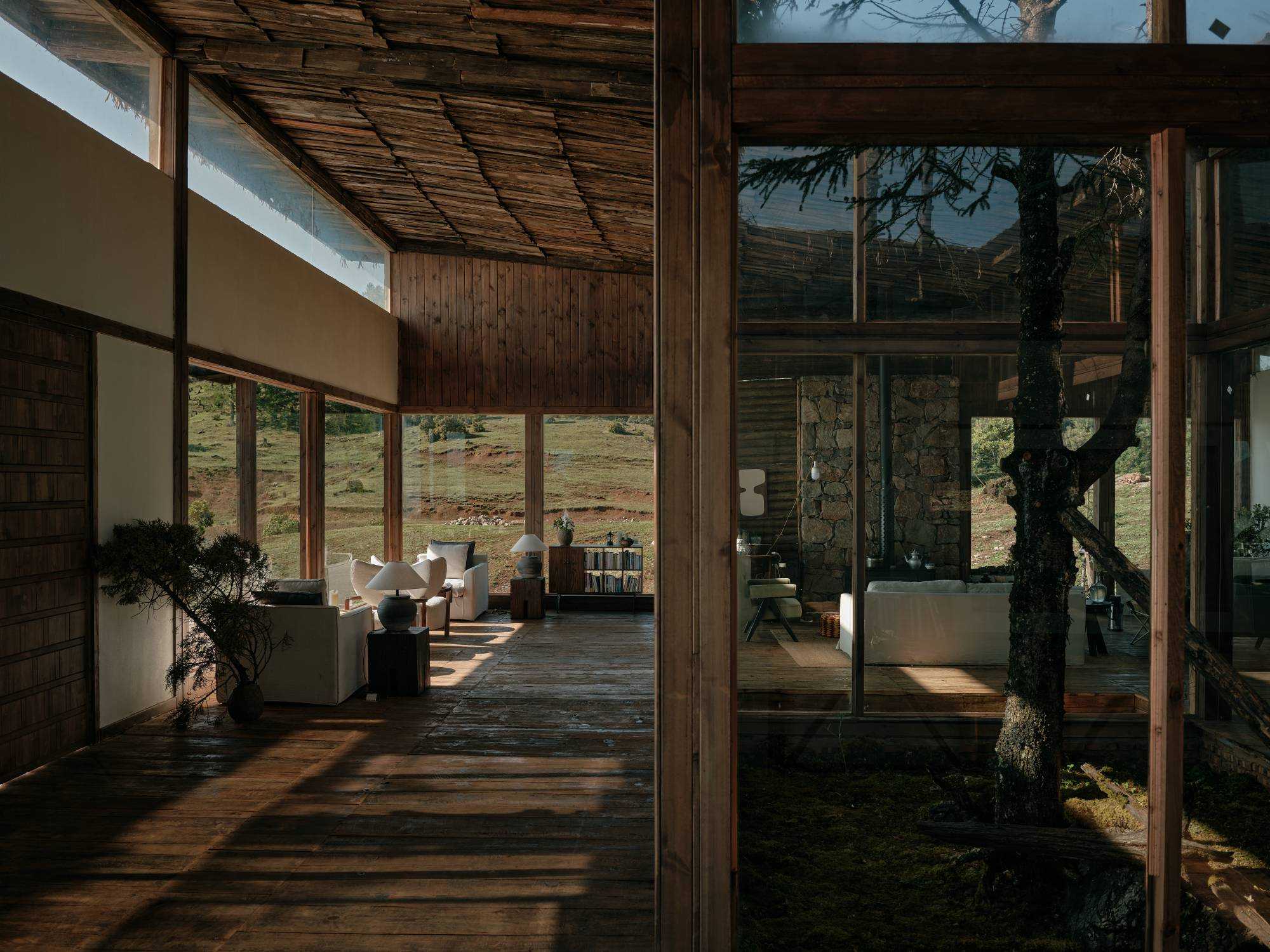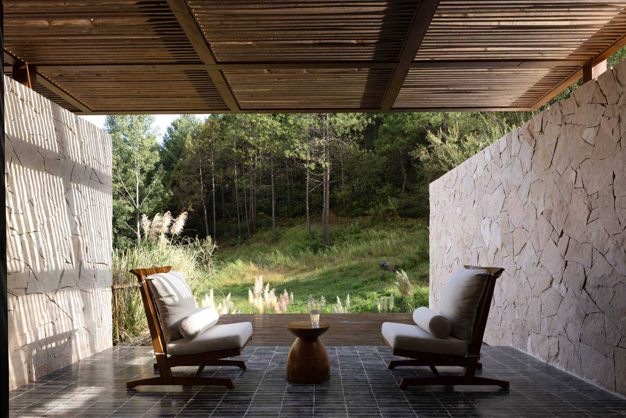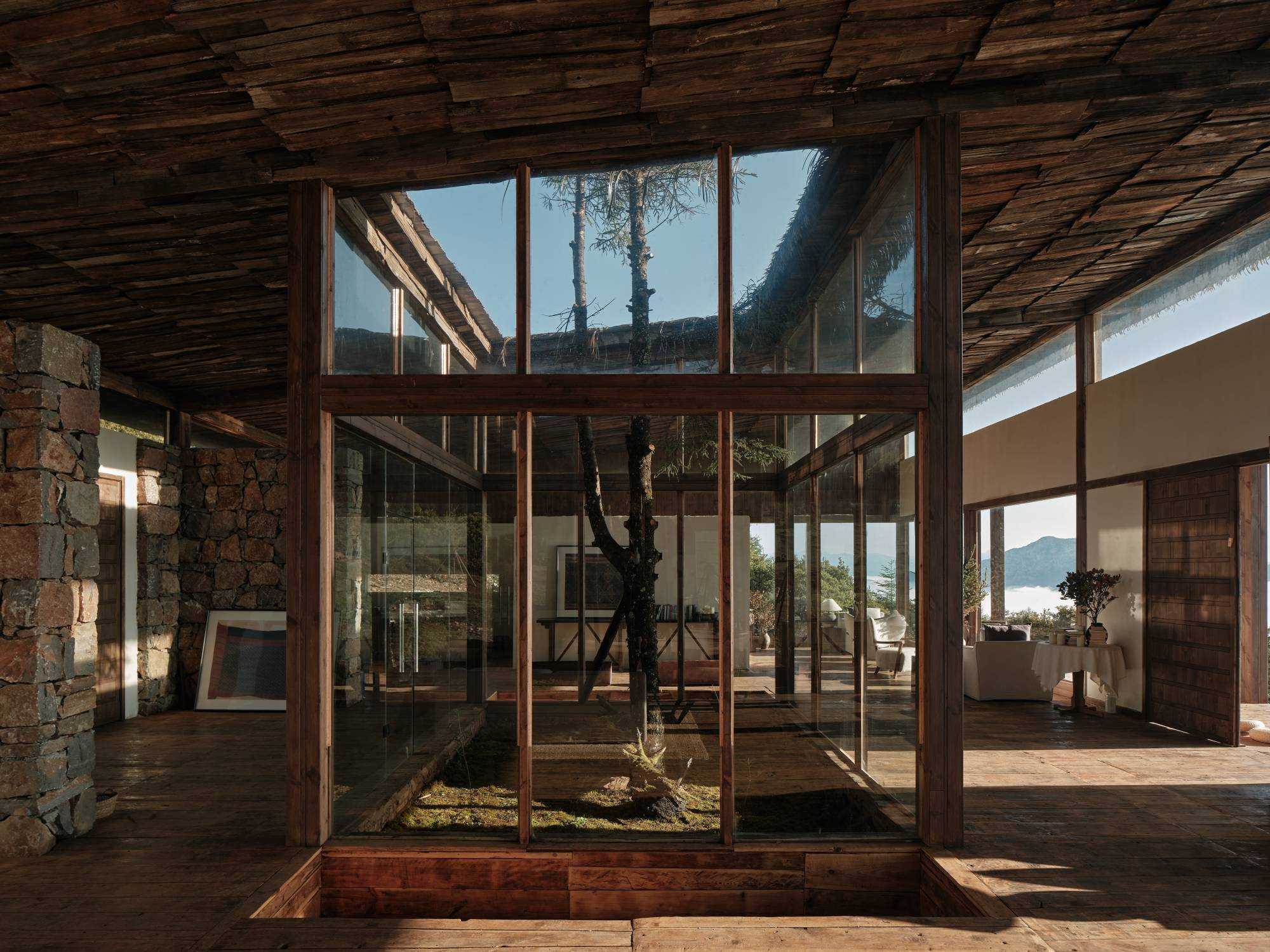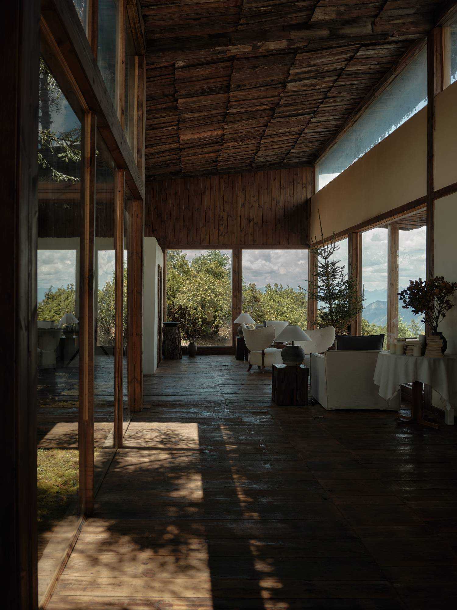 | 在泸沽湖景区深处,隐藏着一座被松林环抱的建筑体。酒店共3层,与低处的祖母屋紧紧地依偎在一起,既保证了使用的便利,又象征着摩梭文化的血脉联系。住客与松慢的第一个照面,始于充满在地社交氛围的祖母屋,踏上阶梯,复行数十步,终于得见松慢的真容。通过赭色夯土墙、毛石、黛瓦塑造建筑的外观,隐喻着云南的崇山峻岭与广袤的红土地,保留着浓郁的自然属性和地域属性。结合泸沽湖的气候与功能需求,赋予一楼客房“前院后廊”的设计。推开折叠门,宽敞的院落映入眼帘,并通过檐廊连接大堂和客房,实现私密性与开放性的统一。午后,风穿堂而过,吹动树叶沙沙作响,温暖的阳光穿梭于廊架之间,光与影的交缠下,宛如一幅乡野印象画。一方面,尽可能拓宽窗的尺度,无论是客房还是走廊和楼梯间,都做到了将四周的风景纳入囊中;另一方面,设计抓住“被松林环绕”的特点,将这一元素运用到极致。倚窗眺望,听风入松。 山顶的美景,昼夜不舍,周而复始,这是独属于松慢的十二时辰。与酒店主理人讨论过后,将山顶的空地纳入了松慢的版图,在这里,童话中海蒂所生活的“云中牧场”变成了现实。这座由木石搭建而成的书屋,延续着松慢的设计基调,以作为入住体验的延伸。室外,云海日出,尽显豪迈的壮志,星汉灿烂,别有浪漫的诗情。室内,用温暖简朴的陈设扫除了山巅的凄清之气,使之具有人文观感,品尝手作饮品,静静阅读书籍,疲倦之时,凭窗望向近在咫尺的蓝天、松林与悠闲踱步于牧场的牛羊,让身心都跟随松慢的节奏,一点一点浸入自然。 不同于精品酒店的冷峻,松慢始终呈现“家”的特质,入住松慢,如同拜访暌违旧友,用身体感知对方的生活,一切都是那么自然适意。 | |||