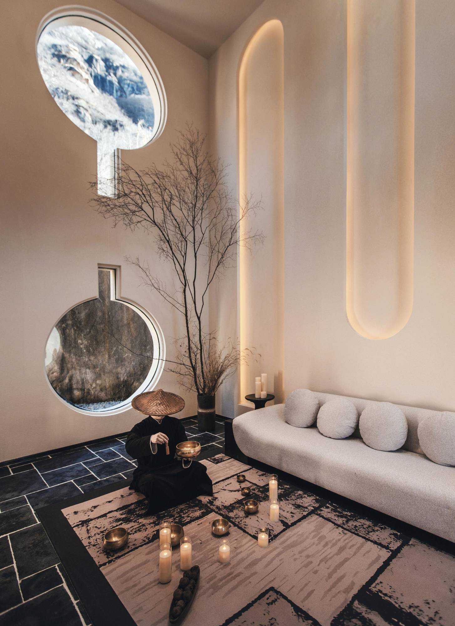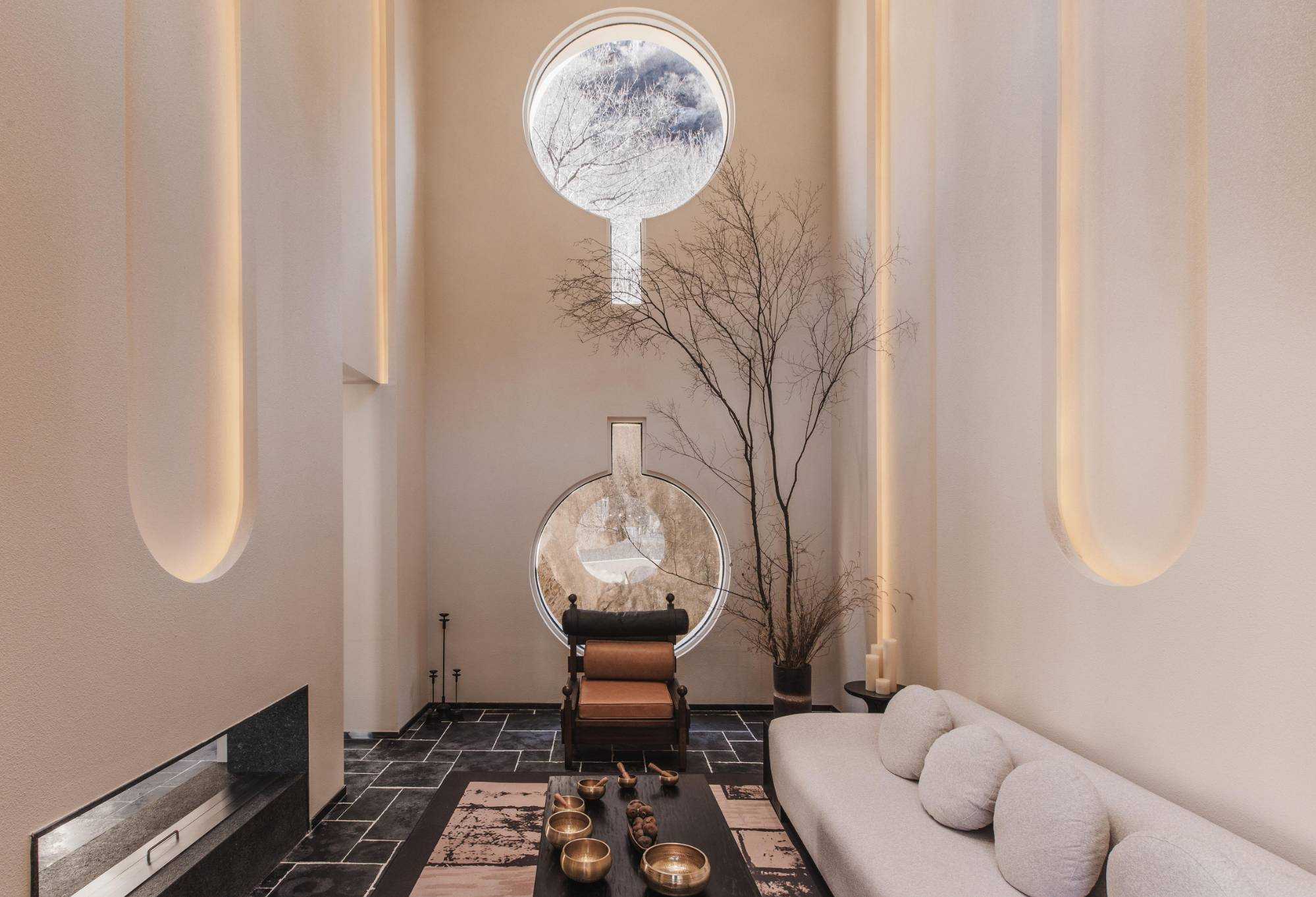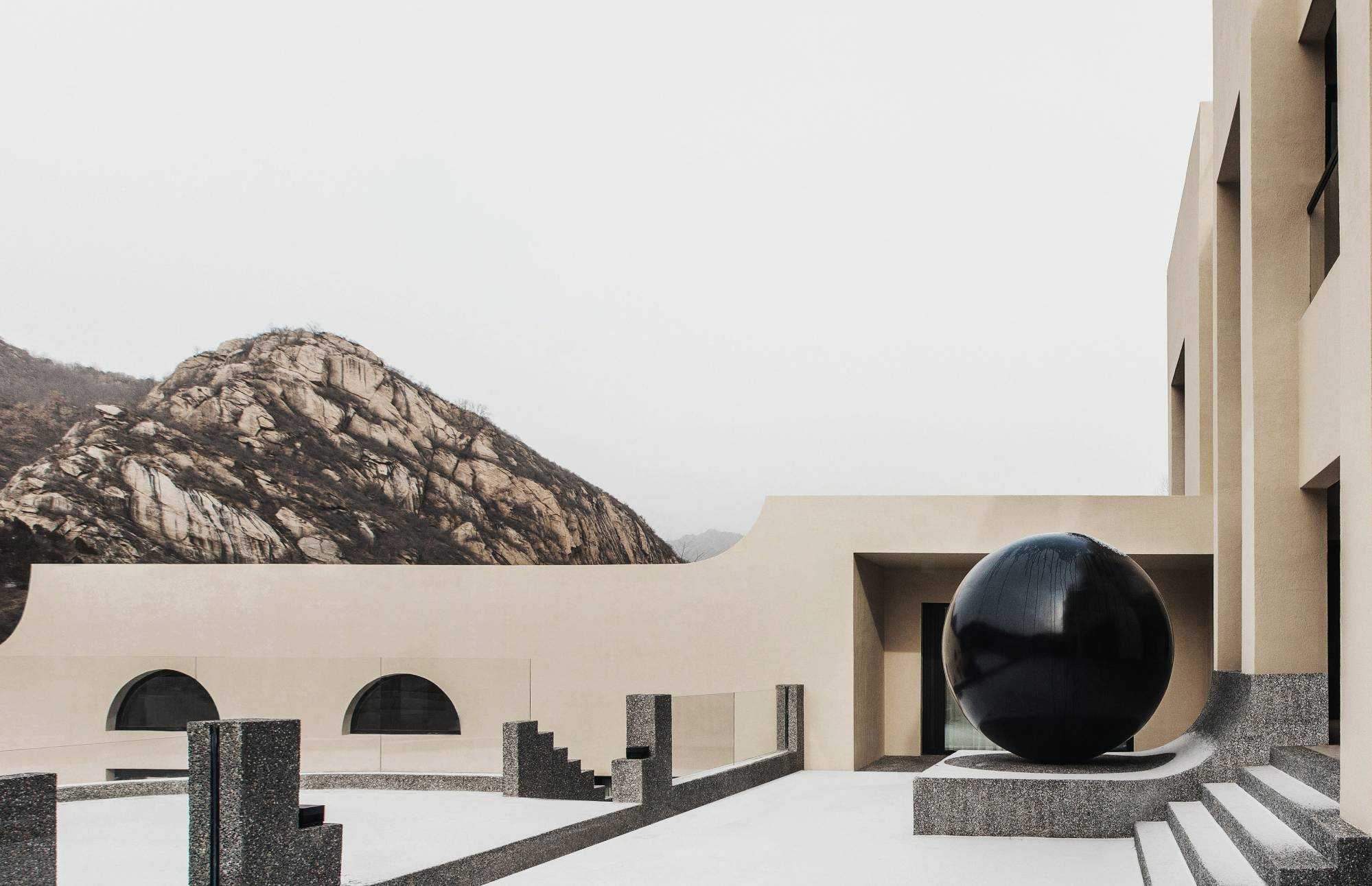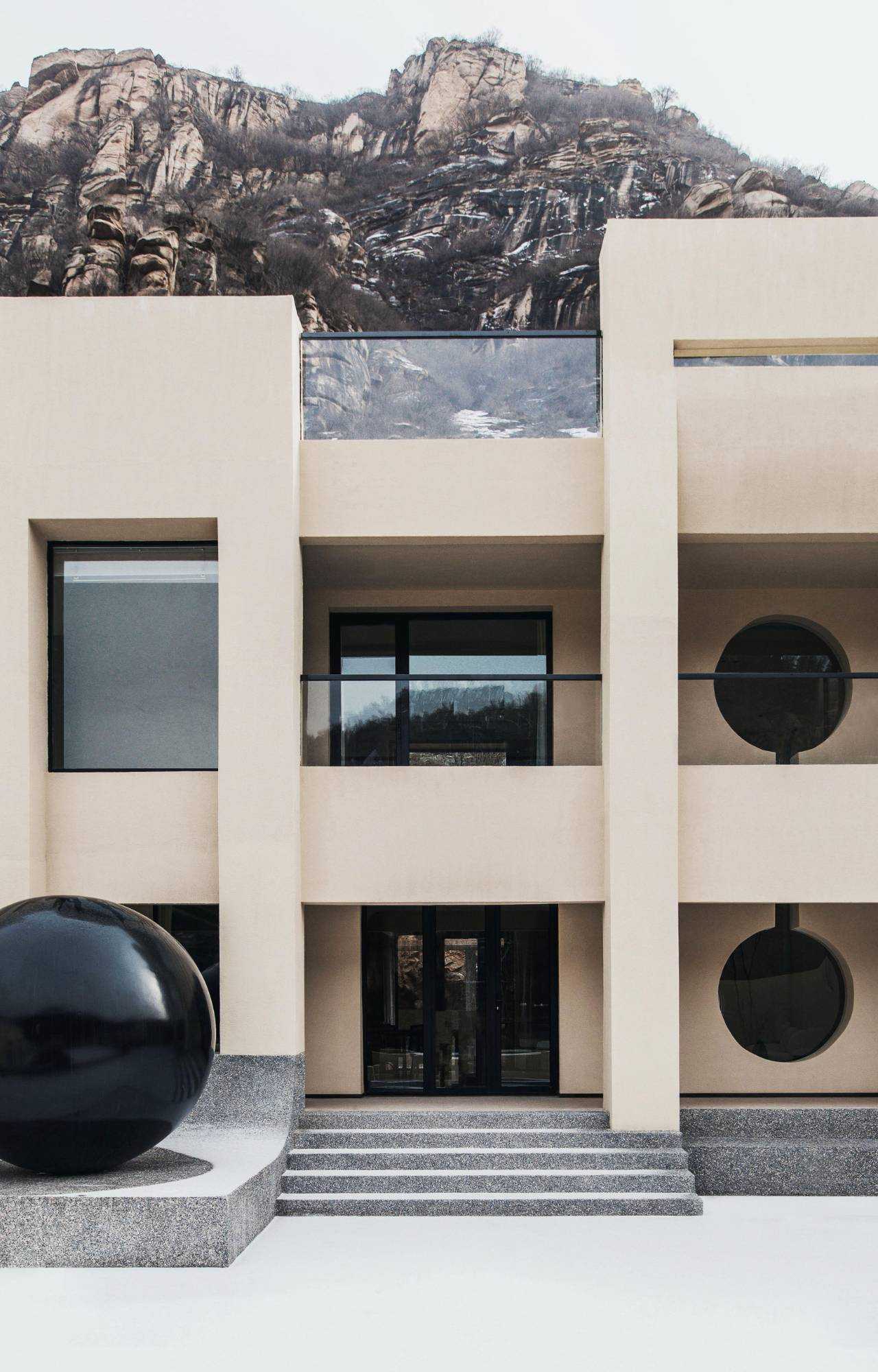 | 京城北方山区的密云,群山之中,素有“北方第一冰瀑”美誉的白河大峡谷-天仙瀑,在料峭冬寒里,呈现出冰瀑奇观。往日涌动的溪流也在四季的最后,化身一条银河,在冷冽的孤寂中,定格冬日的影像。 山麓的原野一展无垠,山前耸立着一座静谧的解构建筑,其名为“嶙庐”Ubaia,意为“嶙峋山间的居所”。暮色苍茫中,山巅残留着淡淡余晖,建筑散发出柔软灯火,仿佛要将冰封融化。 建筑分为三层,向着山体的方向逐层递增,拱形门洞与长方体块穿插的几何解构,让其外形宛若一间山中的艺术馆,亦如一首献给山谷的散文诗。从建筑一层的中线进入到内部,眼前是酒店接待公区,即集合了酒吧、咖啡、西餐、休闲为一体的综合性餐厅。 空间将外部拱形元素沿用,在米色系空间营造的松弛氛围中,原木餐桌椅尽显几分古朴气质,碰撞出独属于山间的野奢风情。建筑大师弗兰克·赖特曾说:“壁炉是生活的中心。”在餐区一旁,以壁炉为中心的休闲区石墙原始粗粝,石块特有的野性被炉火细致勾勒,加之顶部的圆形天光设计,仿佛置身于山野部落。与三五好友于此相聚,推杯换盏之间,暖意在心底蔓延,欢笑在空间响彻,享受世外之地的纯粹时刻。 从一层拾级而上来到二层空中庭院,层次多变的建筑解构,让人再次惊叹自然场域之巧妙,居于二层室内空间入口的黑色球体犹如一颗深邃的明珠,吸纳着人杰地灵的气韵。庭院中心有一方瀑布泳池,在夏季,它会成为供人娱乐的小型浴场,而在冬季,整片庭院则转化为瞭望远山与野长城的观景台。 设计场域之初即融入“蒲芦之地”,蒲芦是古代对葫芦的别称,因此在设计之中引用了葫芦元素,以融入在地文化。由二层庭院进入的冥想空间,因解构的葫芦造型窗景,而极具神秘色彩。两只葫芦对立示人,下方的葫芦框住后院的巨石景色,上方的葫芦则看得见远山与天空,有着“天地运而相通,万物总而为一”的哲学意境。 贯通两层的挑高空间以米色营造雅静,复古石材地面则以黑色营造庄严,在此进行茶艺、插花、冥想等活动,自有一番遁入心流之境的深沉浸式体验。 嶙庐设有多种形式的客房,窗户依着后山巨石的称为观石房,室内以无幕帘淋浴间为特色,可以享受身临其境的“自然野浴”,带有私汤的套房,则能满足多口之家前来就住的需求。 在城市喧嚣中久居,内心总渴望到达一片能让灵魂休憩的净土,而邂逅“嶙庐”,便是踏足一次极致的身心灵之旅,让山林野境的滋养,深刻而绵长。 | |||