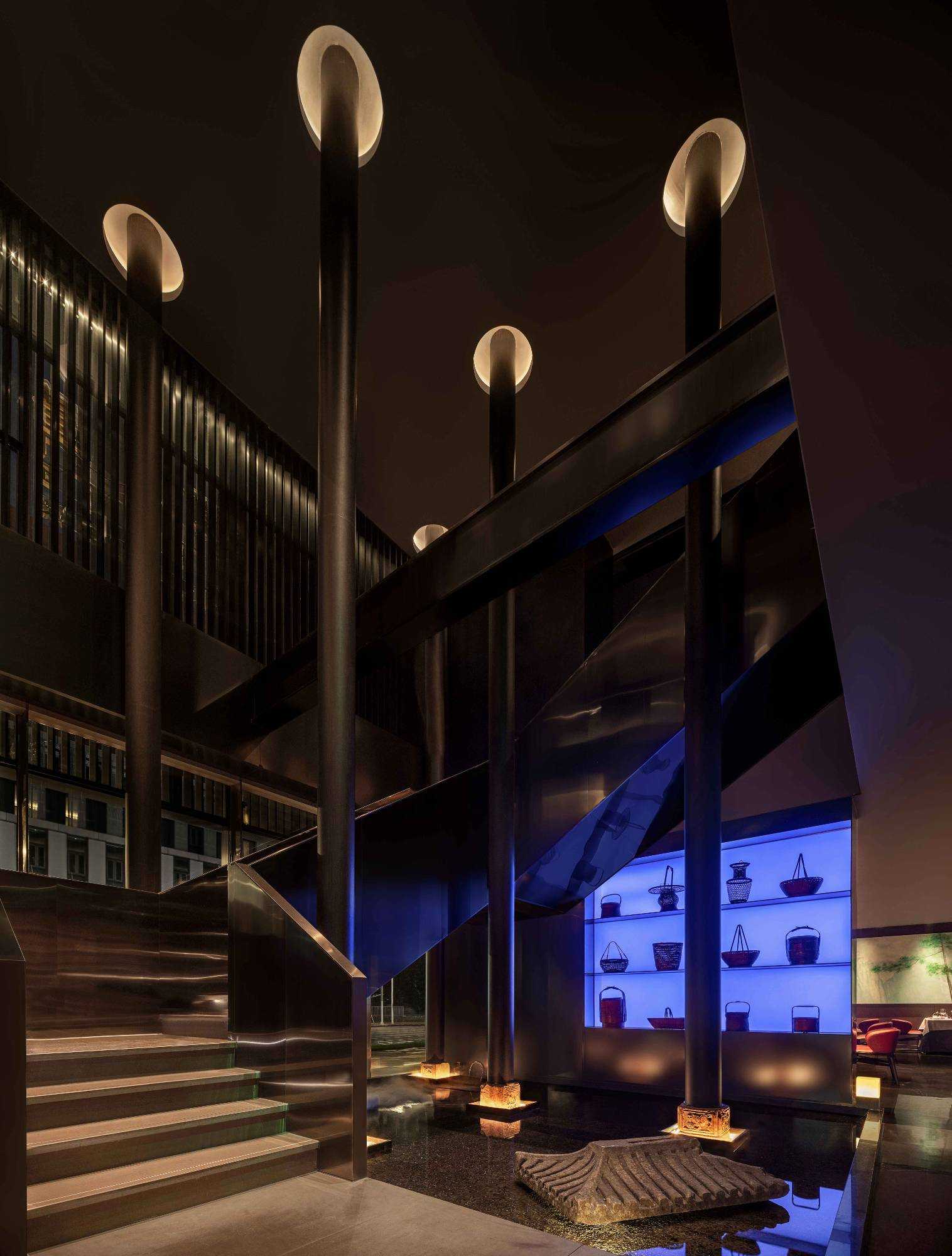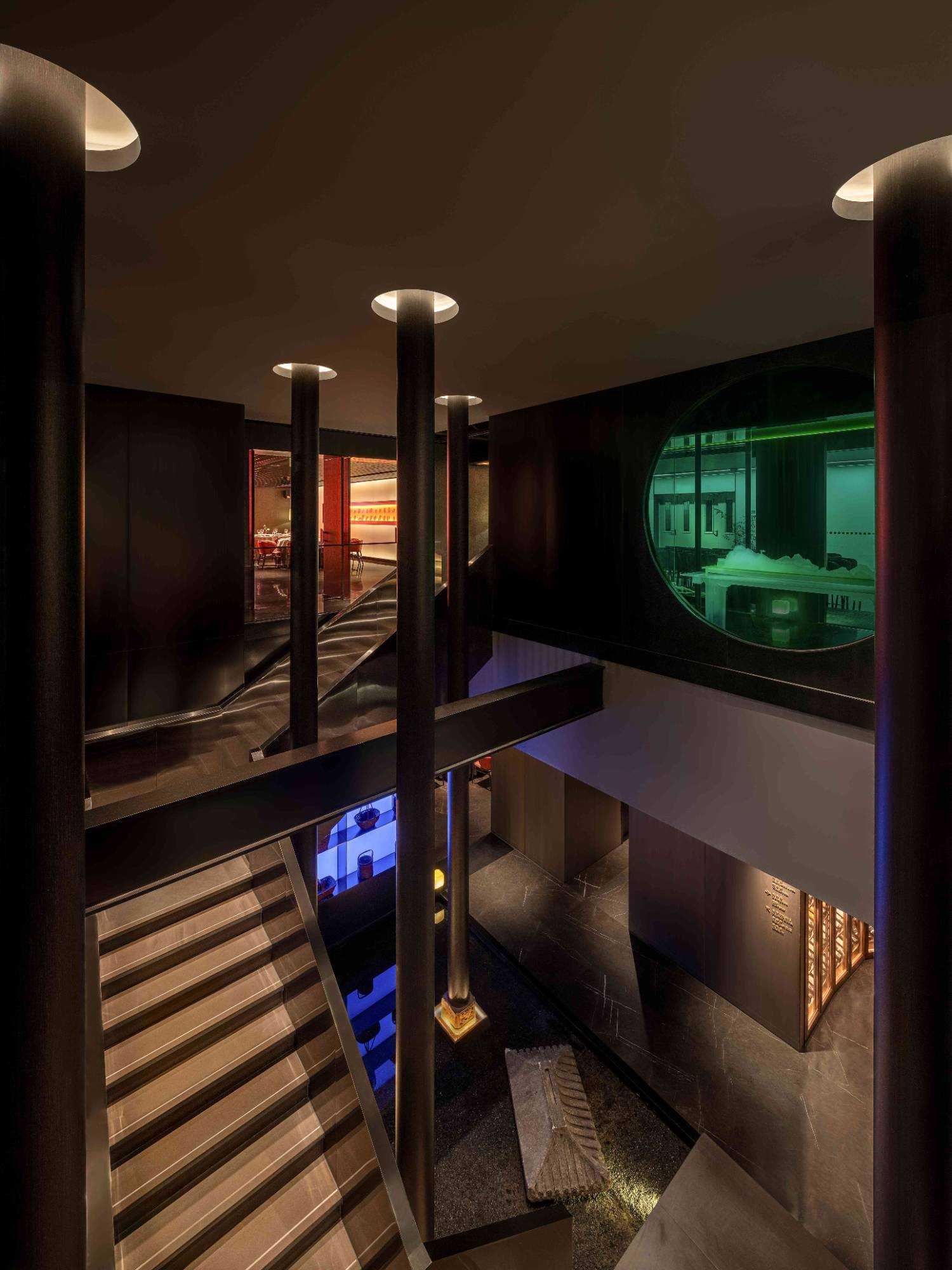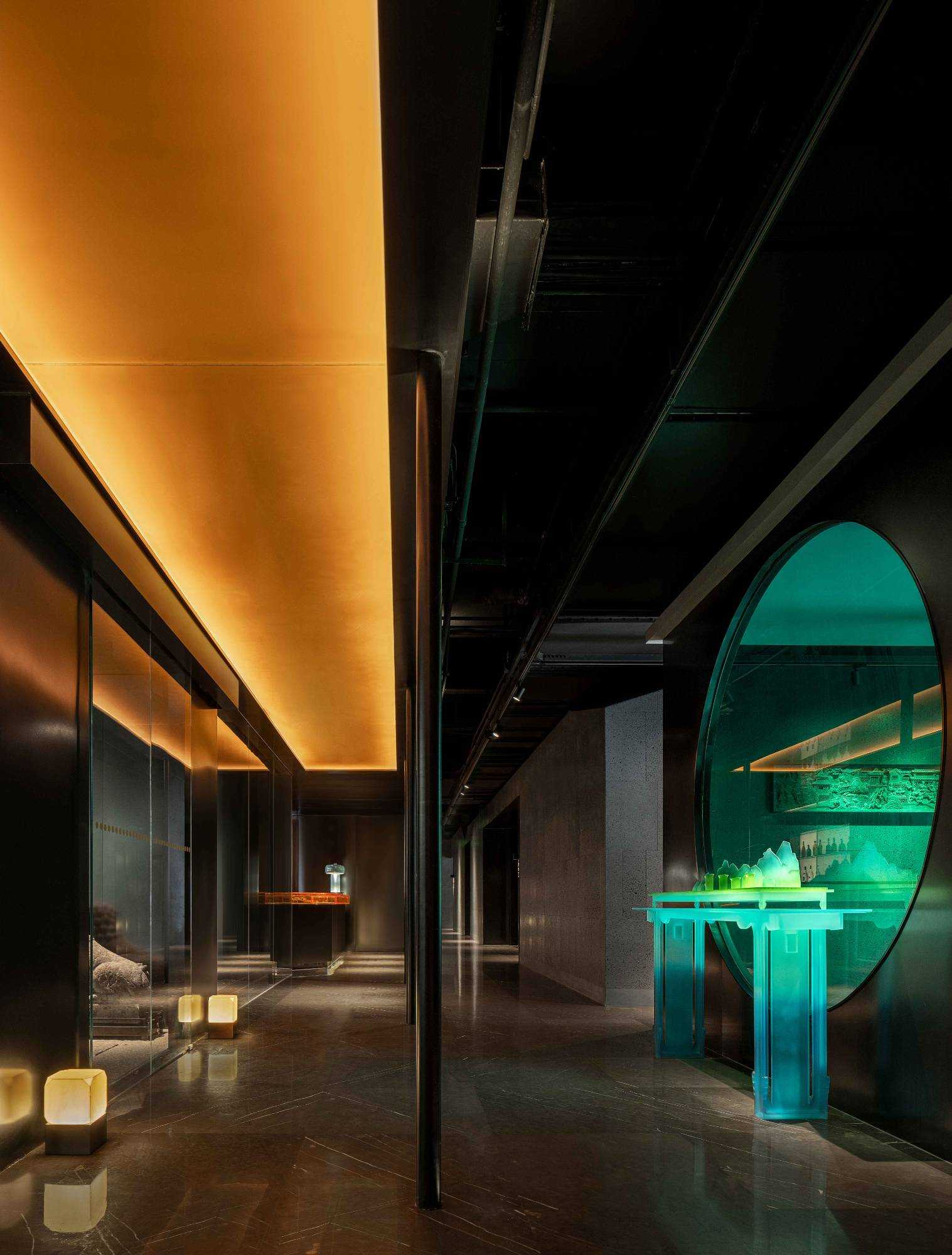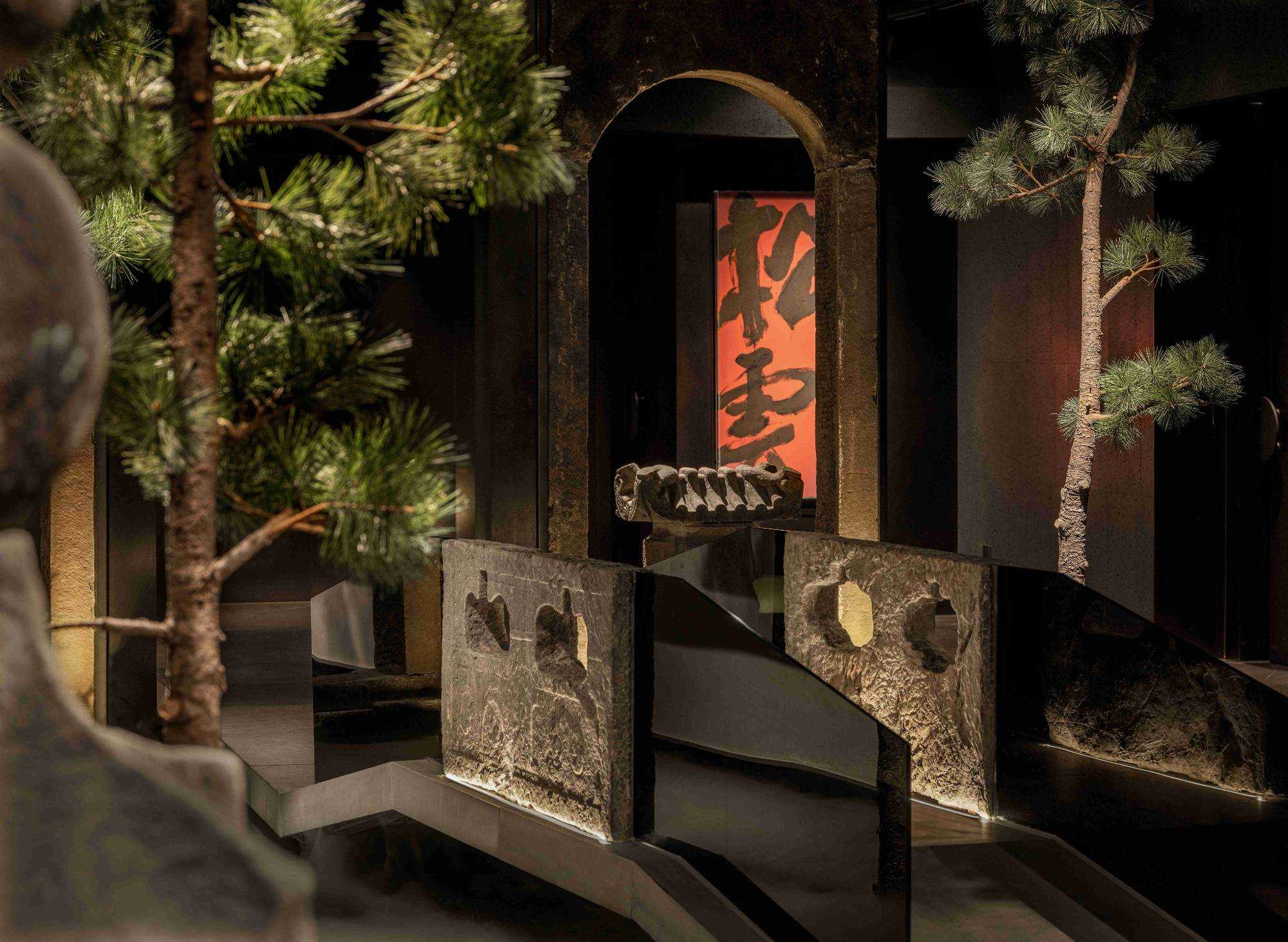 | 画意入境 以艺写意 徽顺昌艺术餐厅餐厅位于上海,是一家新创立的徽菜品牌。其首店开在一栋两层的临街的商业体内,分为两层。设计团队根据其品牌定位,商业定位和空间原始结构进行了设计前期研究和定位。采取徽州元素,当代设计的理念,将徽文化元素与空间进行了有机的结合和应用。 在一层主门头外观设计上,采取似徽非徽,传统与现代结合的理念,采取现代线形设计与幕墙设计结合,融入徽州建筑特色冬瓜梁元素,突出了徽州的符合而步显的太过繁复和古旧,在利用长开面的门头特点,创造性的在餐饮门头中,采取了商业空间的的艺术橱窗设计,展示徽州的文化元素和品牌形象。使得门头更具特点和视觉吸引力。 在空间结构上,一层为厨房和散座区域,二层为包间区域,设计中将一二层楼板部分打通,行程一二层共享互动,将共享区构造人行步梯,共享区域采取了徽州建筑四水归堂的元素并结合建筑柱体,形成柱体矩阵与楼梯结合,楼梯下方采用水系设计,使得空间丰富而灵动。一层散座区与公共区域的分割,使用在徽州区域采集来的食盒,菜篮等徽州传统器物,组成的背发光置物架,采用博物馆展陈形式使得空间艺术感与文化感剧增。散座区域由散座区和小型包间组成,由徽州的特色的窗门将散座与包间分离,半透的隔断可使得包间与散座区能互为借景也能使包间区能通透。一层散座区由艺术家创作和手绘的大型黄山松林与山景油画,即突出了其文化特点,使空间更具艺术性。 二层区域为餐厅包间区,由二层入口,包间和小型宴会厅和中心景观组成。入口处开面较宽,设计中以黄山特色的奇石元素与庭院元素结合,形成一幅绘画长卷,引人入胜,若入画里。整个二层布局采取可徽州村落的建筑肌理,形成院,园,廊,巷,沼,林,桥,塔的组合。特别在中庭部分设计中将徽州村落的重要组成部分和典型特点月沼作为元素,并将徽州的粉墙黛瓦、幽静松林、月沼水色、古桥古塔,石门及古建构建,进行了写意和创新的组合,形成一幅水墨徽州,古村新意的画境,使得二层空间灵动而富有诗情画意。 包间区域根据徽州文化特点,确定了每个空间的文化主题,并根据主题将收藏的徽州的古物旧器采用博物陈列和艺术装帧形式进行了文化的表现和艺术的呈现,使得空间更具艺术性和文化感。 装饰材质上以洞石和肌理漆涂料和金属材料、木质材料为主、色彩以黑白灰为主色系,体现水墨徽州的意蕴。 艺术陈设此次以古物焕醒,古物新用为主旨,并采取先收物在设计的逆向设计的理念,根据物品设置空间,软装陈设不再是配角而是主角突出其文化性,艺术感。 本案设计,设计团队采取先加后减,先古后今,文商并行,突破原有的设计经验,深入挖掘和汲取文化元素,并深入对空间进行研究和文化梳理,将徽州文化与商业功能使用有机结合,画意入境,以艺写意的手法,形成了具有文化特性、艺术特质和商业氛围的空间形态。 | |||