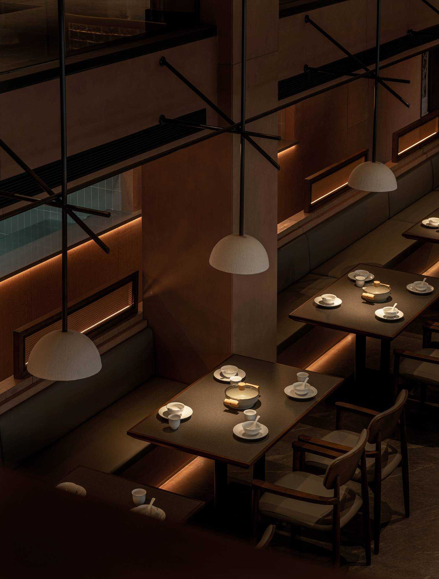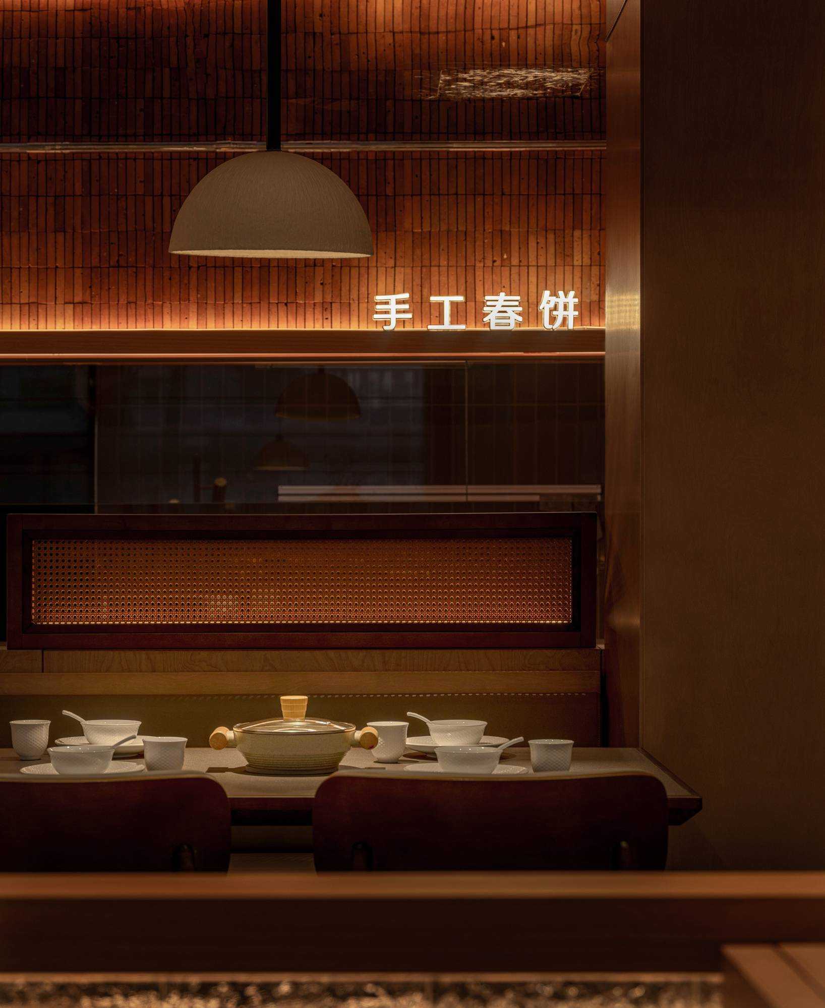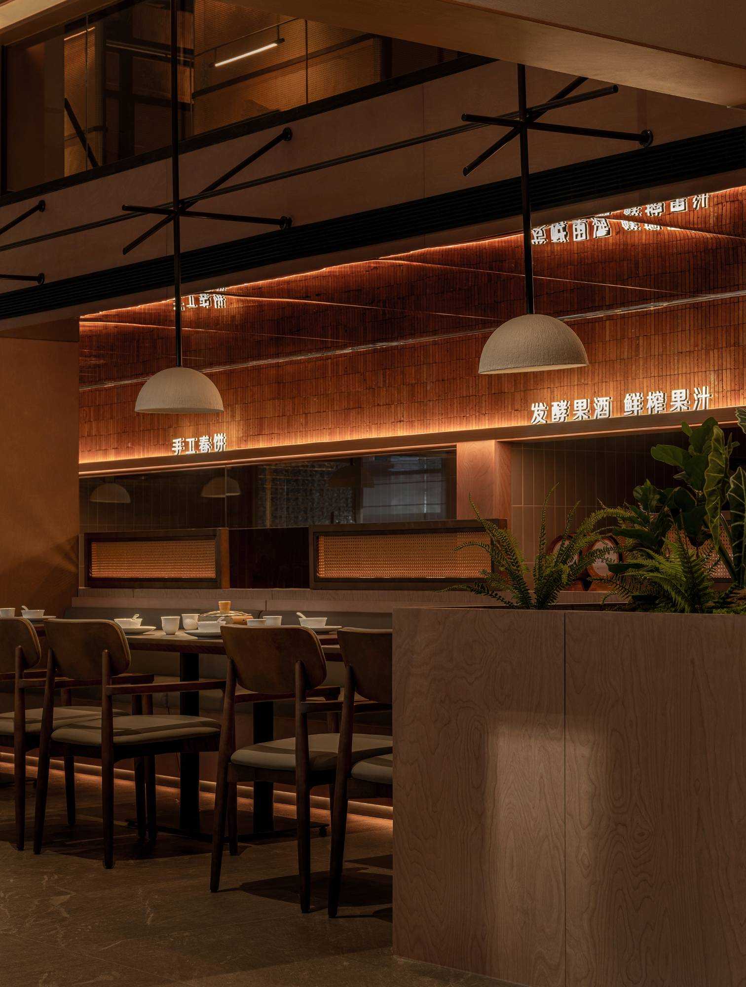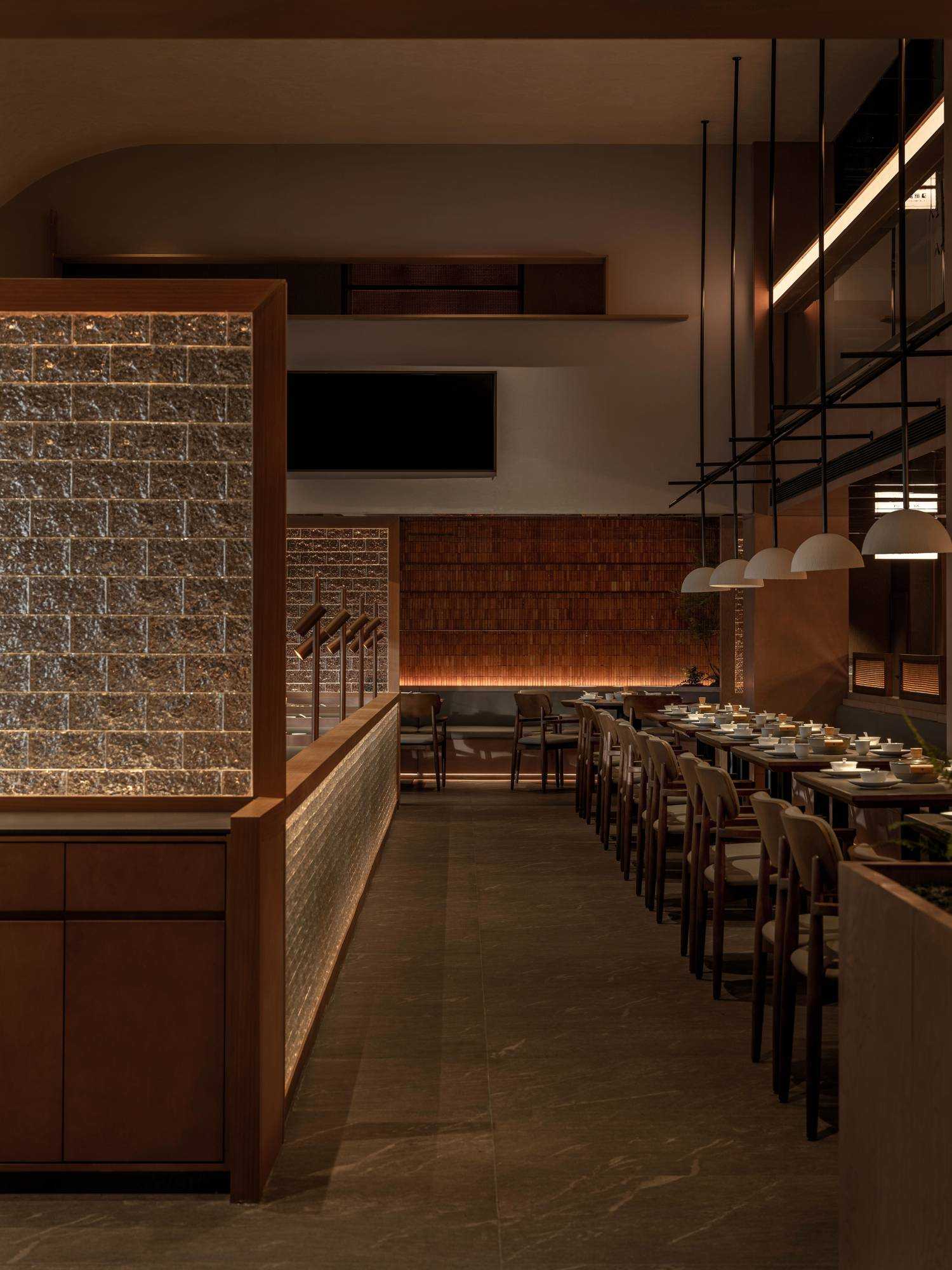 | 尽境空间设计秉持着对新时代审美趋势的精准洞察,以巧妙构思与独到笔触,将「喜得乐·春饼烤鸭」餐饮空间打造成人文情感的容器,让每一位踏入其中的食客,都能在品味美食的同时,深度感知空间传递出的细腻人文温度 。 宴遇 XIDELE 推开门,视觉、味觉瞬间被这一方天地捕获。在弥漫着暖黄灯光与食物香气的空间里,我们相遇,恰似泰戈尔所言,“我们如海鸥之与波涛相遇似的,遇见了,走近了。”周围的一切都似被按下了静音键,所有喧嚣都成为微不足道的注脚,只留下藏不住的心动与期待。 温润的木质纹理在仿若暗涌 “潮汐” 的光影交错间,悄然蔓延生长;陶土红砖褪去了最初的粗糙与炽热,被时光锻造成琥珀,复古的色调,晕染着深沉的情怀。这里的相遇,无关喧嚣与纷扰,每一次目光的交汇与邂逅,都如同稀世珍宝,值得被温柔以待。 玻璃砖隔断,以简洁流畅的线条、清透澄澈的质感,在空间中划出独特边界,充满现代感与艺术气息。光线穿透玻璃砖,折射出梦幻般的光影,晕染出斑驳陆离的花纹,像是一幅自然的艺术画作。 每一块玻璃砖都承载着独特的纹理,有序排列,在整体上呈现出和谐统一的美感,为空间注入了灵动的艺术气息。 红色手工砖如同落日余晖,渲染周围的一切,展现出一种大气磅礴的美与松弛感。光影之下,如火光日雀跃,源源不断地向外散发着滚烫的热情。 品宴 XIDELE 玻璃澄澈透明,仿若一泓静谧的湖水,毫无阻隔地将室外的景色引入室内。坐在窗边用餐,阳光迫不及待地穿过落地窗,温柔地洒在餐桌上。光线带着蓬勃朝气,为每一道餐镀上一层诱人的金边,唤醒味蕾。 午后,阳光愈发炽热,罗马帘缓缓降落优雅地过滤,只留下柔和的光影,勾勒出几何形状的光斑。家人围坐,品宴间欢声笑语,在温馨的氛围里回荡,落地窗也成为这美好时刻最浪漫的背景板。 厢宴 XIDELE 曲径通幽处,是一场温雅的厢宴。无论是高端商务接待、宴会,还是精致的用餐时光,皆显不凡品味。 落地窗与室外无界相通,目之所及,无需停顿与转折,自室内流畅地延展至室外天地,视野缓缓打开,一点点变得开阔敞亮。 几何体块以简约的姿态碰撞、组合,勾勒出利落又富有层次的空间轮廓。光线在体块的间隙中肆意穿梭,明暗交织,渲染出空间的情绪,呈现出别具一格的空间美学。 宴途 XIDELE 打破常规空间叙事,重新定义与空间互动的理解。楼梯以独特的结构形态介入空间,用错落的踏步、蜿蜒的扶手,引导着人的行动轨迹,开启一场与空间的深度对话。让每一次拾级而上、逐级而下,都成为探索空间层次、体验空间变化的宴途 。 高挑空以其开阔的纵向尺度,在视觉上为空间带来一种极具张力的延伸感,拓展空间的边界。自由的线条虚构出一种随和感,不着痕迹地营造出一种悠然、随和的氛围,让每一位置身其中的人都能感受到那份自在与惬意。 汪曾祺曾言,世界是喧闹的,我们无法逃离到深山里,唯一的办法就是闹中取静。 私宴 XIDELE 推开门扉,从繁华都市一步迈入清幽之地。窗外,树木摇曳生姿,室内,藤编隔断散发着质朴香气,与自然相融,不着痕迹地在私密性与开放性之间,寻得了绝妙的平衡。在此,与挚友围坐,于静谧时空里,聆听自然,共享美食,心灵也得到了深度滋养。 藤编屏风在暖黄灯光的轻抚下,若隐若现,半通透感保留了恰当的私密性,又赋予空间连贯的通透感,一层与二层相互呼应,借由屏风的过渡,空间实现交互灵动。食客们穿梭其间,身影在屏风的掩映下时有时无,恍惚间,仿佛穿越回了旧时光,每一步都充满诗意。 内,几缕花枝悠悠逸出,在朦胧的光影里,似隐还现,那姿态,恰似怀抱琵琶半遮面庞的佳人,娇羞又迷人,让人忍不住想要一探究竟。 每一回视线的游移,都能收获意想不到的惊喜,为用餐时光源源不断地注入新奇感,使得每一次抬眸,都成为一场令人心驰神往的奇妙相遇。 一室,一花,一画,一番高雅旨趣。光在地面、器物上落下错落有致的阴影,自然的气息在空间中流淌弥散。光影斑驳里,空间有了呼吸般的韵律,松弛与紧凑相互交织。这般景致,不着张扬,却在无声处,尽显内敛而含蓄的高雅情致 。 火光里蕴藏着珍馐,于冬日酝酿出美味。落座于此,等友人入宴。人心,总是在重逢时变暖,这,便是相聚的意义。 | |||