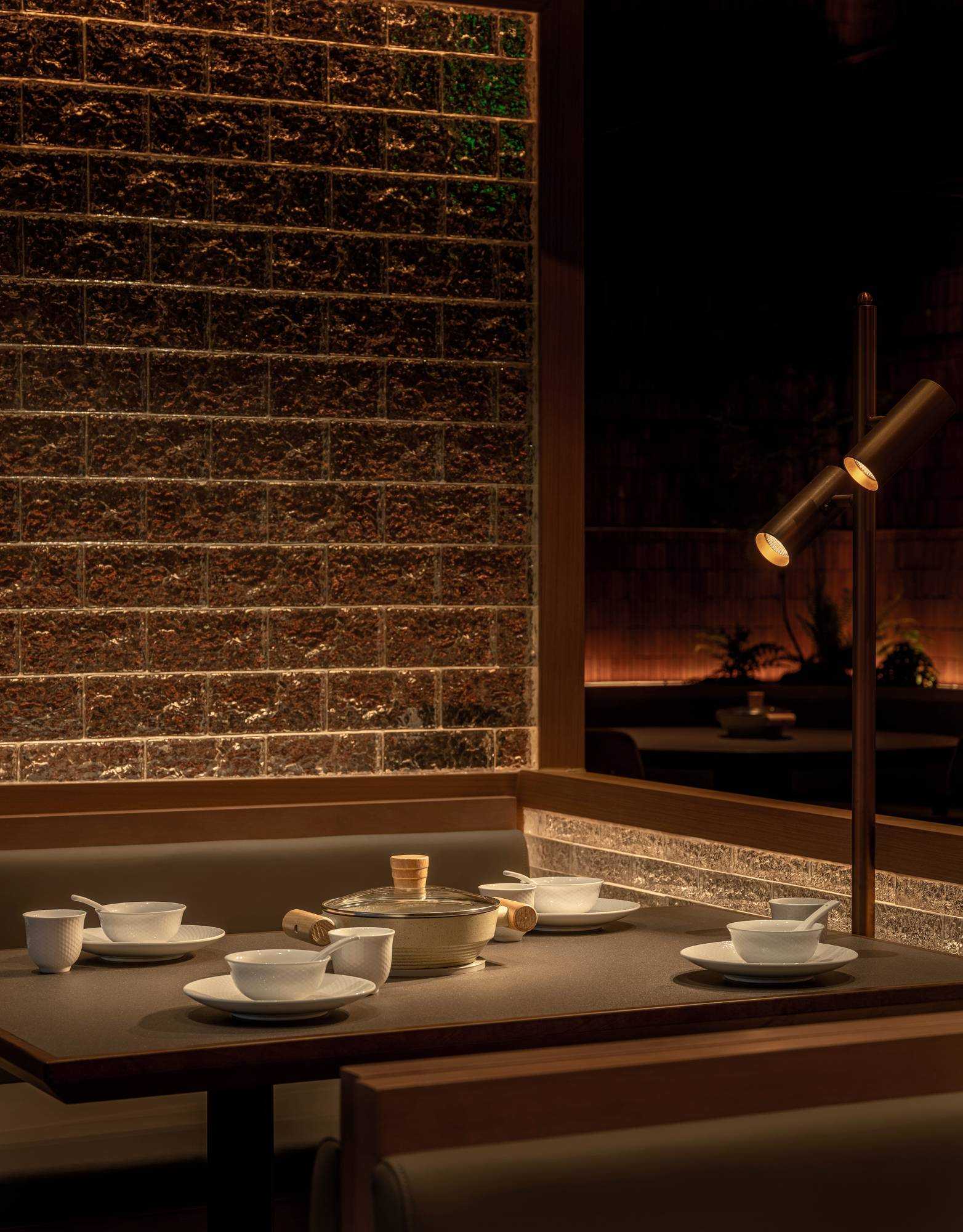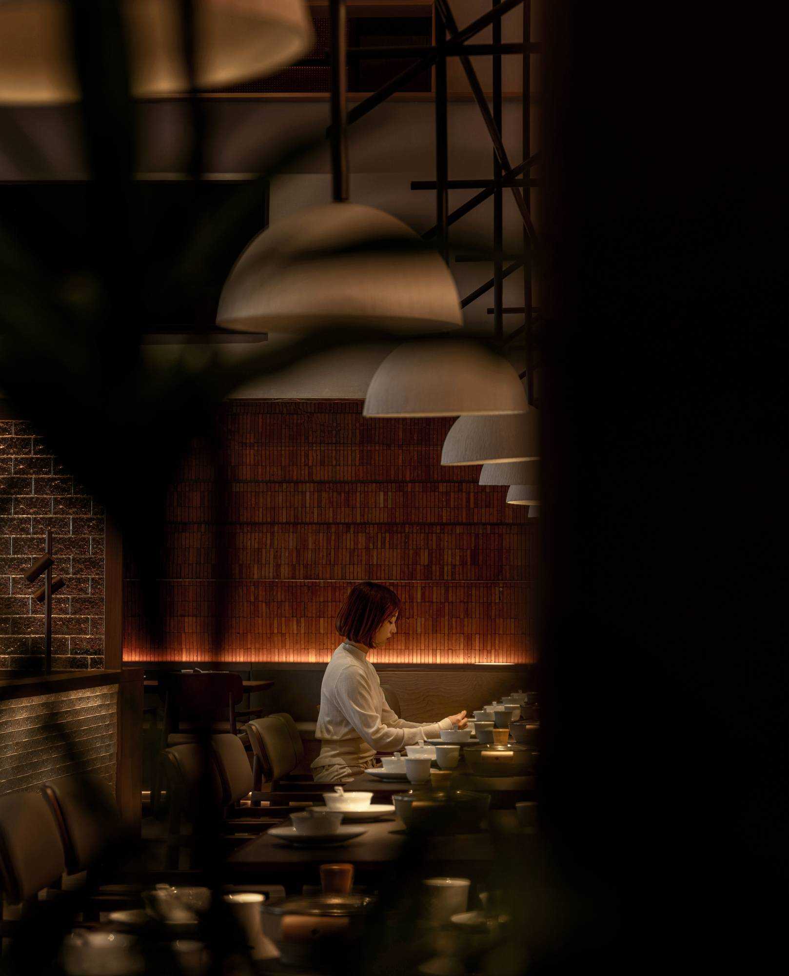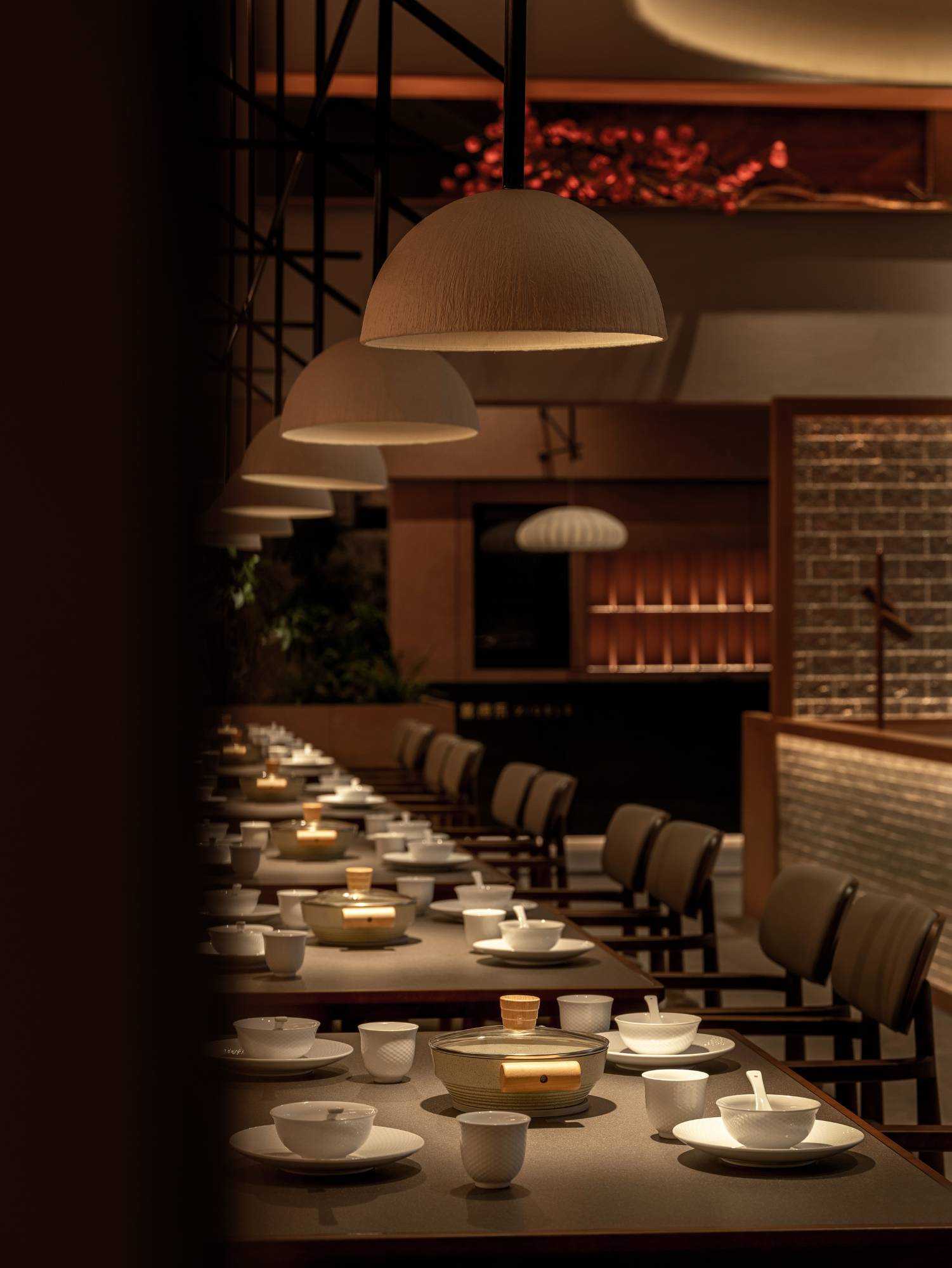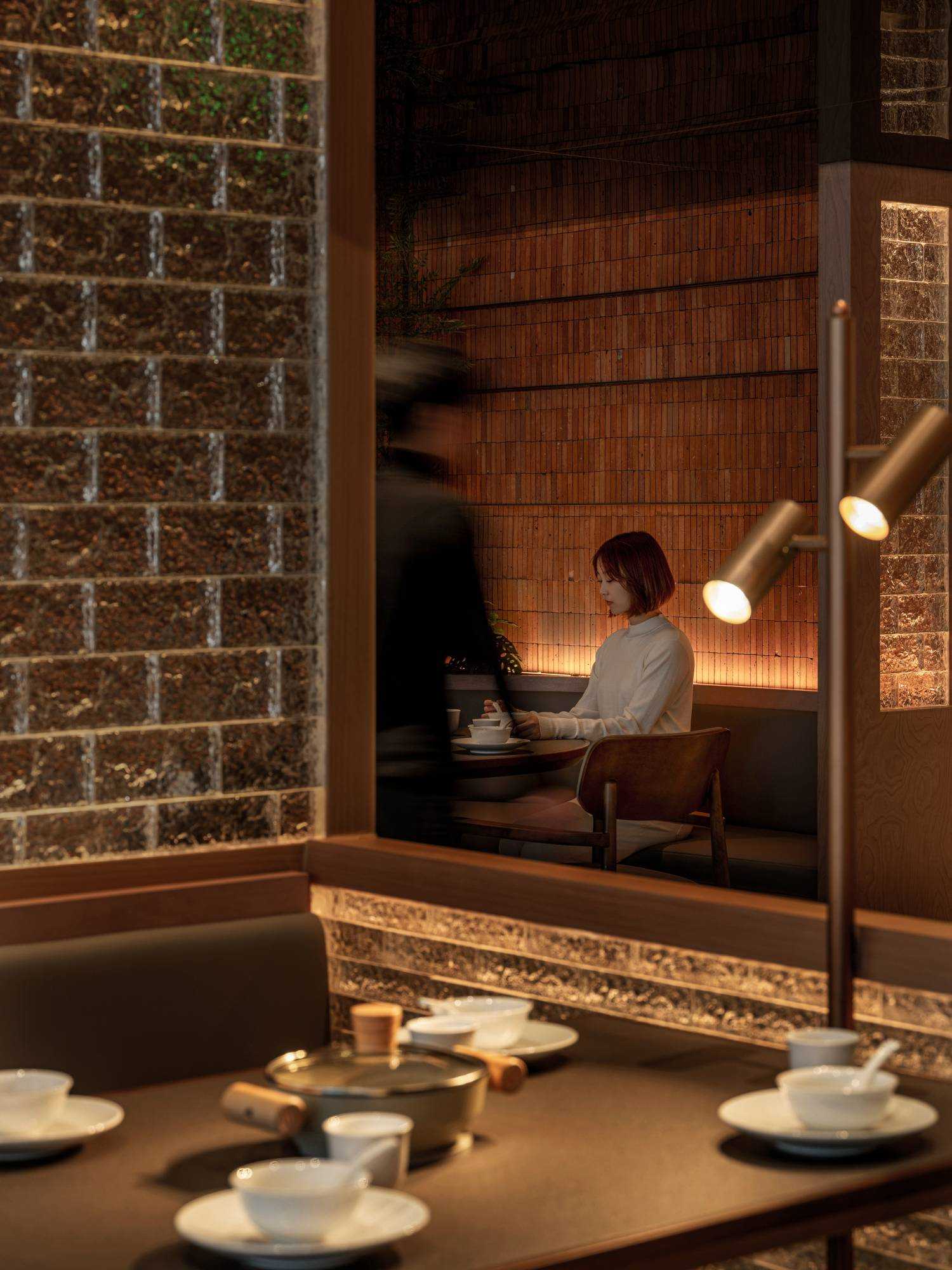 | 尽境空间设计秉持着对新时代审美趋势的精准洞察,以巧妙构思与独到笔触,将「喜得乐·春饼烤鸭」餐饮空间打造成人文情感的容器,让每一位踏入其中的食客,都能在品味美食的同时,深度感知空间传递出的细腻人文温度 。 宴遇 XIDELE 推开门,视觉、味觉瞬间被这一方天地捕获。在弥漫着暖黄灯光与食物香气的空间里,我们相遇,恰似泰戈尔所言,“我们如海鸥之与波涛相遇似的,遇见了,走近了。”周围的一切都似被按下了静音键,所有喧嚣都成为微不足道的注脚,只留下藏不住的心动与期待。 温润的木质纹理在仿若暗涌 “潮汐” 的光影交错间,悄然蔓延生长;陶土红砖褪去了最初的粗糙与炽热,被时光锻造成琥珀,复古的色调,晕染着深沉的情怀。这里的相遇,无关喧嚣与纷扰,每一次目光的交汇与邂逅,都如同稀世珍宝,值得被温柔以待。 玻璃砖隔断,以简洁流畅的线条、清透澄澈的质感,在空间中划出独特边界,充满现代感与艺术气息。光线穿透玻璃砖,折射出梦幻般的光影,晕染出斑驳陆离的花纹,像是一幅自然的艺术画作。 每一块玻璃砖都承载着独特的纹理,有序排列,在整体上呈现出和谐统一的美感,为空间注入了灵动的艺术气息。 红色手工砖如同落日余晖,渲染周围的一切,展现出一种大气磅礴的美与松弛感。光影之下,如火光日雀跃,源源不断地向外散发着滚烫的热情。 品宴 XIDELE 玻璃澄澈透明,仿若一泓静谧的湖水,毫无阻隔地将室外的景色引入室内。坐在窗边用餐,阳光迫不及待地穿过落地窗,温柔地洒在餐桌上。光线带着蓬勃朝气,为每一道餐镀上一层诱人的金边,唤醒味蕾。 午后,阳光愈发炽热,罗马帘缓缓降落优雅地过滤,只留下柔和的光影,勾勒出几何形状的光斑。家人围坐,品宴间欢声笑语,在温馨的氛围里回荡,落地窗也成为这美好时刻最浪漫的背景板。 厢宴 XIDELE 曲径通幽处,是一场温雅的厢宴。无论是高端商务接待、宴会,还是精致的用餐时光,皆显不凡品味。 落地窗与室外无界相通,目之所及,无需停顿与转折,自室内流畅地延展至室外天地,视野缓缓打开,一点点变得开阔敞亮。 几何体块以简约的姿态碰撞、组合,勾勒出利落又富有层次的空间轮廓。光线在体块的间隙中肆意穿梭,明暗交织,渲染出空间的情绪,呈现出别具一格的空间美学。 宴途 XIDELE 打破常规空间叙事,重新定义与空间互动的理解。楼梯以独特的结构形态介入空间,用错落的踏步、蜿蜒的扶手,引导着人的行动轨迹,开启一场与空间的深度对话。让每一次拾级而上、逐级而下,都成为探索空间层次、体验空间变化的宴途 。 高挑空以其开阔的纵向尺度,在视觉上为空间带来一种极具张力的延伸感,拓展空间的边界。自由的线条虚构出一种随和感,不着痕迹地营造出一种悠然、随和的氛围,让每一位置身其中的人都能感受到那份自在与惬意。 汪曾祺曾言,世界是喧闹的,我们无法逃离到深山里,唯一的办法就是闹中取静。 私宴 XIDELE 推开门扉,从繁华都市一步迈入清幽之地。窗外,树木摇曳生姿,室内,藤编隔断散发着质朴香气,与自然相融,不着痕迹地在私密性与开放性之间,寻得了绝妙的平衡。在此,与挚友围坐,于静谧时空里,聆听自然,共享美食,心灵也得到了深度滋养。 藤编屏风在暖黄灯光的轻抚下,若隐若现,半通透感保留了恰当的私密性,又赋予空间连贯的通透感,一层与二层相互呼应,借由屏风的过渡,空间实现交互灵动。食客们穿梭其间,身影在屏风的掩映下时有时无,恍惚间,仿佛穿越回了旧时光,每一步都充满诗意。 内,几缕花枝悠悠逸出,在朦胧的光影里,似隐还现,那姿态,恰似怀抱琵琶半遮面庞的佳人,娇羞又迷人,让人忍不住想要一探究竟。 每一回视线的游移,都能收获意想不到的惊喜,为用餐时光源源不断地注入新奇感,使得每一次抬眸,都成为一场令人心驰神往的奇妙相遇。 一室,一花,一画,一番高雅旨趣。光在地面、器物上落下错落有致的阴影,自然的气息在空间中流淌弥散。光影斑驳里,空间有了呼吸般的韵律,松弛与紧凑相互交织。这般景致,不着张扬,却在无声处,尽显内敛而含蓄的高雅情致 。 火光里蕴藏着珍馐,于冬日酝酿出美味。落座于此,等友人入宴。人心,总是在重逢时变暖,这,便是相聚的意义。 | |||