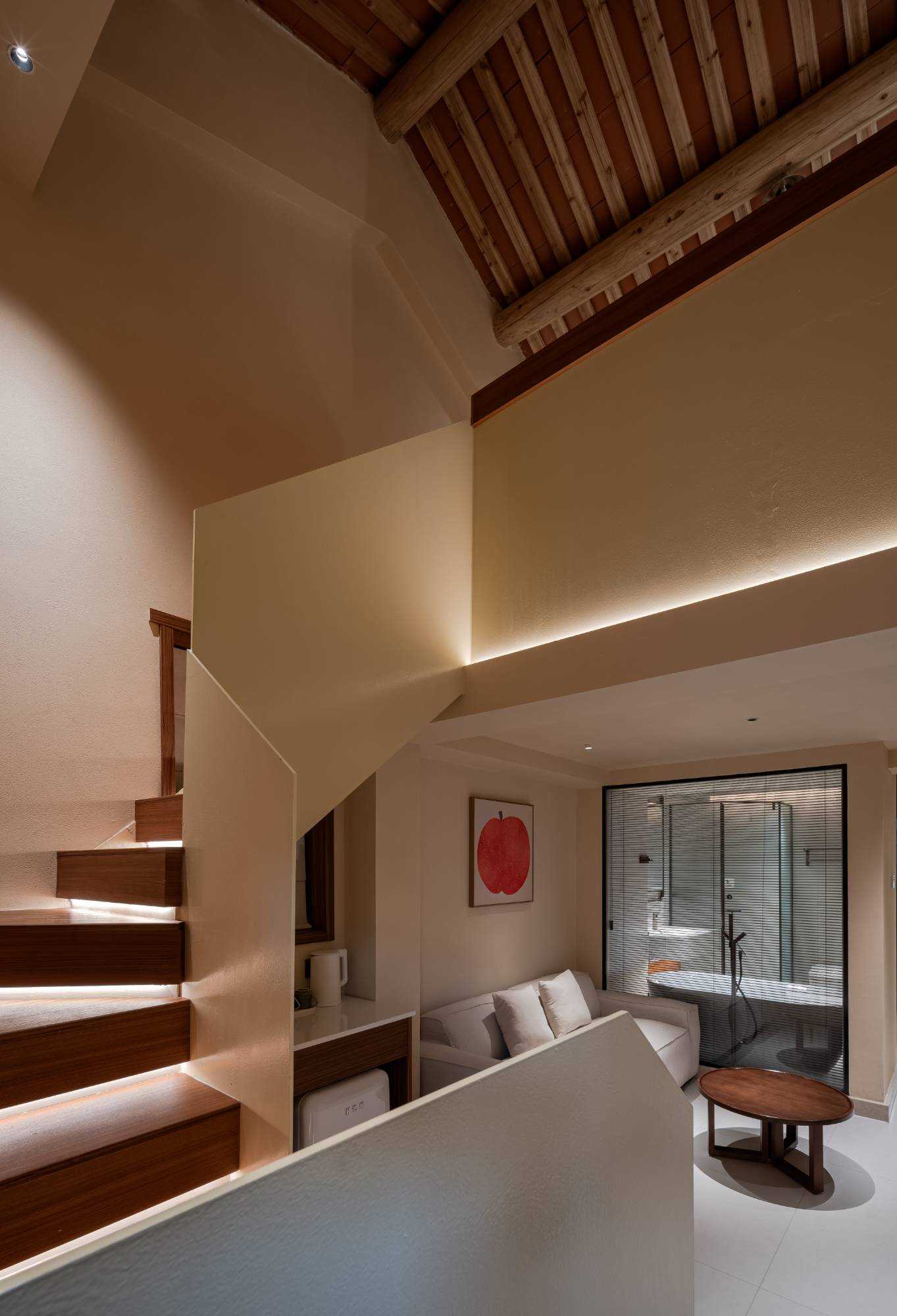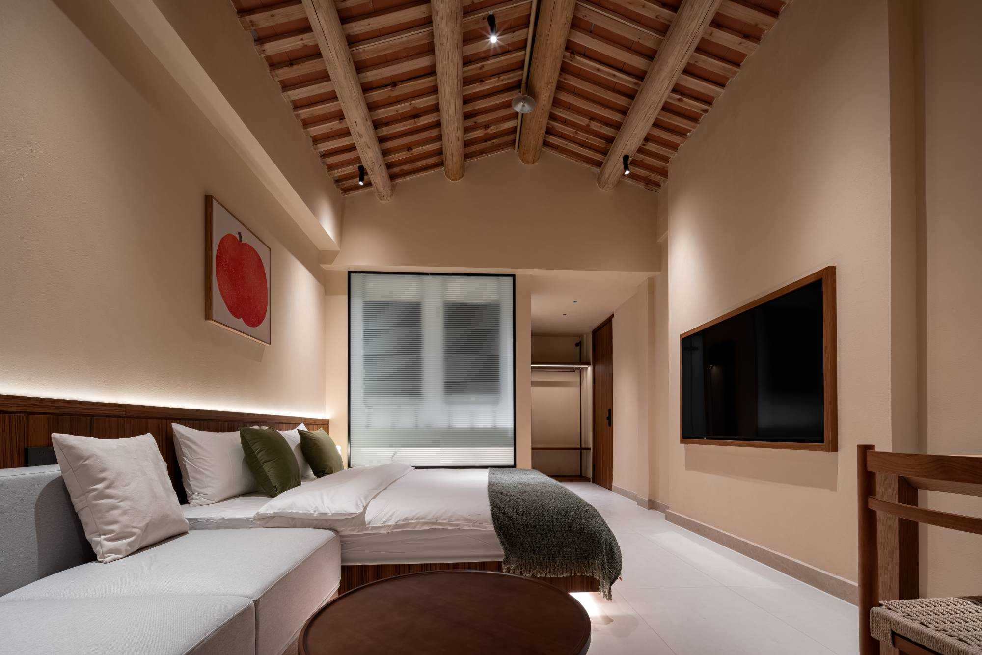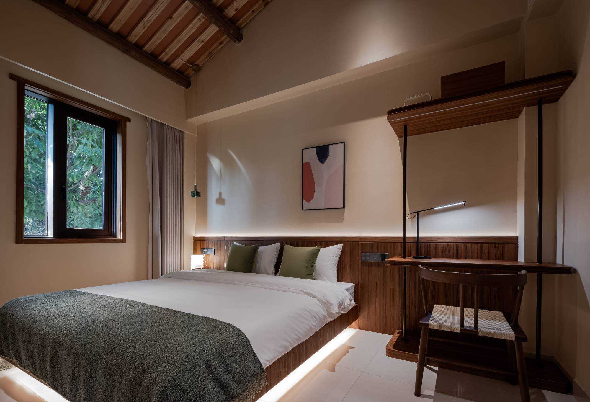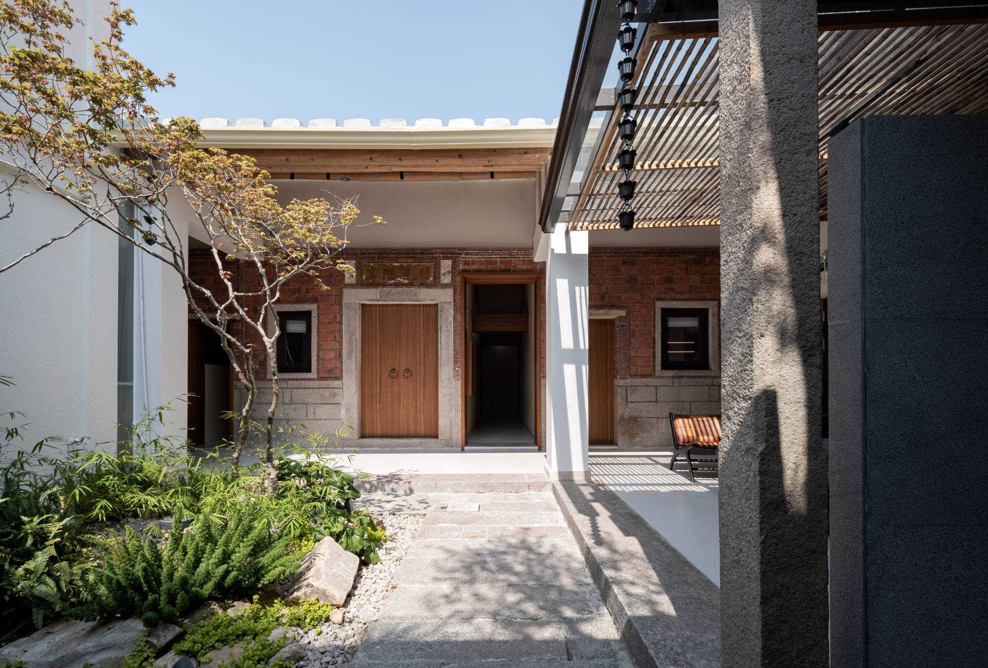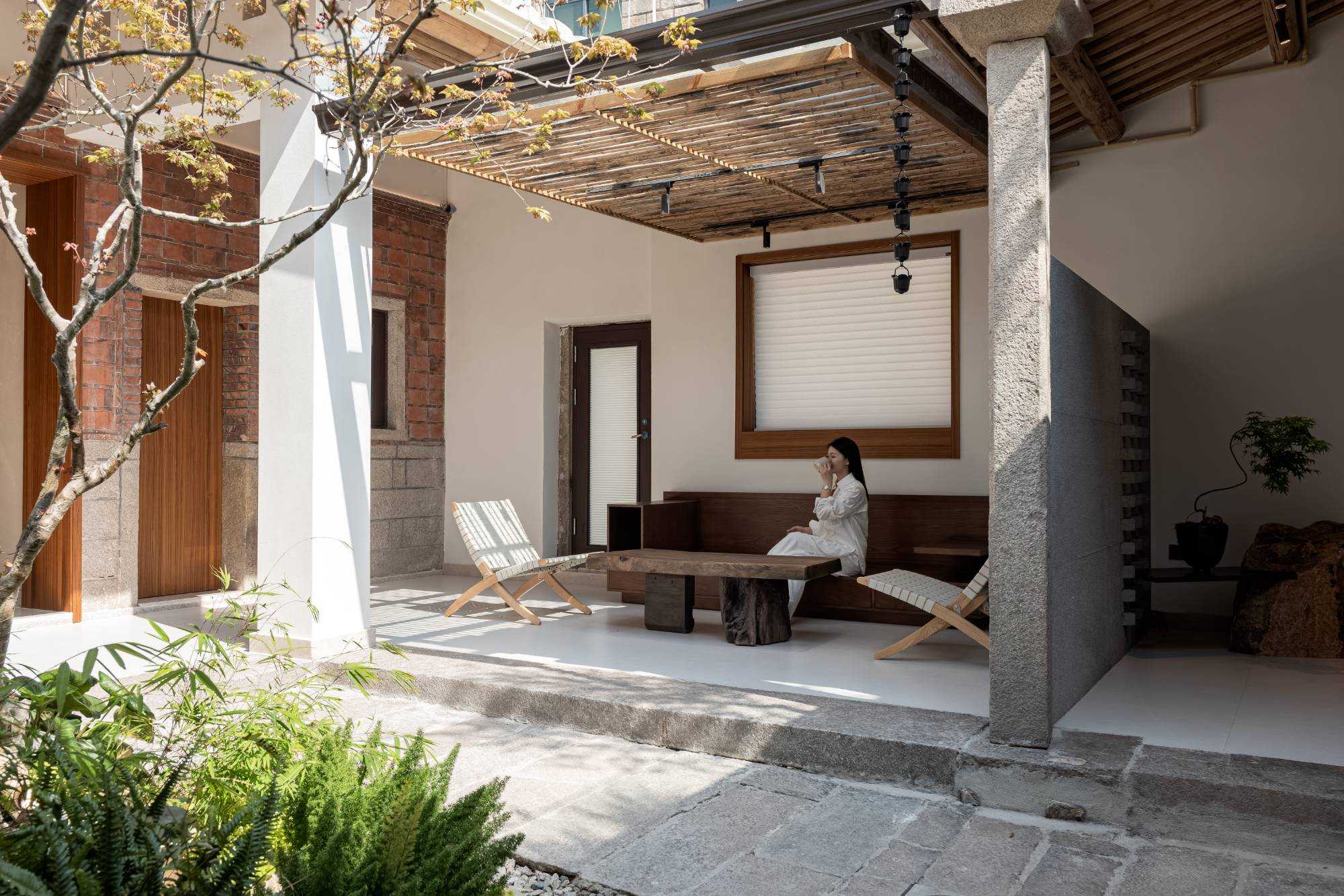 | 于市井烟火中,辟一方清净“无事”之境。融合在地文化肌理与现代舒适需求,打造可居、可游、可思的沉浸式体验空间,让旅人暂离喧嚣,回归本真。保留西街原有闽南建筑韵味,采用质朴木门、局部老砖墙或肌理涂料,悬挂“无事斋”素雅牌匾或灯笼,营造大隐于市的入口印象。进门绿植环绕、青苔盆景或一方老石,配合柔和间接照明,一方精致内庭,引入自然光与绿意,布置青石板、石臼水景、耐阴植物(如竹子、蕨类),营造“不出城廓获林泉之怡”的意境。以“少即是多”为原则,控制房间数量8间,保证私密性与舒适度。设标准间、大床房及3间特色阁楼。 西街无事斋,非为逃离,而是于繁华深处觅得一处沉淀之所。设计以谦逊之姿对话历史街区,以自然之心营造静谧空间,以质朴之美承载舒适体验。旨在为每位驻足者提供一段“身无事、心安然”的珍贵时光,于方寸之间,感受生活的本真与宁静的力量。此处无大事,唯有清风、明月、一盏茶、一夜好眠。 | |||