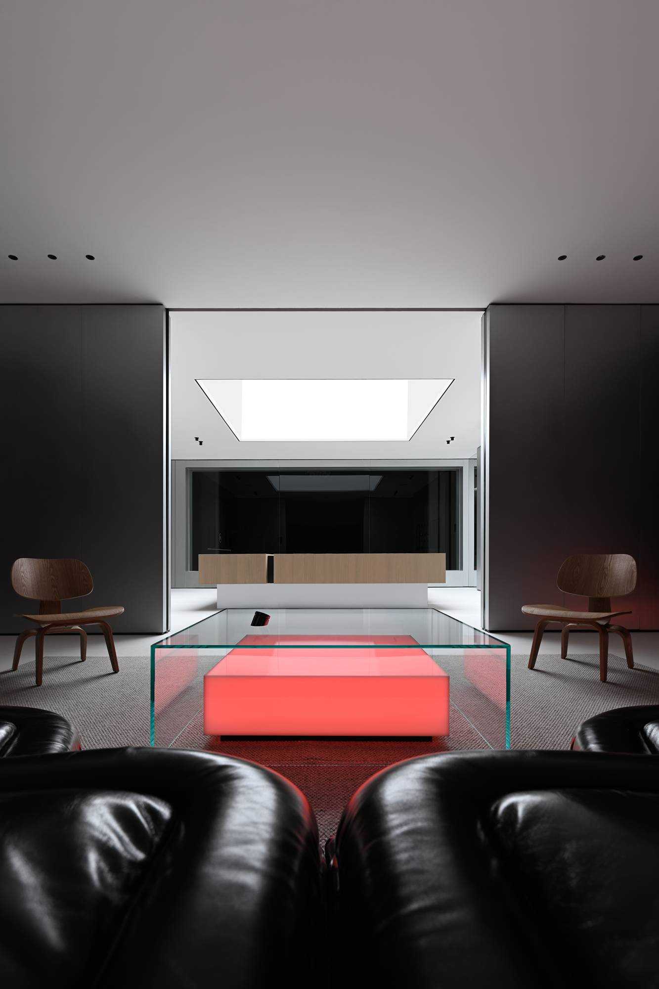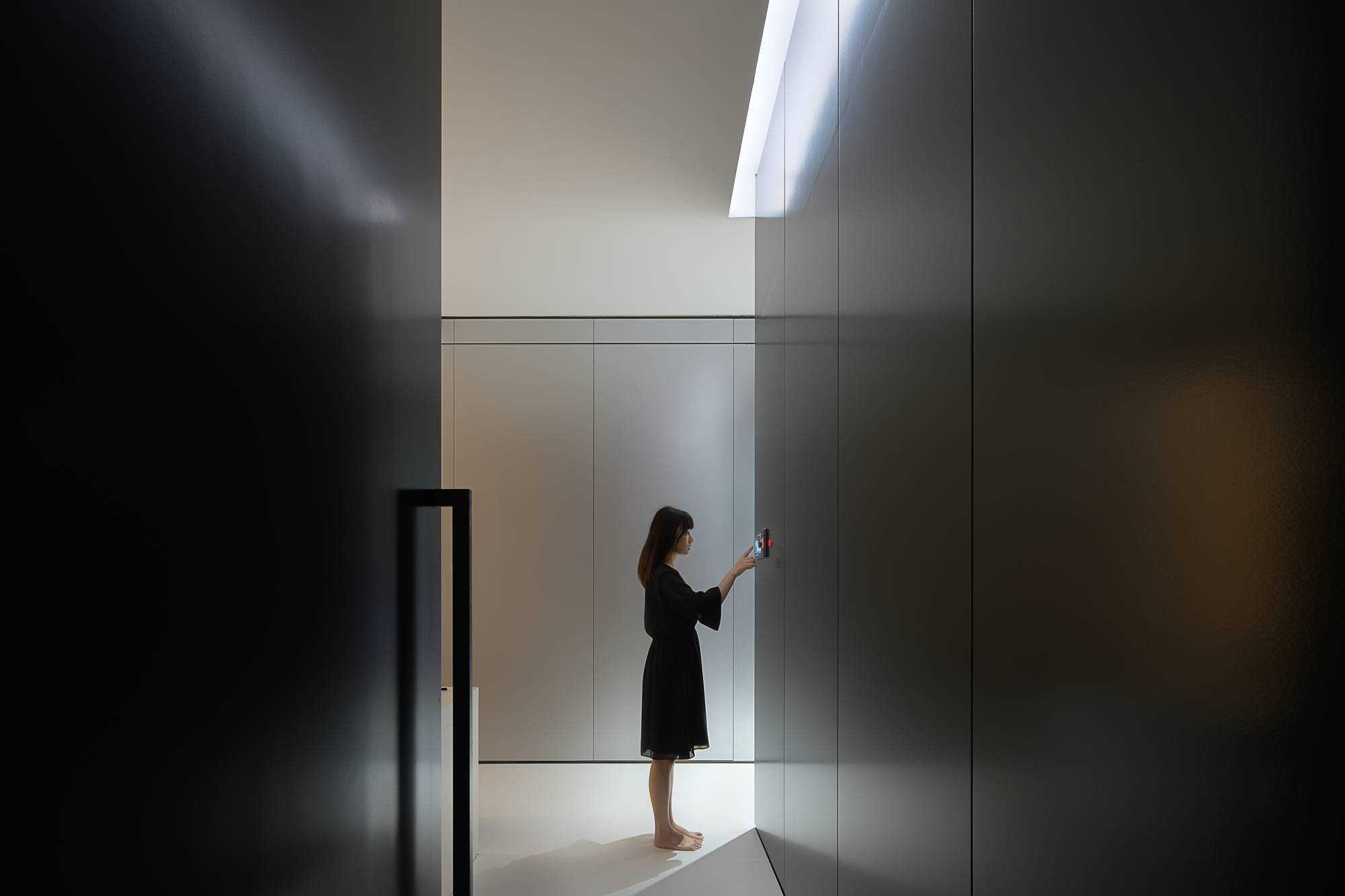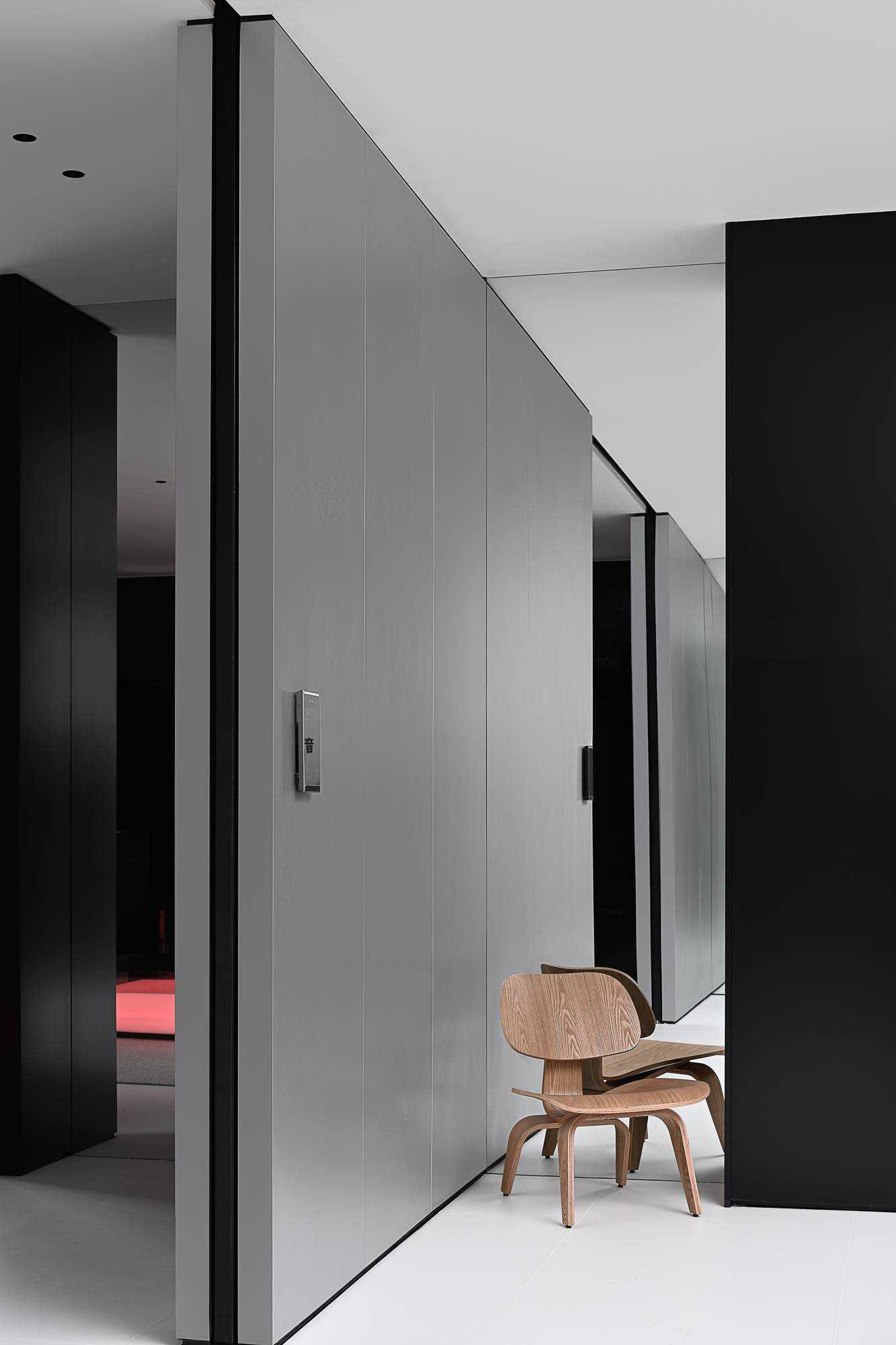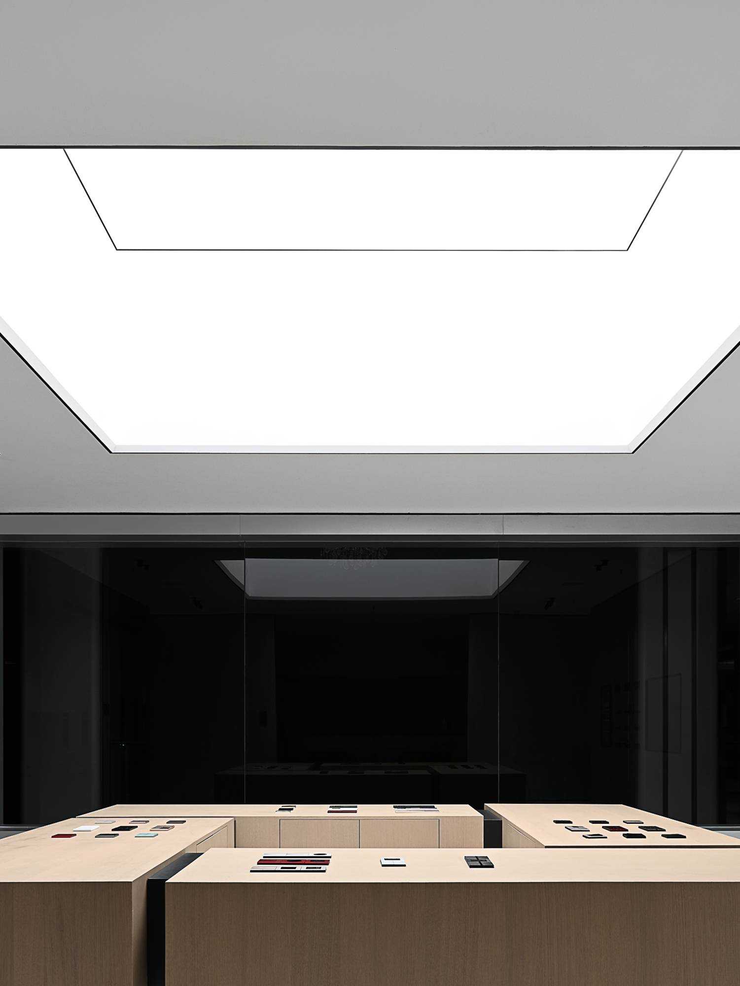 | 本案是集拓智品全屋智能体验馆,项目位于喜盈门(莆田)建材家具广场5F。 展厅由三部分空间区域组成,分别为产品展示体验区,家居智能体验区,接待及办公区。整体以科技元素为主题,通过光的不同建构,表达空间和材料的情绪。 在空间构造上,我们尝试用建筑的手法去表达,通过在空间中构建围合状墙体,将原空间自然分隔出不同的场域。入口的斜墙是一种退让的姿态,也是功能的需求和视觉的引导,墙体的斜切为空间带来了强烈的视觉感官。玄关的墙体起到对办公区的遮挡作用,也承载了封闭影音室的功能需求;通过居中置入的影音空间巧妙地构建出会客区和办公区两个主要的功能空间。 设计希望通过全玻璃幕墙,在较小的展示空间的创造更多的展示面,从展厅外透过玻璃幕墙看进去,就能洞悉整个玻璃盒子中空间的生长,配合渐变效果的灯光系统,让整个展厅仿佛拥有了呼吸和生命。 长桌组织出符合需求的洄游动线,兼顾了实用性美学与自如畅谈的情景。既保障了互动的舒适感,又衍生出了不被强制要求的分序感。讲述空间、质感、情绪的关系,引领人沉浸其中。 展厅智能家居产品体验区,通过智能系统的控制,可实现在不同心境或使用场景下的全屋家居一键联动控制,包括灯光、电视、音箱、投影、窗帘、甚至壁炉等。 纯净无瑕的灯膜顶光,刷新了开敞空间的光感,沿着中轴线望去,唤醒了心中的想象与理想。原木饰面,保留隔断的完整感,结合多元的分区智慧,平衡了收纳空间与展示效果。 休闲区带有灯光效果的玻璃茶几是一个虚幻的载体,它打破了空间的静默,是整个空间中最躁动的存在,既对立而又协调。 通过镜面分割,使得各种区域的交互关系以及独立的意识,构建了灵活又通达的路径,穿梭在空间内,感受灵动的光影层次,满足情趣追求。 在各个空间中,植入不同大小的律动色彩的光膜,让客户在体验游走间完成一场光的演艺。以一团光显现亚克力茶几轮廓,让多层次的“影”辅助光的叙事,令人忘我地起舞。 本案是我们对未来智能家居空间设计的期许和幻想,通过对集拓智品在全屋智能系统的技术展示,包括智能灯光控制的全场景体验,智能窗帘系统的体验,以及智能家庭影院的体验空间,探讨下一代智能居住形式的进化与未来。 | |||