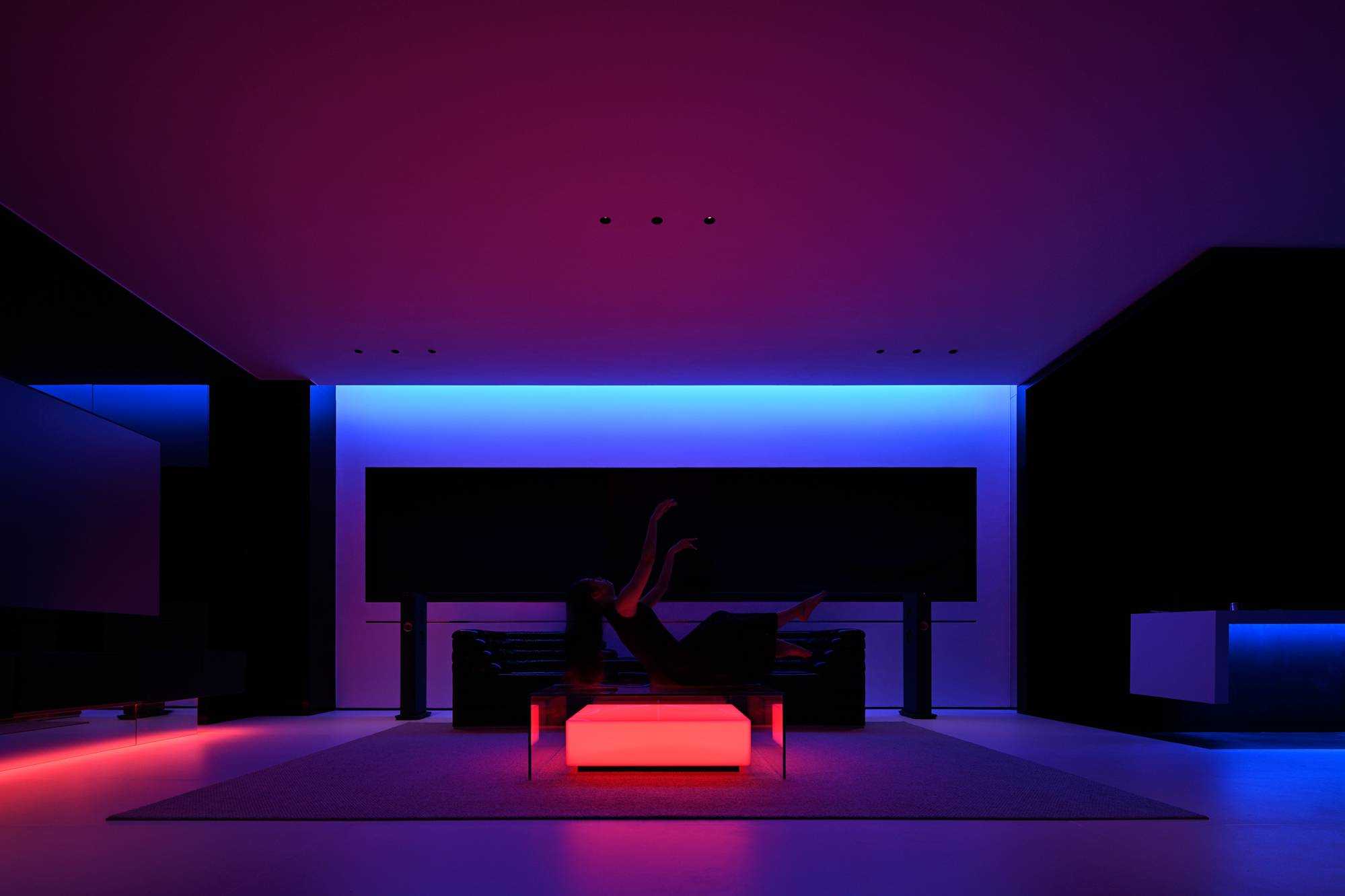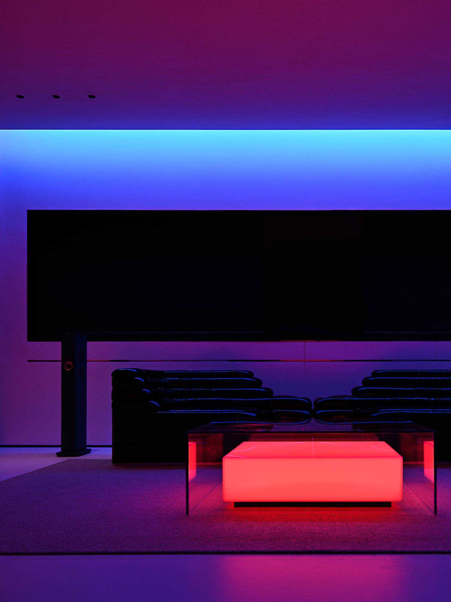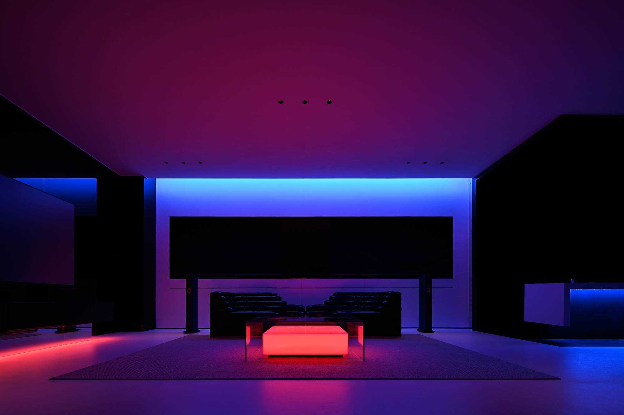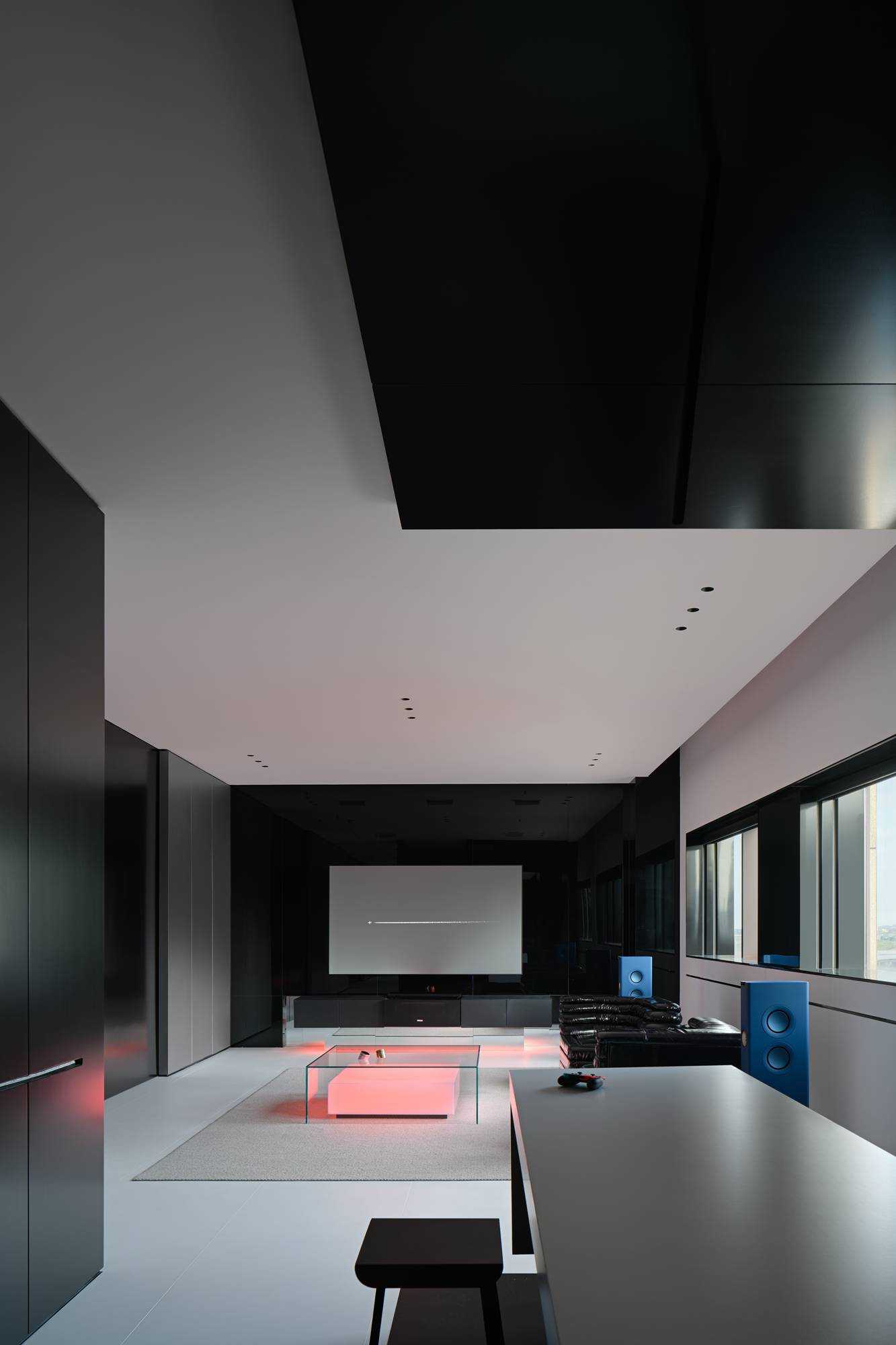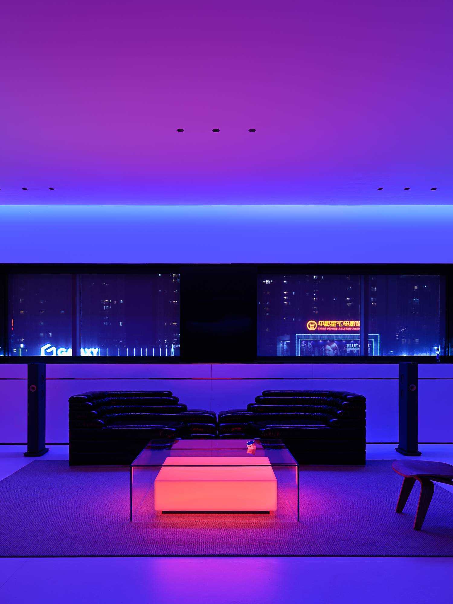 | 本案是集拓智品全屋智能体验馆,项目位于喜盈门(莆田)建材家具广场5F。 展厅由三部分空间区域组成,分别为产品展示体验区,家居智能体验区,接待及办公区。整体以科技元素为主题,通过光的不同建构,表达空间和材料的情绪。 在空间构造上,我们尝试用建筑的手法去表达,通过在空间中构建围合状墙体,将原空间自然分隔出不同的场域。入口的斜墙是一种退让的姿态,也是功能的需求和视觉的引导,墙体的斜切为空间带来了强烈的视觉感官。玄关的墙体起到对办公区的遮挡作用,也承载了封闭影音室的功能需求;通过居中置入的影音空间巧妙地构建出会客区和办公区两个主要的功能空间。 设计希望通过全玻璃幕墙,在较小的展示空间的创造更多的展示面,从展厅外透过玻璃幕墙看进去,就能洞悉整个玻璃盒子中空间的生长,配合渐变效果的灯光系统,让整个展厅仿佛拥有了呼吸和生命。 长桌组织出符合需求的洄游动线,兼顾了实用性美学与自如畅谈的情景。既保障了互动的舒适感,又衍生出了不被强制要求的分序感。讲述空间、质感、情绪的关系,引领人沉浸其中。 展厅智能家居产品体验区,通过智能系统的控制,可实现在不同心境或使用场景下的全屋家居一键联动控制,包括灯光、电视、音箱、投影、窗帘、甚至壁炉等。 纯净无瑕的灯膜顶光,刷新了开敞空间的光感,沿着中轴线望去,唤醒了心中的想象与理想。原木饰面,保留隔断的完整感,结合多元的分区智慧,平衡了收纳空间与展示效果。 休闲区带有灯光效果的玻璃茶几是一个虚幻的载体,它打破了空间的静默,是整个空间中最躁动的存在,既对立而又协调。 通过镜面分割,使得各种区域的交互关系以及独立的意识,构建了灵活又通达的路径,穿梭在空间内,感受灵动的光影层次,满足情趣追求。 在各个空间中,植入不同大小的律动色彩的光膜,让客户在体验游走间完成一场光的演艺。以一团光显现亚克力茶几轮廓,让多层次的“影”辅助光的叙事,令人忘我地起舞。 本案是我们对未来智能家居空间设计的期许和幻想,通过对集拓智品在全屋智能系统的技术展示,包括智能灯光控制的全场景体验,智能窗帘系统的体验,以及智能家庭影院的体验空间,探讨下一代智能居住形式的进化与未来。 | |||