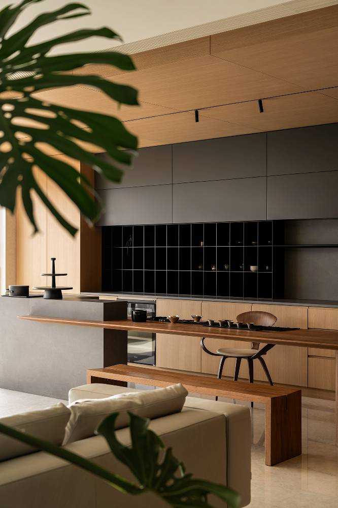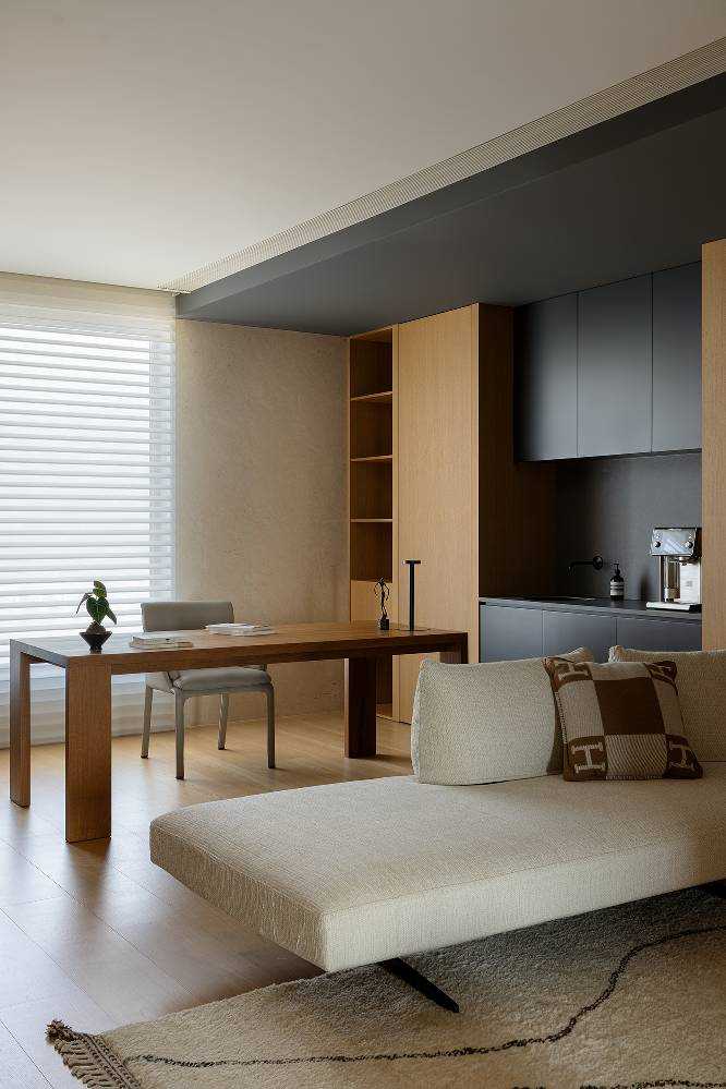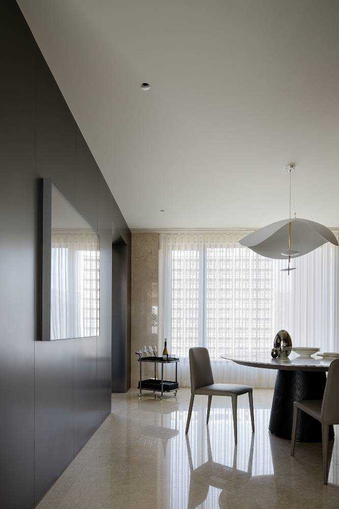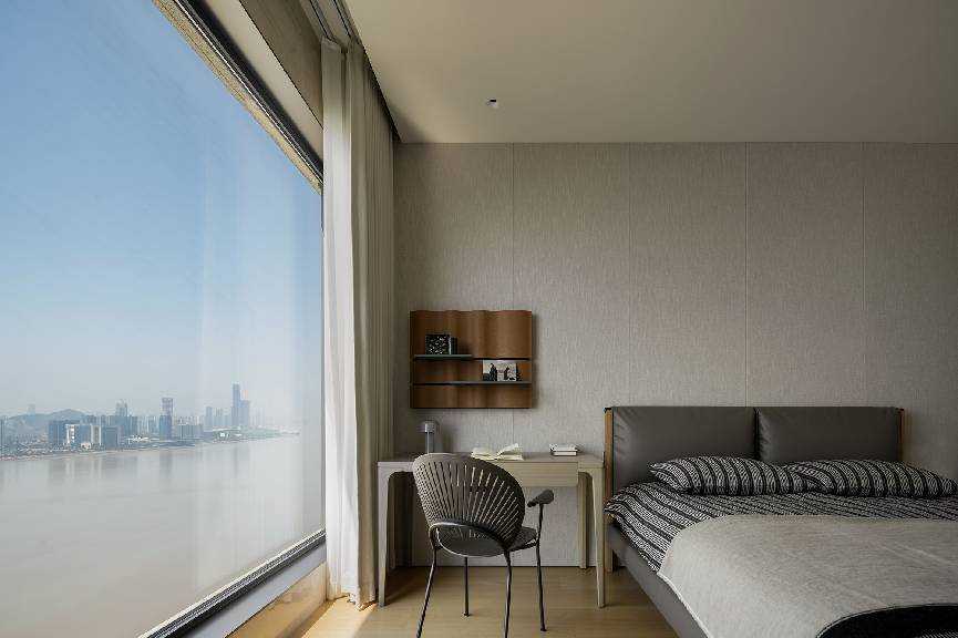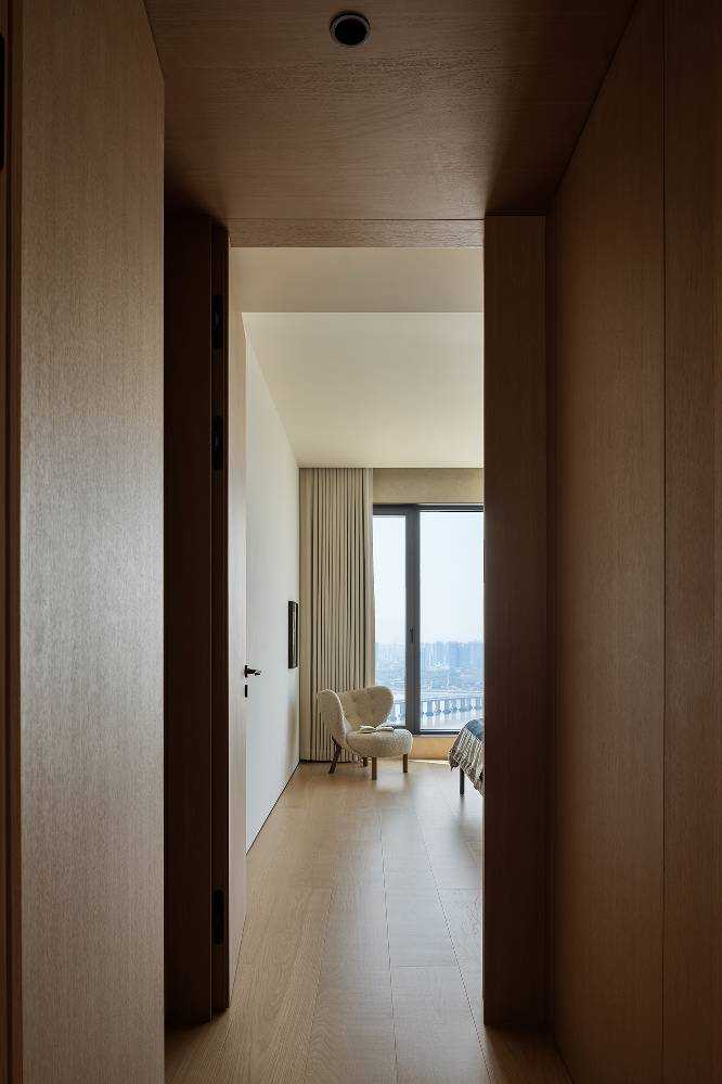 | 人与空间的关系,同样追寻着对外界环境的灵感启发,以此回应内在精神的真挚感受。宽广的视野、和煦的微风、轻柔的阳光,从自然中求索,去溯源万物初开的广阔画卷,静享一份神往。 设计致力打破内外界限,让自然与时间能够真正流入到空间内部,极简之上构建另一层深度的内容,去探讨设计更本质的意义。 本案位于温州瓯江畔,以视野为尺度丈量着身处之地,目之所及,城际与江界线一览无余,无形中拓展域宽。设计希望在构建现代生活方式的基础上,借助材质结构的关系处理,优化具有质感的场景呼应,去获得隐性的情绪与价值回馈,诠释新贵主义的真实内核。 流动的江水映入内部构造,动静协同,进一步顺延了环境与现代栖居的脉络关系。橡木与金属板建构理性关系,木饰面作为清晰的介质,从立面循序铺展至顶面,界定分区范围,暗示隐藏的动线。 空间在横向界面上尽可能采取极大幅度的自由,组织流畅的块面关系和生活动线,依循江景衍生出流动且开阔的布局。沙发摆放以景色为参考主线,配合大面积极窄窗,制造界限的模糊,增强人与环境的觉察力,同时也造就了这个可生长的有机空间。 无论是自由的立面,还是空间的秩序,都保持着局部与整体的克制与平衡。餐厅位于北面,充足的采光聚合了一处独立场域,通过空间材质结构的承转,使得功能空间似个别存在的,游离穿梭互不影响。 玻璃、金属、橡木、岩板共同搭建起结构与细致的材质工艺,不仅仅彰显着外在的表现形式,同步深化了空间内在的肌理质感。引光穿透电梯井,深度考量界面的视角、层级的高度以及生活的轨迹,打破固化空间的物理容器,引导整个三层结构体主动参与到生活方式与居住品质的优化中。 二层起居室延续了公共区的主旨,作为家庭成员私密且共享的空间,牵引人与人慢慢靠近、亲密,同时确保每个空间都能与江景素面相迎。 雅黑饰面构成主卧整体框架,适度削弱了光线的反射,使光感不过分明亮,创造出清静淡然的氛围。无过多繁杂修饰,着重考量环境本身的存在感,留存自然的温度。 低纯度的肌理描摹着空间骨架,灰色作底,回归理性的叙事方式。房间入门正对窗景,每一次开门都能深受广阔江景的感官回馈,释放无限的空间感与自由度。 南北纵横,穿梭于顺畅的动线,紧密贴合居住者日常习惯。辅以高饱和度的柔和感,细节中丰盈一抹腔调,为这处私人领域增加更真实的温度。 三层露台搭建休闲、健身、影音室等功能区,打造活动社交属性。区块之间通过隔断划分尺度,同时保障整体空间的内循环动线,在四通无碍的格局中极具“呼吸感”,随性自在,张弛有度。 落日余晖向室内铺展,落入一层浓郁质感的金色笼罩。至此,自然的变化与内部场景完成了呼应,清晰且同步地共享着同一个时空,而室内空间也不再只是单一封闭的形态。每一处转角、每一寸活动,都在呼应着这场无形的生命流动,创造一个游目骋怀的现代都市生活环境,回馈当代栖居真正的稀缺与价值。 | |||