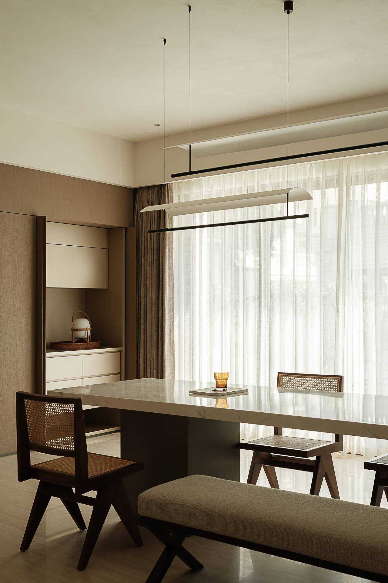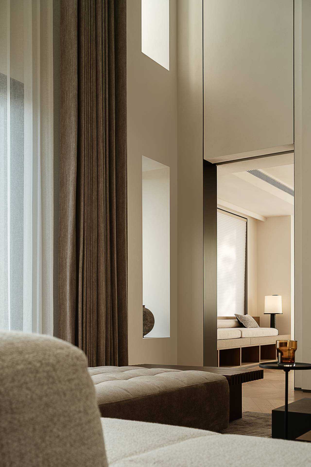 | 设计, 源于对生活本质的洞察。 我们摒弃浮华表象, 专注构筑与灵魂共鸣的居所。 01 置身世外 强调简洁、纯粹和理性的设计形式,去除华丽的装饰,以展现材料和技术本身的美感。突出的悬挑方框阳台,打造一种漂浮感,站在这里,仿佛可以抛开一切,沉浸式的享受外界的气息。整个外立面的设计不仅体现了造型与审美,更展示了对材料的强度和结构力学的深入理解。锋利如刀的线条,剔除冗余装饰,通过精确的体块切割展现材料本质美感。在保持功能性的同时体现了未来主义的外观,并强调了光与影的雕塑感。 02 自然与宁静 干净利落的空间构建,艺术的光影交相,承载着对自然的追求。客厅利用挑高设计将空间格局打开。直线简洁有力,向上延伸整体视觉空间,采用不同材质平滑过度空间板块之间的连接。大片玻璃立面引入更多自然光,使得整个空间跟随时光流逝呈现出不同的光影故事。 一张复古绿的低矮皮革单人沙发,为空间增加自然的慵懒感,营造复古优雅的生活氛围,独自坐着这里,望向窗外,独享悠然惬意。 时间是对设计最好的证明,设计师在其设计的空间蕴藏着对时间流逝的思考,对光线的把握,珍惜每一寸光阴。 以悬浮结构解构空间边界——上部墙体切割私密领域,底部挑空自然引入气流与自然光晕,形成通透的呼吸感。黄铜元素突破性地贯穿空间界面,整面金属肌理板块仿佛穿墙而出,既装饰了空间,又与待客区的黄铜线性隔断构成虚实共振,产生空间上的联动。转角之间让人眼前一亮。当夜幕降临,暖黄的灯光在氧化铜表面折射出琥珀色光斑,粗犷金属与哑光水泥在明暗交织中,重构了现代极简的温度叙事。 03 艺术为媒 以艺术本身作为媒介,传递对艺术与生活的共鸣。空间属性上实现艺术展览与社交休闲的双重功能解构,通过非对称性空间叙事手法,将策展动线与社交脉络进行有机编织。地下一层连接花园庭院,在布局设计上更为开放,舍去不必要的墙面与门框的限制。大面积通透的玻璃将自然光线铺满整个空间,在视觉上更为开阔通透。在艺术展览区引入天光,打造自然艺术光线氛围。在简约基调中营造出富有温度的艺术场域,感受艺术与日常的诗意共鸣。 04 回归本质 设计的目的是为了满足人们的基本需求,同时追求形式与功能的和谐统一。业主是一位很有生活理念和生活品味的人,热爱音乐,追求艺术,对空间设计有非常明确的功能需求,希望将整个顶层空间打造为个人专属空间。整体采用现代自然主义风格,米白色肌理配以天然木质元素,设计师通过木质栅格的光影游戏,营造出温暖而富有层次的光环境,让“家”的温馨质感自然流淌。 设计师从乐器中汲取灵感,以非对称曲线层板重构天花形态,为空间注入柔美与流动的艺术气息。既满足业主对开阔空间的需求,又巧妙融入其艺术人格。定制化设计元素更赋予空间独特的归属感,让功能与美学达成完美平衡。 | |||