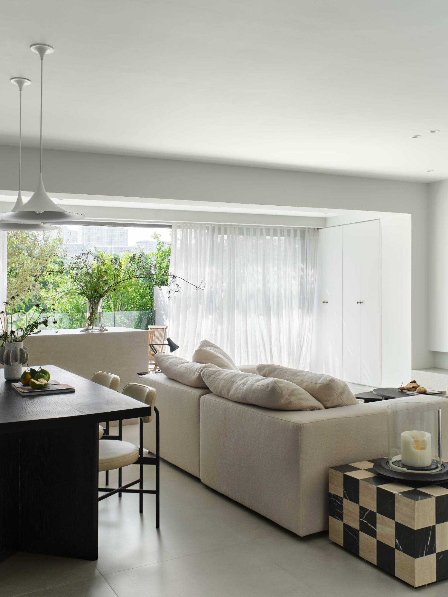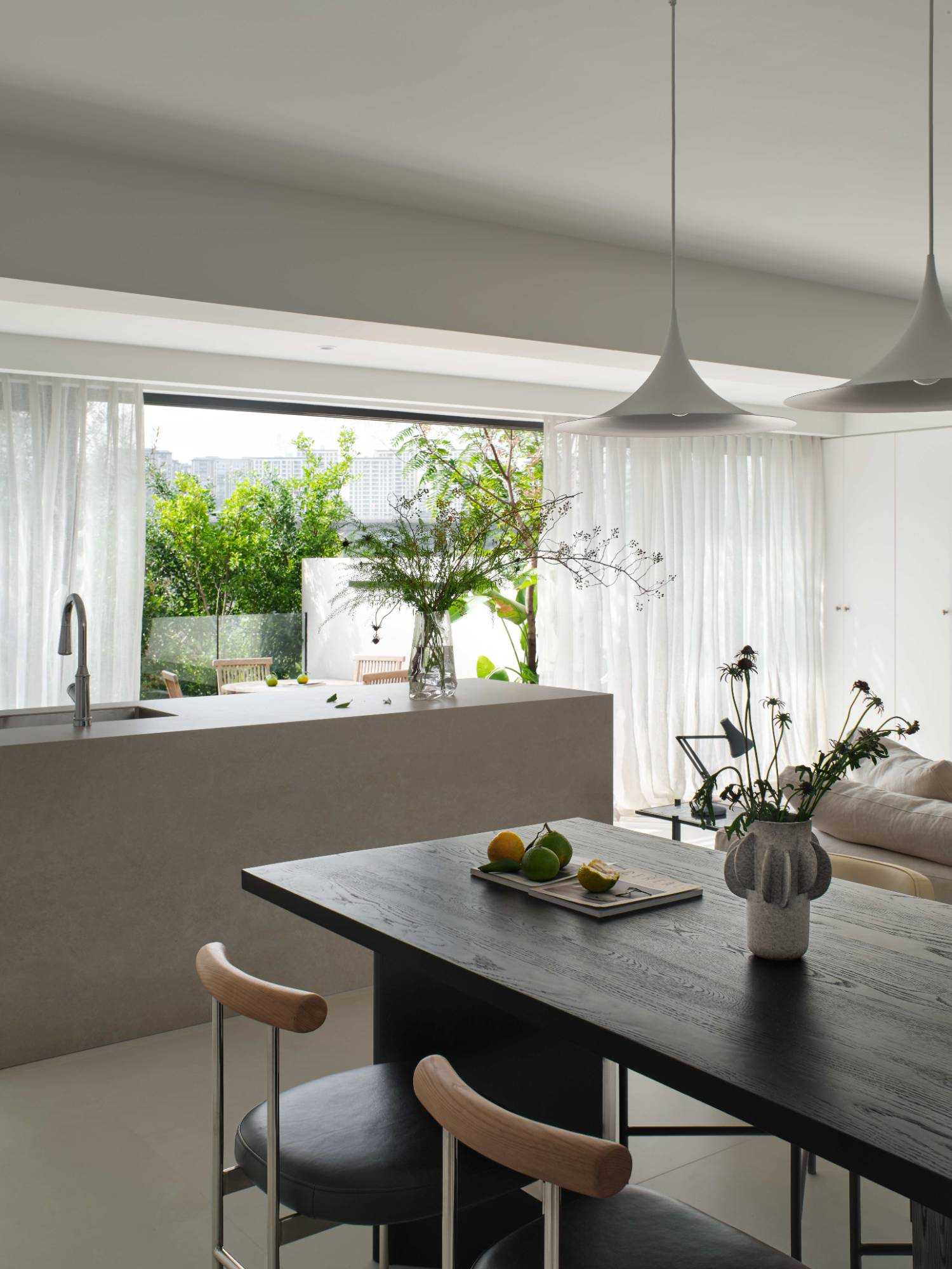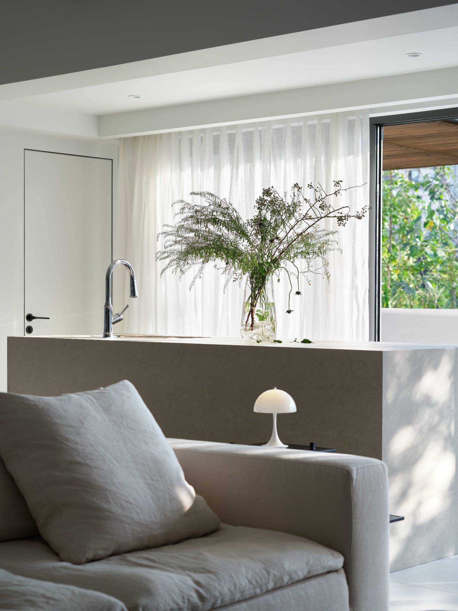 | 1.这套房子原户型布局常规,各个空间相互分离,人行走在空间里动线不便利,动线不舒适,入户大门在传统的电梯门口,因为没有地下车库对屋主来说电梯完全没有使用,电梯的出口恰恰对着原入户大门对屋主形成了干扰和私密性问题。综合考虑把入户大门改在前花园次卧空间。这样入户庭院、入户门厅、鞋帽区、洗手区、储物间,功能性依次排序,也保证了私密性,从而让生活更有仪式感。 屋主从庭院车库进入家门,透过厨房玻璃能看见家内的光影变化。 2.每一处角落,精心布置了绿植,从入户到休闲厅,再到餐厨,每一片绿景都像是大自然的使者,让室内充满生机。屋外的庭院与远处的树景相互呼应,延续了自然的韵律,打造出一个四季分明的生态小天地。不仅是居住的地方,更是放松心灵、重拾活力的场所。 3.房原本是常规高滑窗,经现场勘测结合窗外,考虑了屋主住家的私密性,备餐时的视觉体验,决定拆了压低窗高,做成一条扁长的条窗,窗外种满“绿树”。 这样不仅保障了屋主平时居家时在客厅走动的私密性,厨房窗外看去满是绿植环抱。 | |||