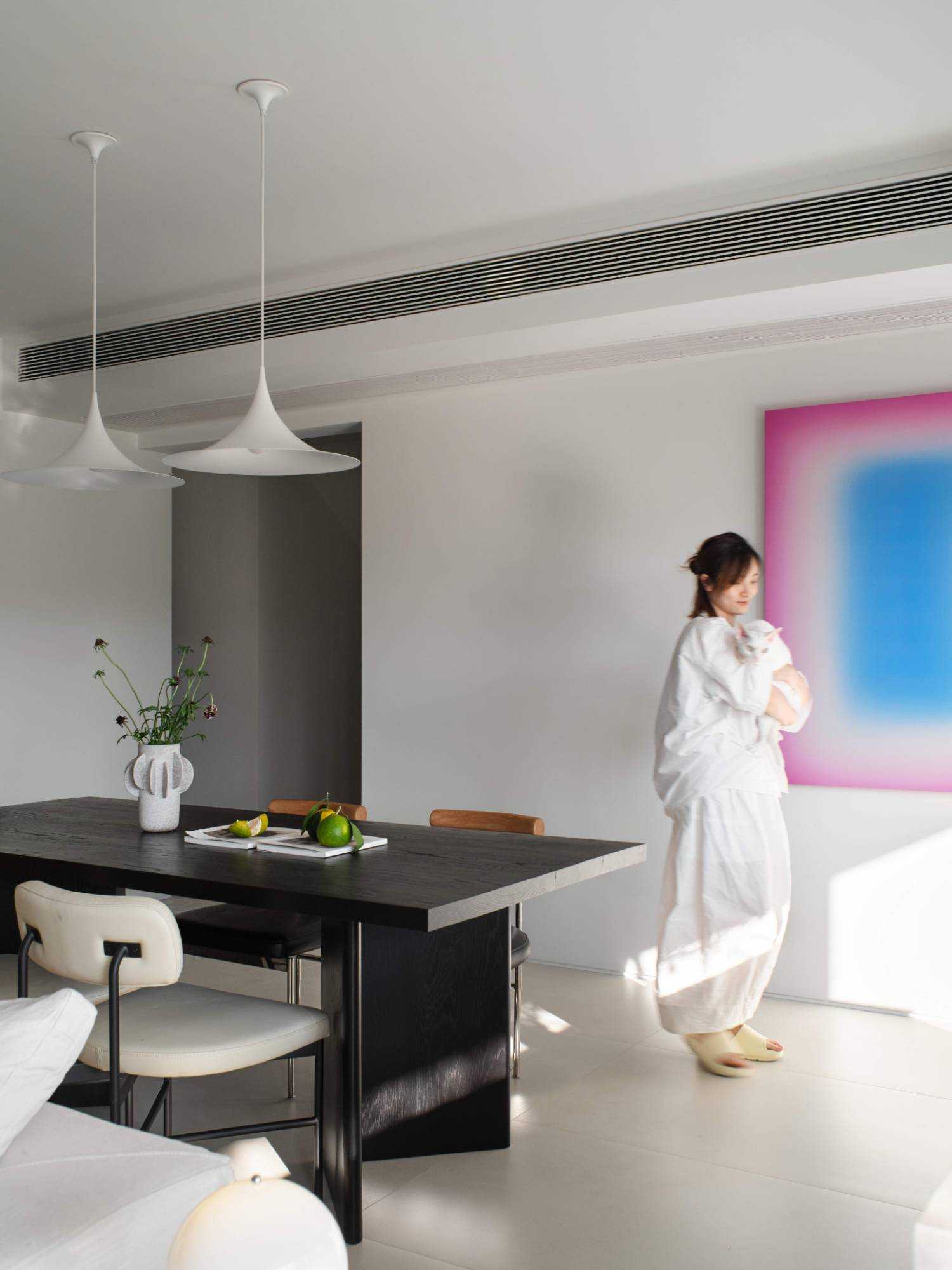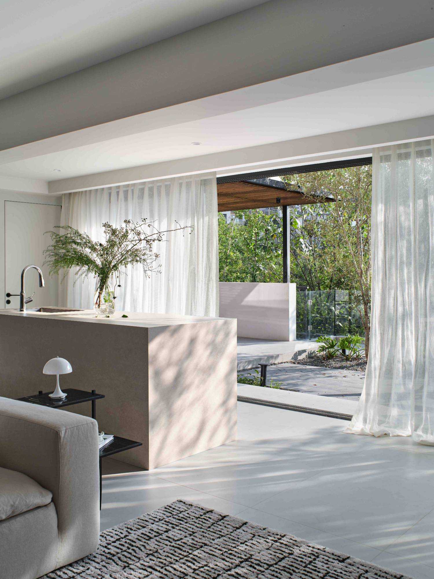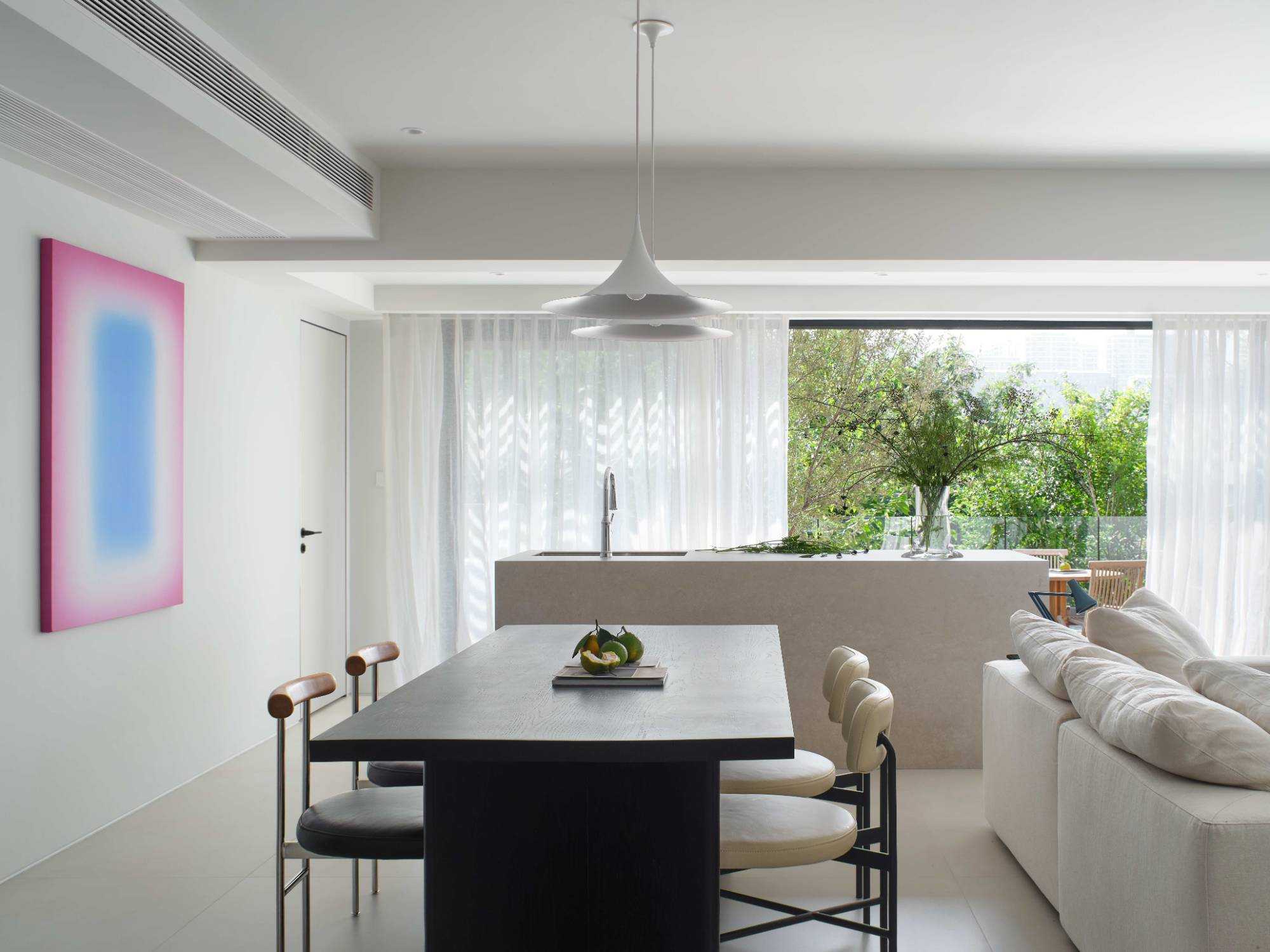 | 1.这套房子原户型布局常规,各个空间相互分离,人行走在空间里动线不便利,动线不舒适,入户大门在传统的电梯门口,因为没有地下车库对屋主来说电梯完全没有使用,电梯的出口恰恰对着原入户大门对屋主形成了干扰和私密性问题。综合考虑把入户大门改在前花园次卧空间。这样入户庭院、入户门厅、鞋帽区、洗手区、储物间,功能性依次排序,也保证了私密性,从而让生活更有仪式感。 屋主从庭院车库进入家门,透过厨房玻璃能看见家内的光影变化。 2.每一处角落,精心布置了绿植,从入户到休闲厅,再到餐厨,每一片绿景都像是大自然的使者,让室内充满生机。屋外的庭院与远处的树景相互呼应,延续了自然的韵律,打造出一个四季分明的生态小天地。不仅是居住的地方,更是放松心灵、重拾活力的场所。 3.房原本是常规高滑窗,经现场勘测结合窗外,考虑了屋主住家的私密性,备餐时的视觉体验,决定拆了压低窗高,做成一条扁长的条窗,窗外种满“绿树”。 这样不仅保障了屋主平时居家时在客厅走动的私密性,厨房窗外看去满是绿植环抱。 | |||