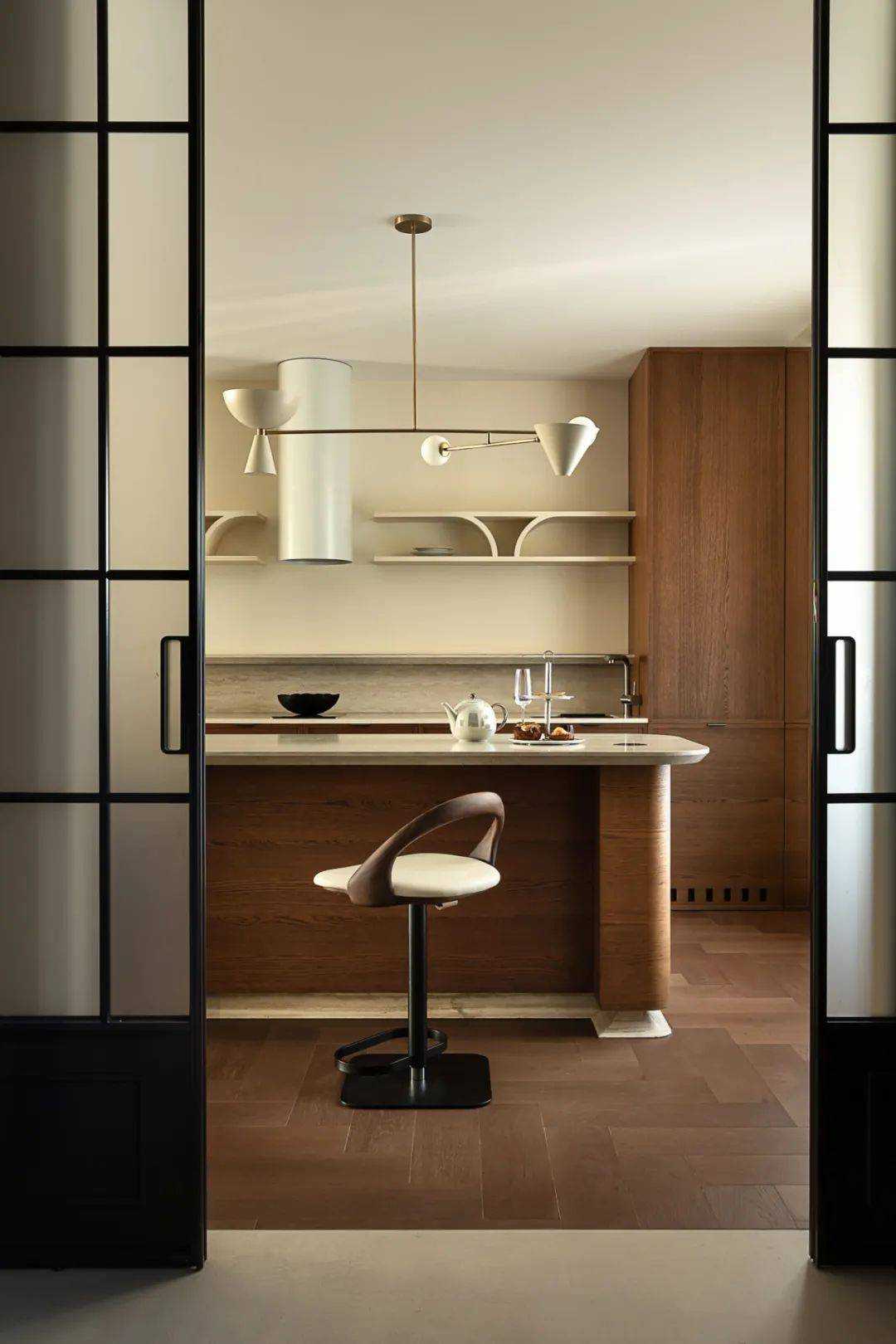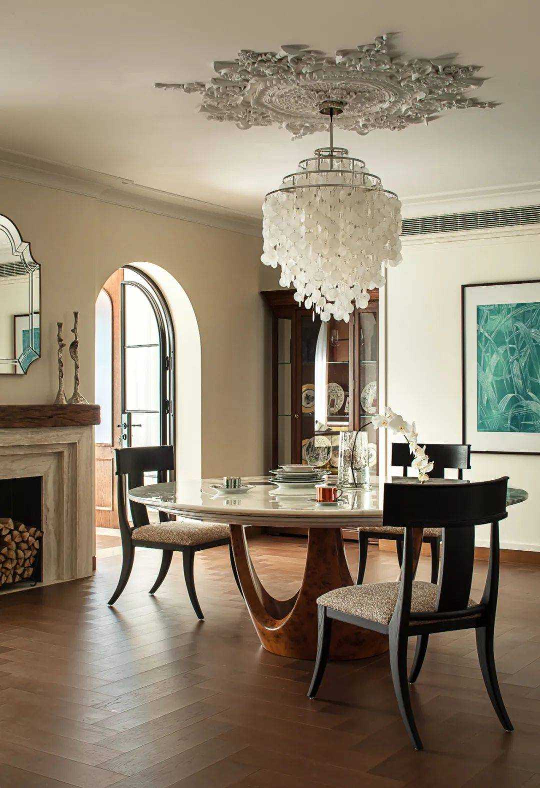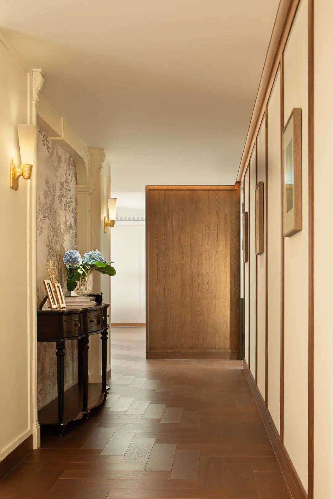 | 焕新的时代语境 在快节奏的现代都市语境下,我们将探究的目光落于现实主义生活本身,又纳入回归式的情境思考方向,希望家宅空间在经久的使用中,保持着常住常新的魅力,也为业主喜欢的法式风格,减去厚重冗余的线条,置入现代式审美意趣。 客厅空间作为场景予人的最直观印象,定调现代复古主义设计基调,以简约平直的现代感线条与纯白的墙面漆色彩展露明晰清爽的空间底色,而繁复的复古元素设计被隐匿于视线的边角,从灯光后方透出的结构式线条,如交错的藤蔓随光影悄然生长,座椅后方的复古风格装饰画应和着茶几上的绿植,如花在野。设计在当下审美方向的前提下,提供具有人文气息与经得起时间沉淀的视觉体验。 两向入口,结构重生 设计东西两向入口,东向作为主入口通过过道链接客餐厅空间,形成两大功能分区,成为贯通场景间的必经之路,为动线脉络提供最优的解决方案。 而此处作为空间初印象,设置集中的法式复古元素强调空间的整体风格特点。 璀璨的灯饰如引领的灯火,在过道的尽头揭示此行的目的地,迎合国人习惯的圆桌作为中厨空间的主角,将视线归集。 西厨吧台与烹饪空间藏身于移门后方,形成家人日常更为频繁使用的便捷就餐场景,在亲友来访时,敞开式结构亦能满足更复杂的场景需求,承载部分会客功能,衍生出场景间的串联与辅助关系。 文艺复兴的空间诗学 以深邃的墨绿铺陈基底,石膏线条勾勒优雅的立体轮廓,书房空间以更为浓厚的文艺复兴色彩呈现优雅且深厚的空间诗学。 功能与审美的有机结合 寝居空间的色彩选择更为克制,纯白搭配零星的木元素,仅以墙面出现的石膏线回应空间的主题,确保空间叙事的整体性与流畅性。在功能性的考量中,在卧室空间置入多重功能关系,通过沙发与电视的组合,延展空间的使用状态,打造更温情的生活场景。 同时,将电竞房设置于主卧套间内,电视背景墙后方,形成与主卧空间互不打扰又贯通联结的状态,在不同的时间满足夫妻双方交流与独处的双重需求。 设计希望空间不仅仅是作为居住场景那样简单的存在,而是在经年的使用中,不断吸纳居住者的习惯与情绪,成为一个具有反哺作用的载体,在需要的时候,为生活提供情感的支撑。 而此刻,华灯初上,影影瞳瞳的光将枝叶的纹理打散,生活就是这样,日复一日,看似寻常,而其走过的痕迹早已浸润在家的边角缝隙,拾起来又是一番纸短情长。 | |||