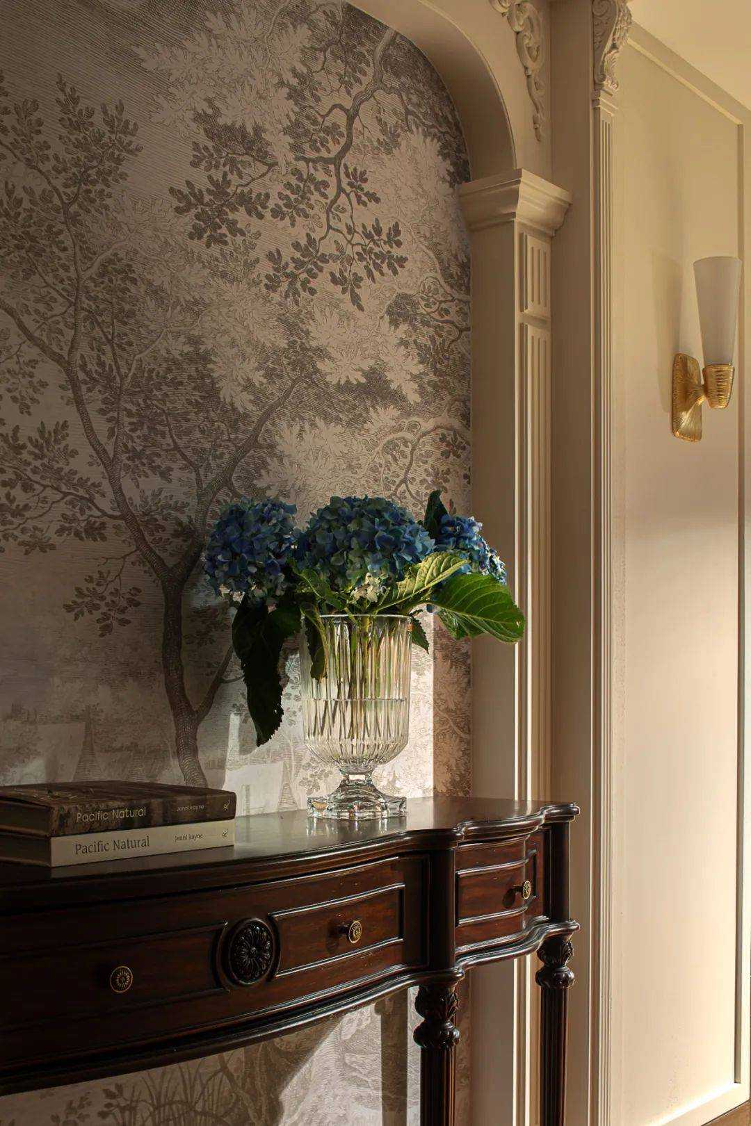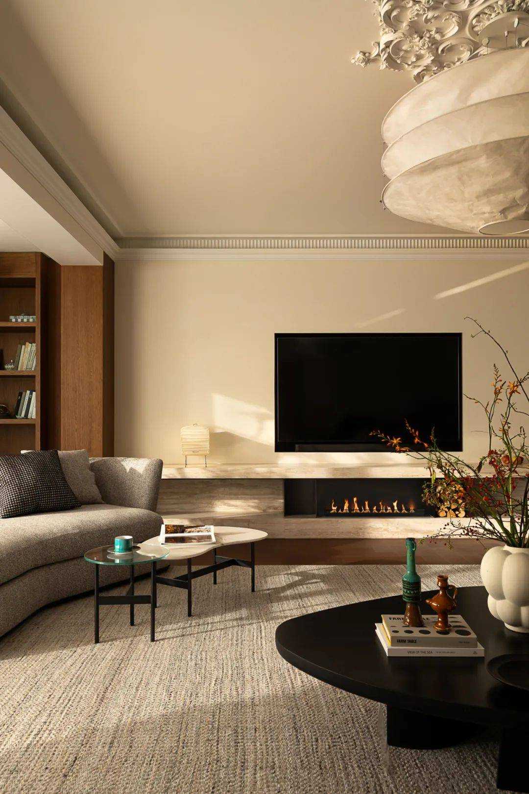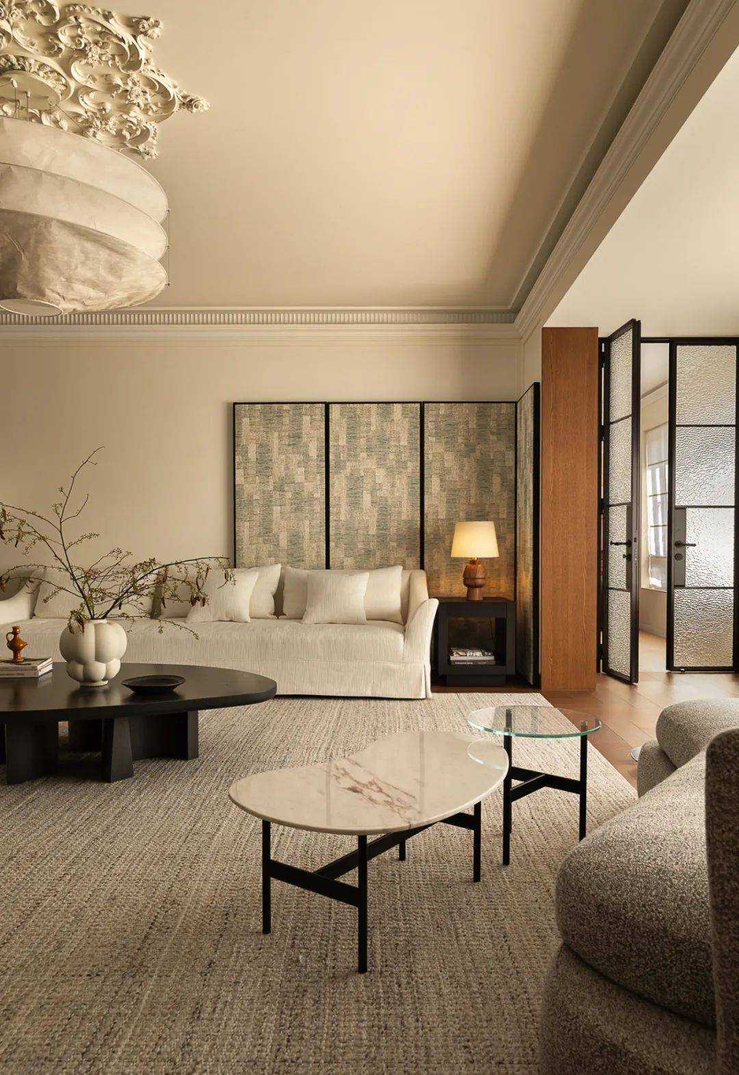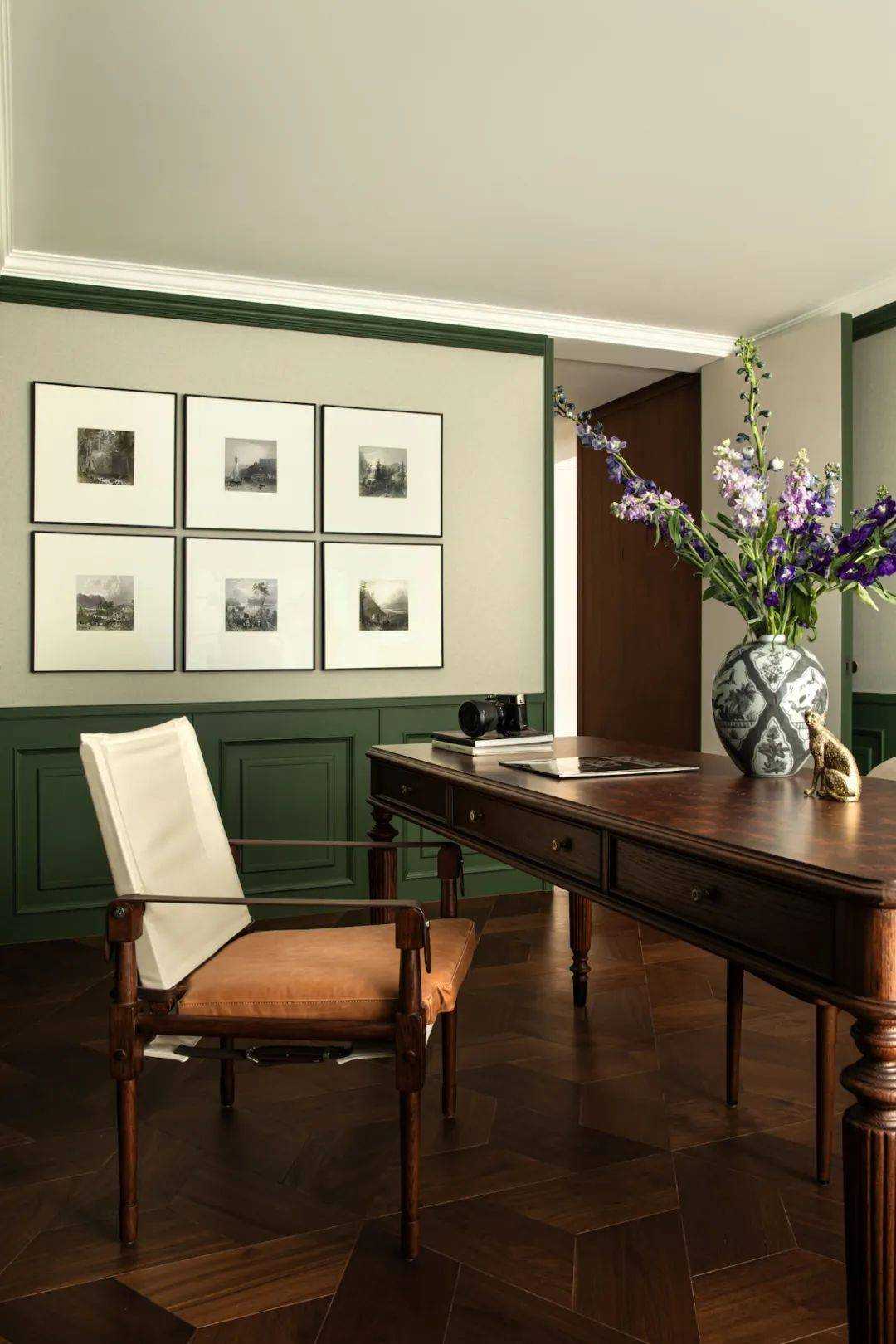 | 焕新的时代语境 在快节奏的现代都市语境下,我们将探究的目光落于现实主义生活本身,又纳入回归式的情境思考方向,希望家宅空间在经久的使用中,保持着常住常新的魅力,也为业主喜欢的法式风格,减去厚重冗余的线条,置入现代式审美意趣。 客厅空间作为场景予人的最直观印象,定调现代复古主义设计基调,以简约平直的现代感线条与纯白的墙面漆色彩展露明晰清爽的空间底色,而繁复的复古元素设计被隐匿于视线的边角,从灯光后方透出的结构式线条,如交错的藤蔓随光影悄然生长,座椅后方的复古风格装饰画应和着茶几上的绿植,如花在野。设计在当下审美方向的前提下,提供具有人文气息与经得起时间沉淀的视觉体验。 两向入口,结构重生 设计东西两向入口,东向作为主入口通过过道链接客餐厅空间,形成两大功能分区,成为贯通场景间的必经之路,为动线脉络提供最优的解决方案。 而此处作为空间初印象,设置集中的法式复古元素强调空间的整体风格特点。 璀璨的灯饰如引领的灯火,在过道的尽头揭示此行的目的地,迎合国人习惯的圆桌作为中厨空间的主角,将视线归集。 西厨吧台与烹饪空间藏身于移门后方,形成家人日常更为频繁使用的便捷就餐场景,在亲友来访时,敞开式结构亦能满足更复杂的场景需求,承载部分会客功能,衍生出场景间的串联与辅助关系。 文艺复兴的空间诗学 以深邃的墨绿铺陈基底,石膏线条勾勒优雅的立体轮廓,书房空间以更为浓厚的文艺复兴色彩呈现优雅且深厚的空间诗学。 功能与审美的有机结合 寝居空间的色彩选择更为克制,纯白搭配零星的木元素,仅以墙面出现的石膏线回应空间的主题,确保空间叙事的整体性与流畅性。在功能性的考量中,在卧室空间置入多重功能关系,通过沙发与电视的组合,延展空间的使用状态,打造更温情的生活场景。 同时,将电竞房设置于主卧套间内,电视背景墙后方,形成与主卧空间互不打扰又贯通联结的状态,在不同的时间满足夫妻双方交流与独处的双重需求。 设计希望空间不仅仅是作为居住场景那样简单的存在,而是在经年的使用中,不断吸纳居住者的习惯与情绪,成为一个具有反哺作用的载体,在需要的时候,为生活提供情感的支撑。 而此刻,华灯初上,影影瞳瞳的光将枝叶的纹理打散,生活就是这样,日复一日,看似寻常,而其走过的痕迹早已浸润在家的边角缝隙,拾起来又是一番纸短情长。 | |||