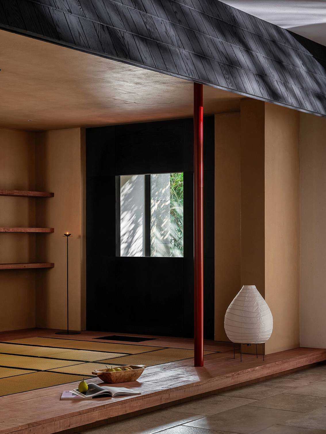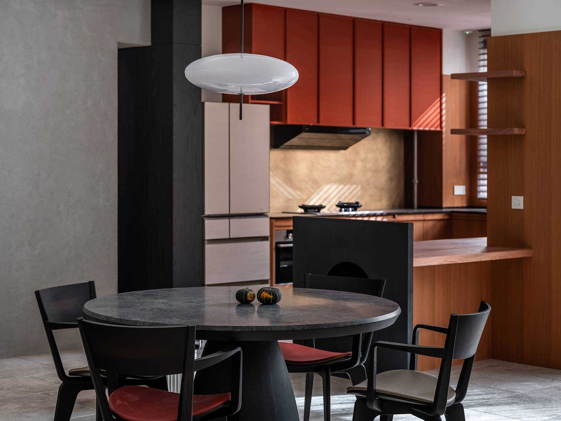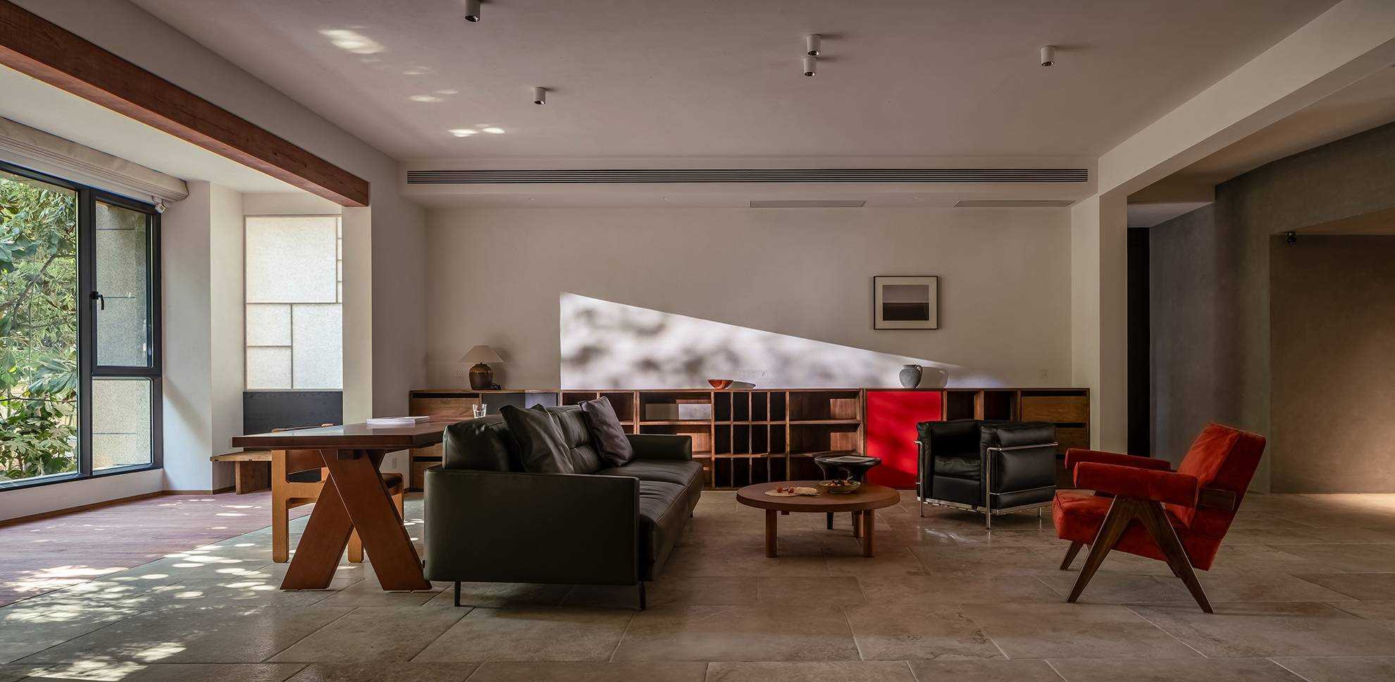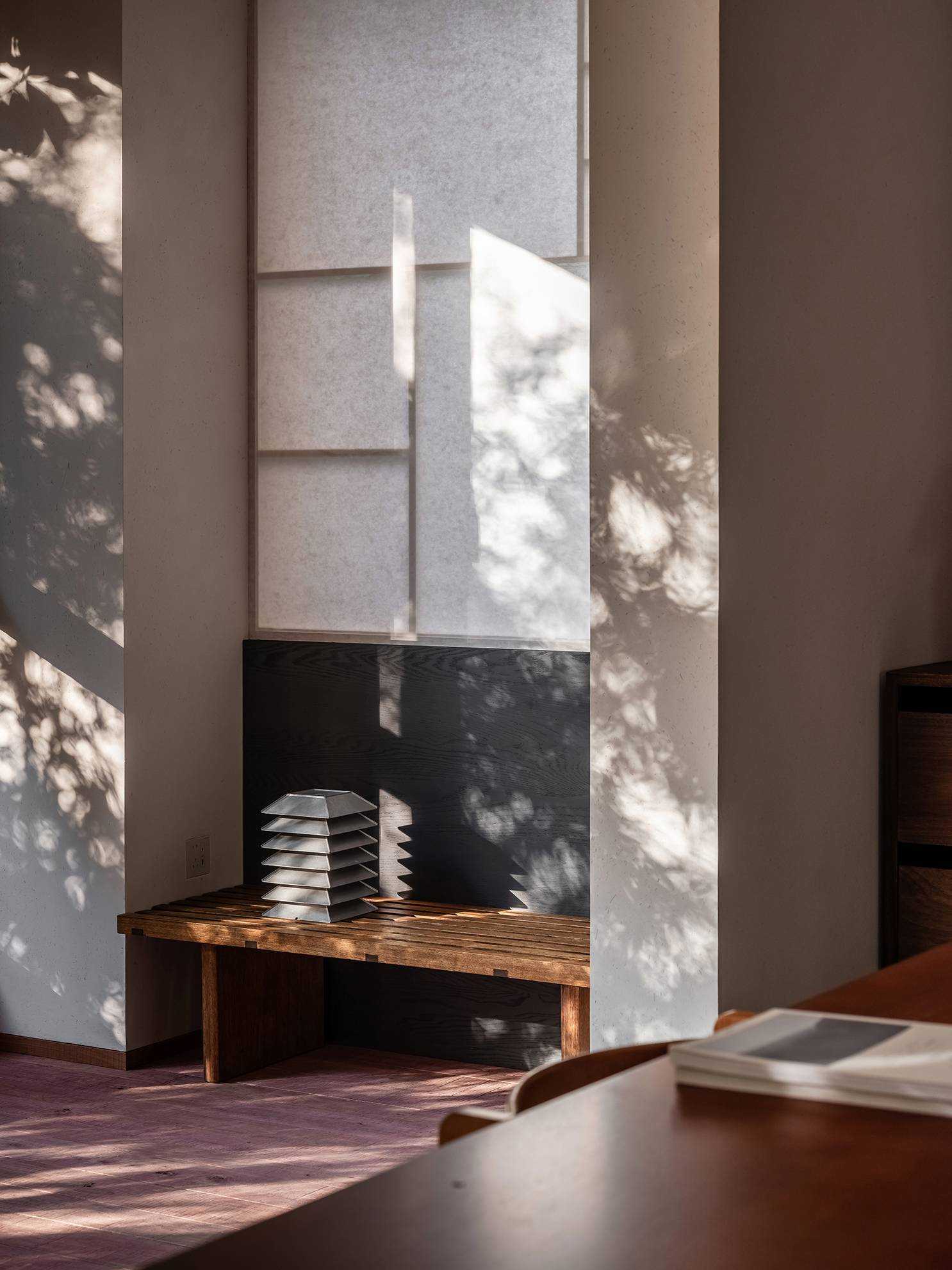 | 本案是一个位于西安曲江池畔的旧房翻新项目。空间设计以探讨现代住宅文化中的自然与人文关系为出发点,将感知体验与禅理佛道的意境相结合,洞悉空间感知之道。 住宅的原始空间划分较为琐碎,且位于一层,采光条件不佳,因此,我们在结构上进行了多处的拆改和优化,显著提升了空间的通透性和流动性。平面规划的重点在于不同功能区域在同一空间中的融合与独立,营造出一个即开放又具层次感的生活场域。 入口玄关区是作为整个空间的过渡区域,我们取消了原始结构中紧邻入口的客卫,并将其改造为一个独特的通过体验区。使归家的过程仿佛从石洞中穿行,用空间尺度的克制表达出独特的通过体验,在行进中完成由外至内的情绪转换,最终抵达豁然开朗的起居区域。 进入客厅,对称的布局模式使备靠阳台的沙发休闲区成为空间的核心,将空间自然分解为自由环绕的流动格局。传统的电视墙被取消,取而代之的是一排实木书架,赋予空间更多的文化氛围与功能性。 竹影解构光线,越过边界去探索未知。木与石的肌理重组阴影,温柔的抵抗着平庸与光滑。剥离脆弱的装饰性外壳,露出自然的纯粹感悟时间。 原始结构中的书房被改造成禅修室,为信佛的业主提供了一个在家修行的静谧空间。禅修室的南侧设计了取景框式的造型,将阳台外的竹景引入室内,营造出一种宁静而深远的氛围。 餐厅区域混凝土浇筑的洗手池与禅室空间可移动的和纸窗扇均在现场完成,厨房空间的部分实木橱柜与阳台区域的木地板均为关中地区的老榆木再加工完成,搭配扎染的布帘与木门上铜版也是为了重现那份温暖与熟悉。烹饪区前侧的铜版更是“时间的记录着”,每一次烹饪,蒸汽与油脂都会在铜版上留下痕迹,时间将会把它变得斑驳和富有质感。 作为空间中的线形雕塑,做旧钢管以锈蚀的痕迹在混凝土水池表面书写时间。 卧室是我们栖居时间最久的空间,我们的策略是保持适度的退让,床头区域未做过多的造型处理,希望通过留白来保持空间的包容性和宁静感,同时确保足够的舒适度。 本案整体设计侧重对人与空间对自然的感知,并理性的融入禅意,以现代生活方式的语言呈现出素雅并富有生机的东方美学。 | |||