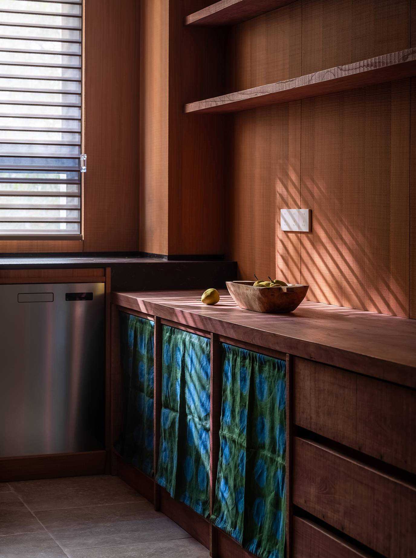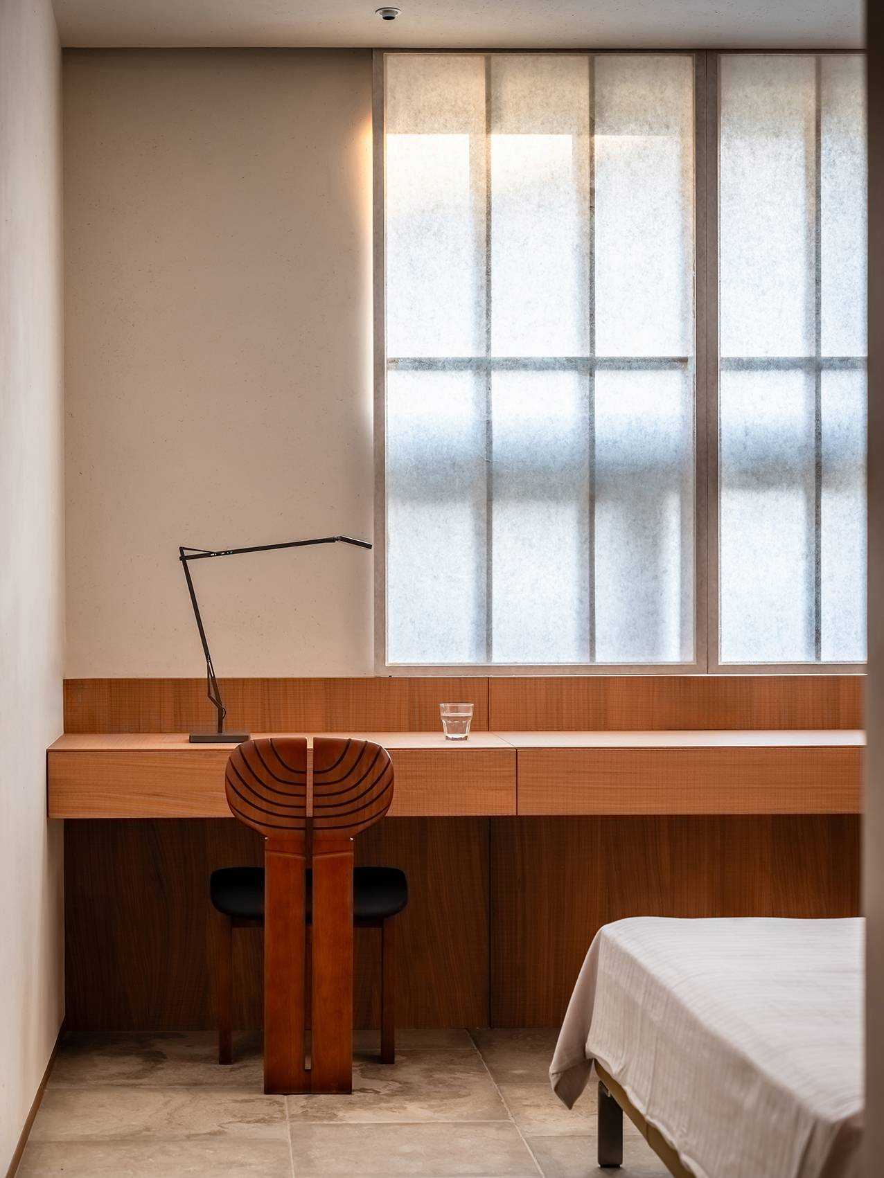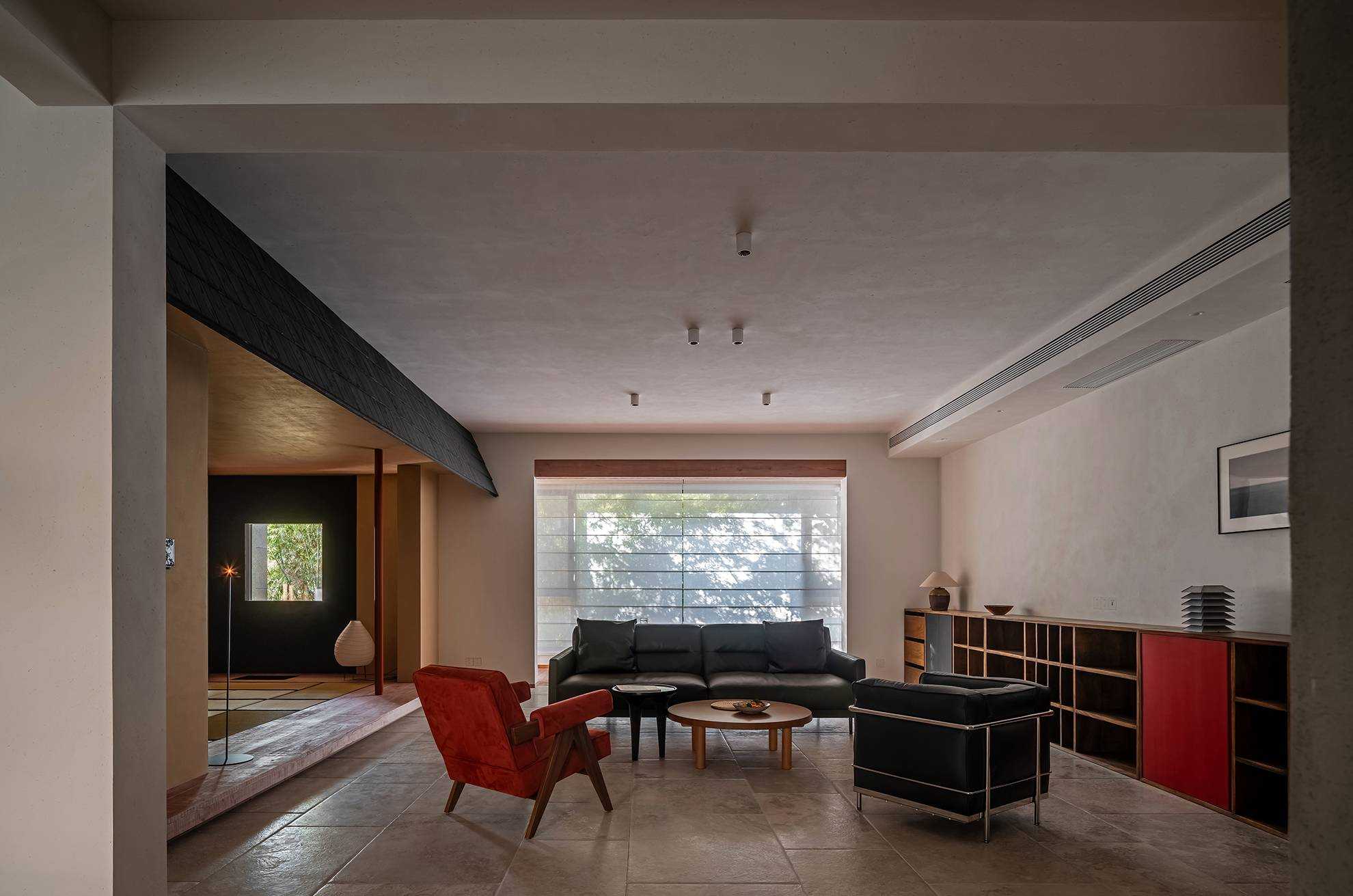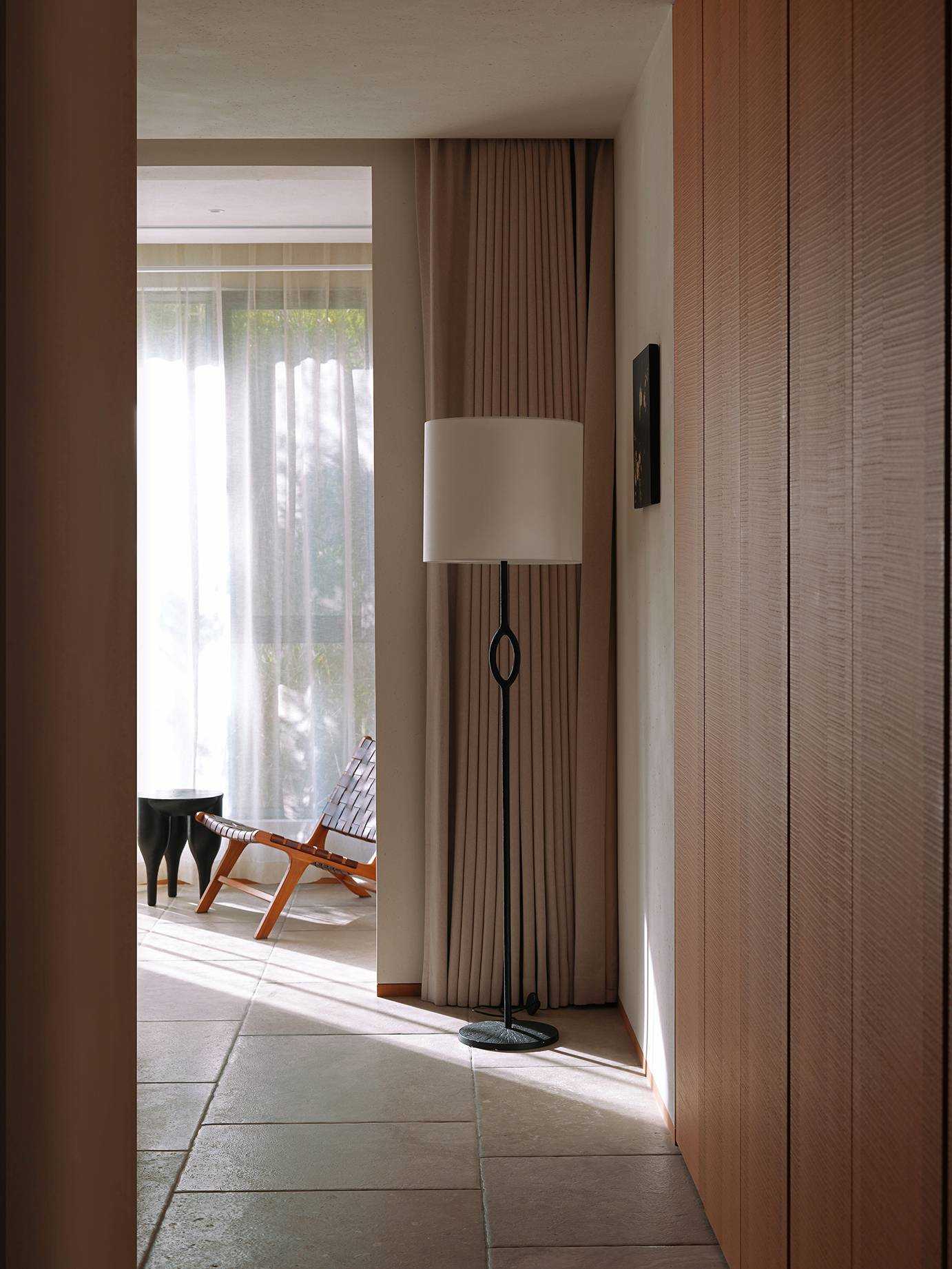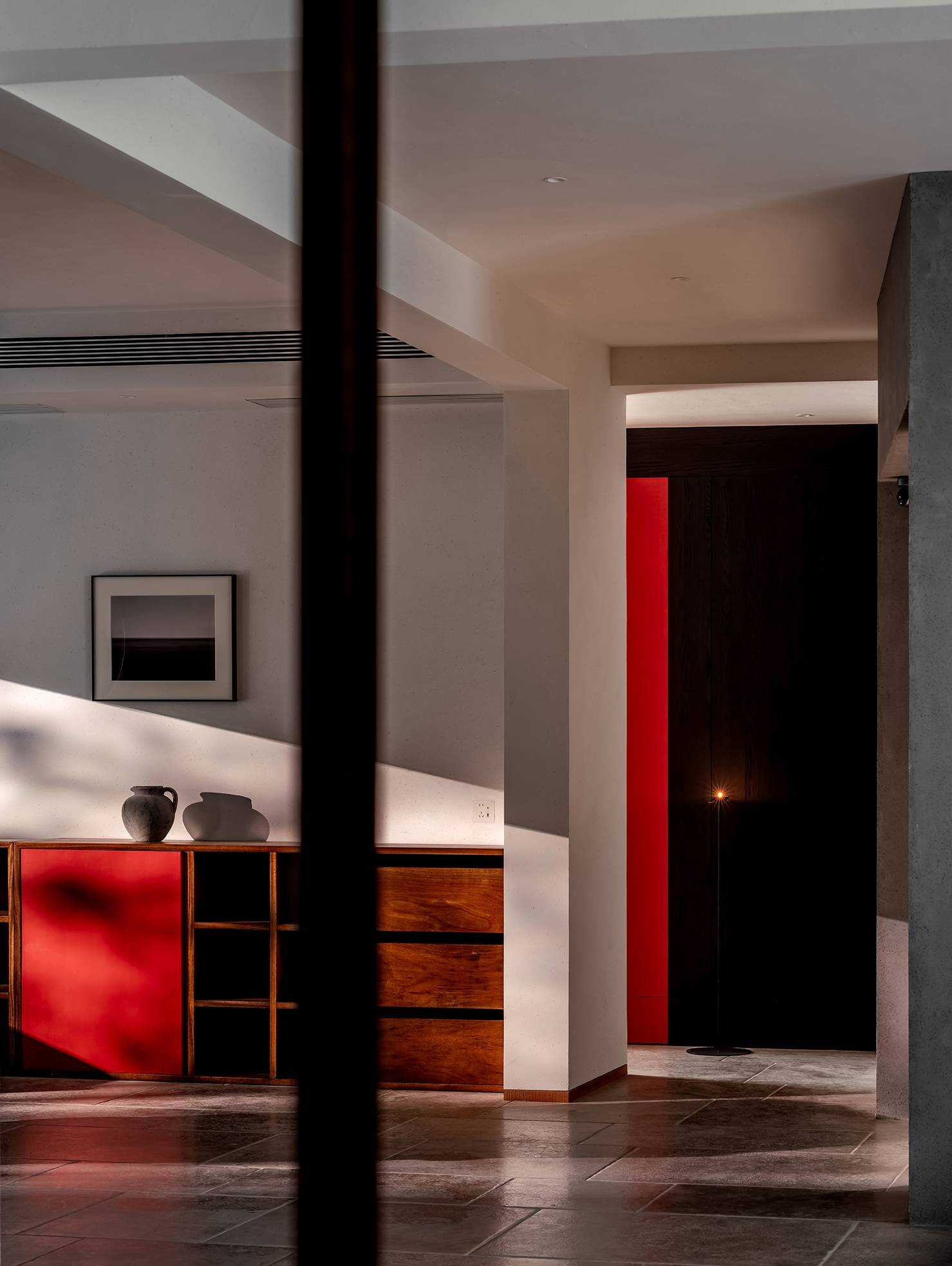 | 本案是一个位于西安曲江池畔的旧房翻新项目。空间设计以探讨现代住宅文化中的自然与人文关系为出发点,将感知体验与禅理佛道的意境相结合,洞悉空间感知之道。 住宅的原始空间划分较为琐碎,且位于一层,采光条件不佳,因此,我们在结构上进行了多处的拆改和优化,显著提升了空间的通透性和流动性。平面规划的重点在于不同功能区域在同一空间中的融合与独立,营造出一个即开放又具层次感的生活场域。 入口玄关区是作为整个空间的过渡区域,我们取消了原始结构中紧邻入口的客卫,并将其改造为一个独特的通过体验区。使归家的过程仿佛从石洞中穿行,用空间尺度的克制表达出独特的通过体验,在行进中完成由外至内的情绪转换,最终抵达豁然开朗的起居区域。 进入客厅,对称的布局模式使备靠阳台的沙发休闲区成为空间的核心,将空间自然分解为自由环绕的流动格局。传统的电视墙被取消,取而代之的是一排实木书架,赋予空间更多的文化氛围与功能性。 竹影解构光线,越过边界去探索未知。木与石的肌理重组阴影,温柔的抵抗着平庸与光滑。剥离脆弱的装饰性外壳,露出自然的纯粹感悟时间。 原始结构中的书房被改造成禅修室,为信佛的业主提供了一个在家修行的静谧空间。禅修室的南侧设计了取景框式的造型,将阳台外的竹景引入室内,营造出一种宁静而深远的氛围。 餐厅区域混凝土浇筑的洗手池与禅室空间可移动的和纸窗扇均在现场完成,厨房空间的部分实木橱柜与阳台区域的木地板均为关中地区的老榆木再加工完成,搭配扎染的布帘与木门上铜版也是为了重现那份温暖与熟悉。烹饪区前侧的铜版更是“时间的记录着”,每一次烹饪,蒸汽与油脂都会在铜版上留下痕迹,时间将会把它变得斑驳和富有质感。 作为空间中的线形雕塑,做旧钢管以锈蚀的痕迹在混凝土水池表面书写时间。 卧室是我们栖居时间最久的空间,我们的策略是保持适度的退让,床头区域未做过多的造型处理,希望通过留白来保持空间的包容性和宁静感,同时确保足够的舒适度。 本案整体设计侧重对人与空间对自然的感知,并理性的融入禅意,以现代生活方式的语言呈现出素雅并富有生机的东方美学。 | |||