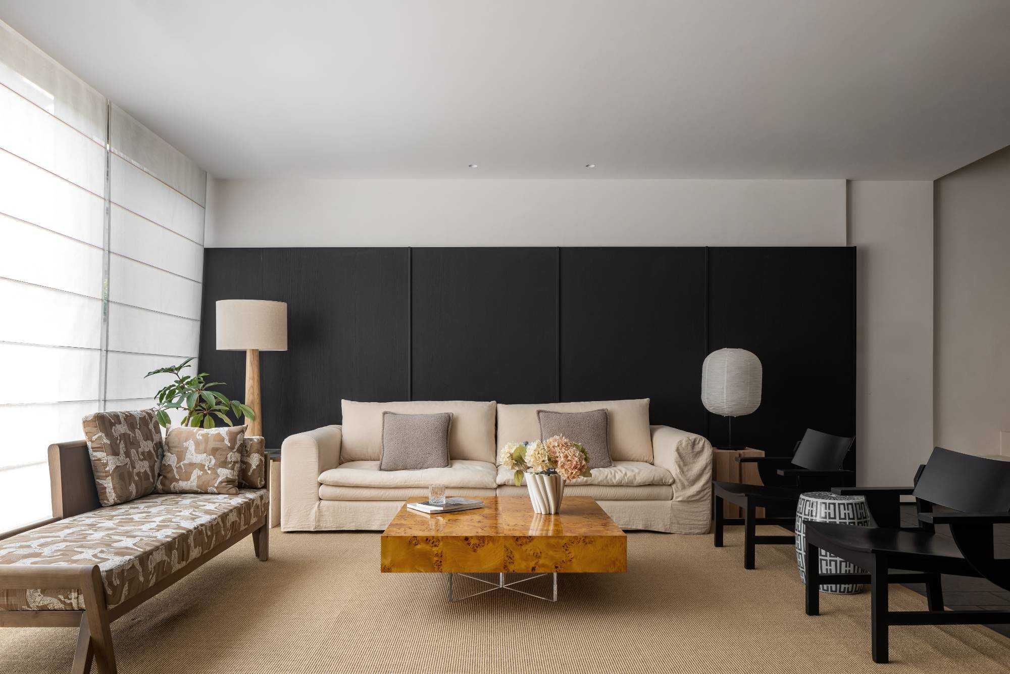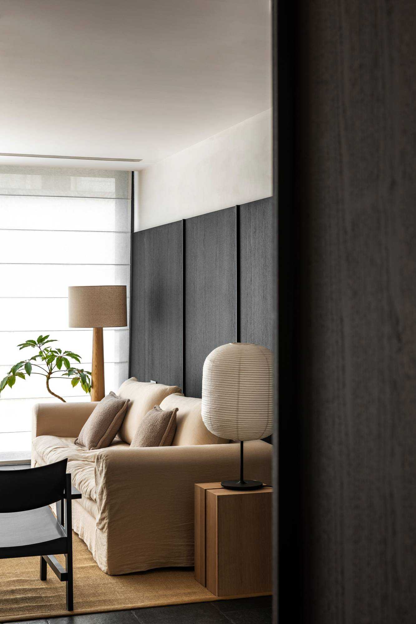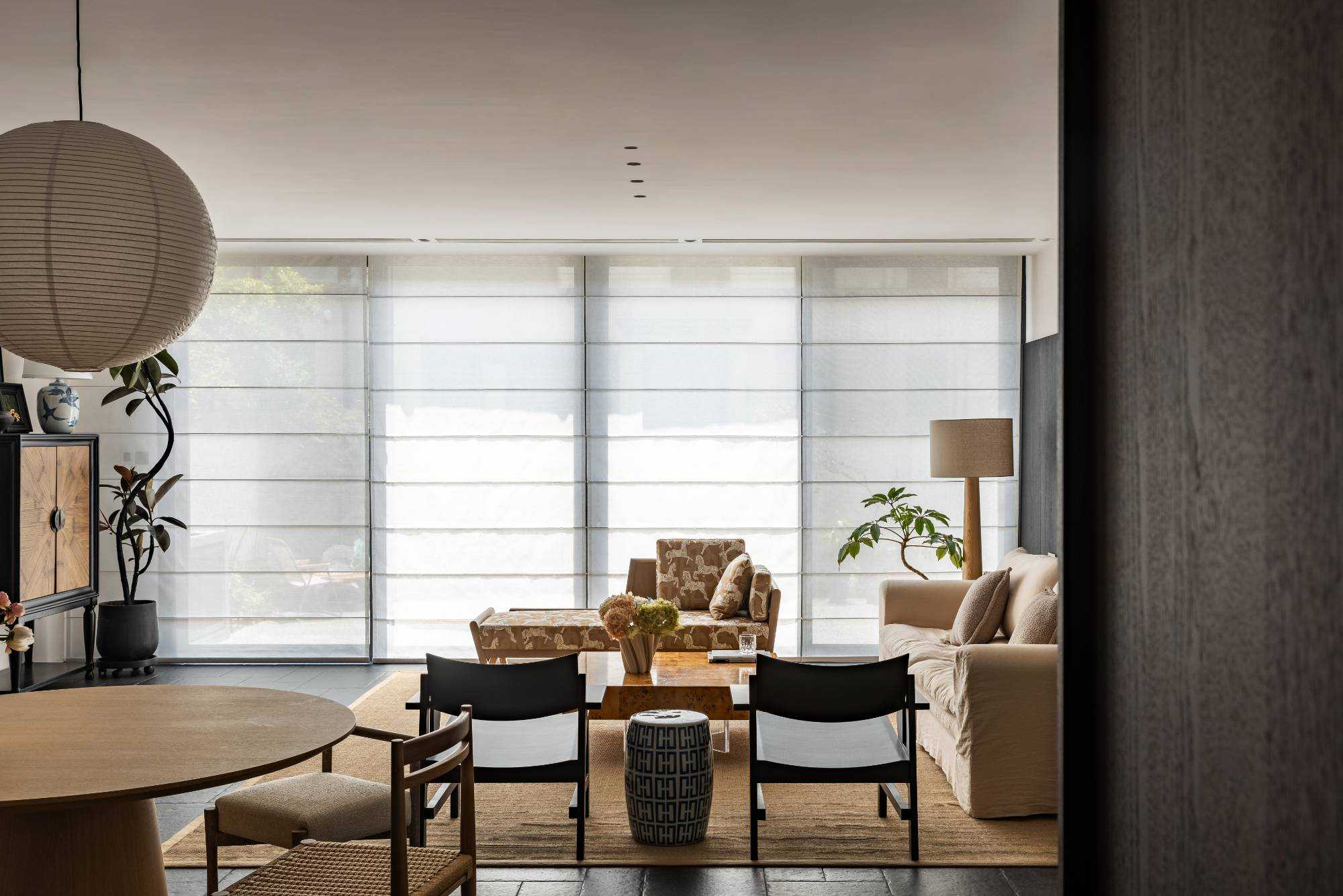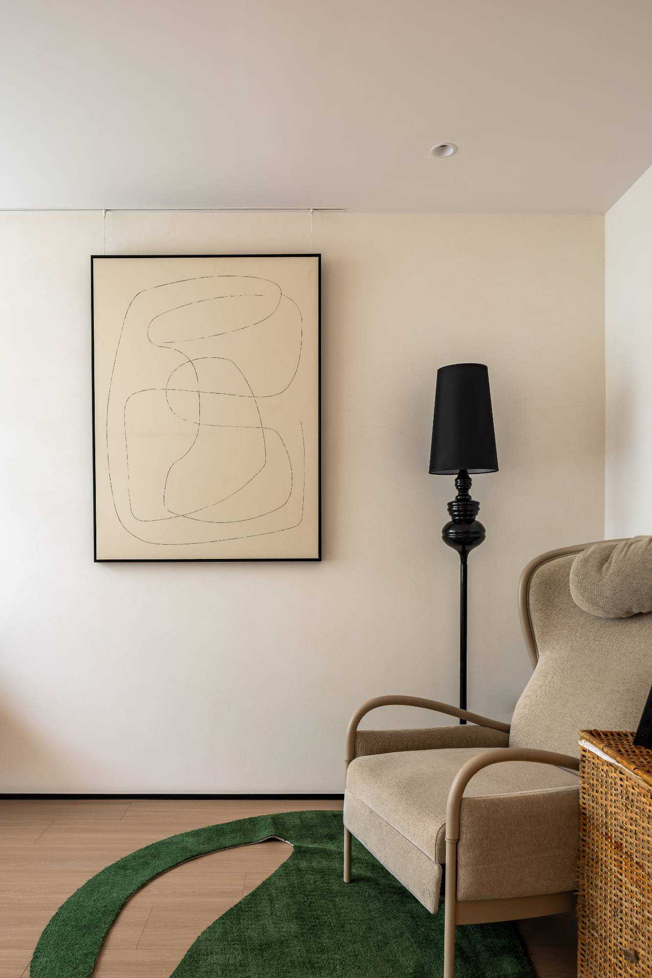 | 在这里,家不再仅仅是一个居住的空间,更是承载着生活诗意与情感温度的艺术殿堂,让每一位居住者都能在其中,找到属于自己的理想生活方式。 步入客厅,实木布艺懒人椅率先映入眼帘。它以完整木头为骨,美丽织物为衣,经典 H Deco. 刺绣系列兼具冬暖夏凉的实用功能,不仅是舒适的坐具,更像是一件件精心雕琢的艺术品。 其打破常规的搭配方式,既可化身为奢华的书房长凳,也能变作慵懒的贵妃榻,当友人相聚于此喝茶小叙,自在惬意的氛围瞬间弥漫开来。 一旁的棉麻白色二人位沙发,宛如云朵般柔软,带来极致的包裹感,让人在自然材质的轻抚下,尽情释放对生活的随性热爱。 客厅的每一个角落都充满巧思。中古玄关柜、日式落地灯与复古落地灯相互呼应,在光影交错间,传递出浓郁的松弛复古韵味。顶面以纯白色呈现,简洁无华,而沙发背景的黑色木墙板则形成强烈的视觉冲突,巧妙地突出空间质感。窗帘的材质更是为整个客厅增添了一抹复古风情,仿佛将时光的故事娓娓道来。 | |||