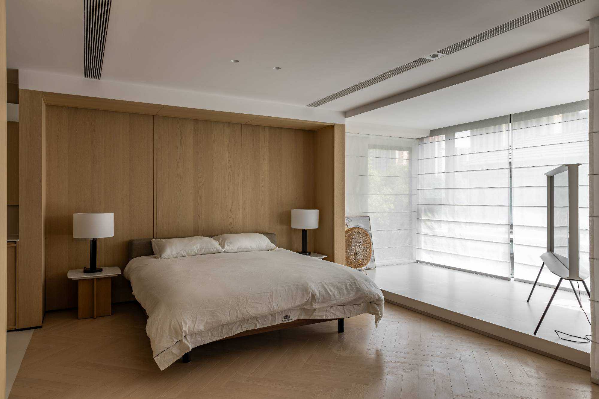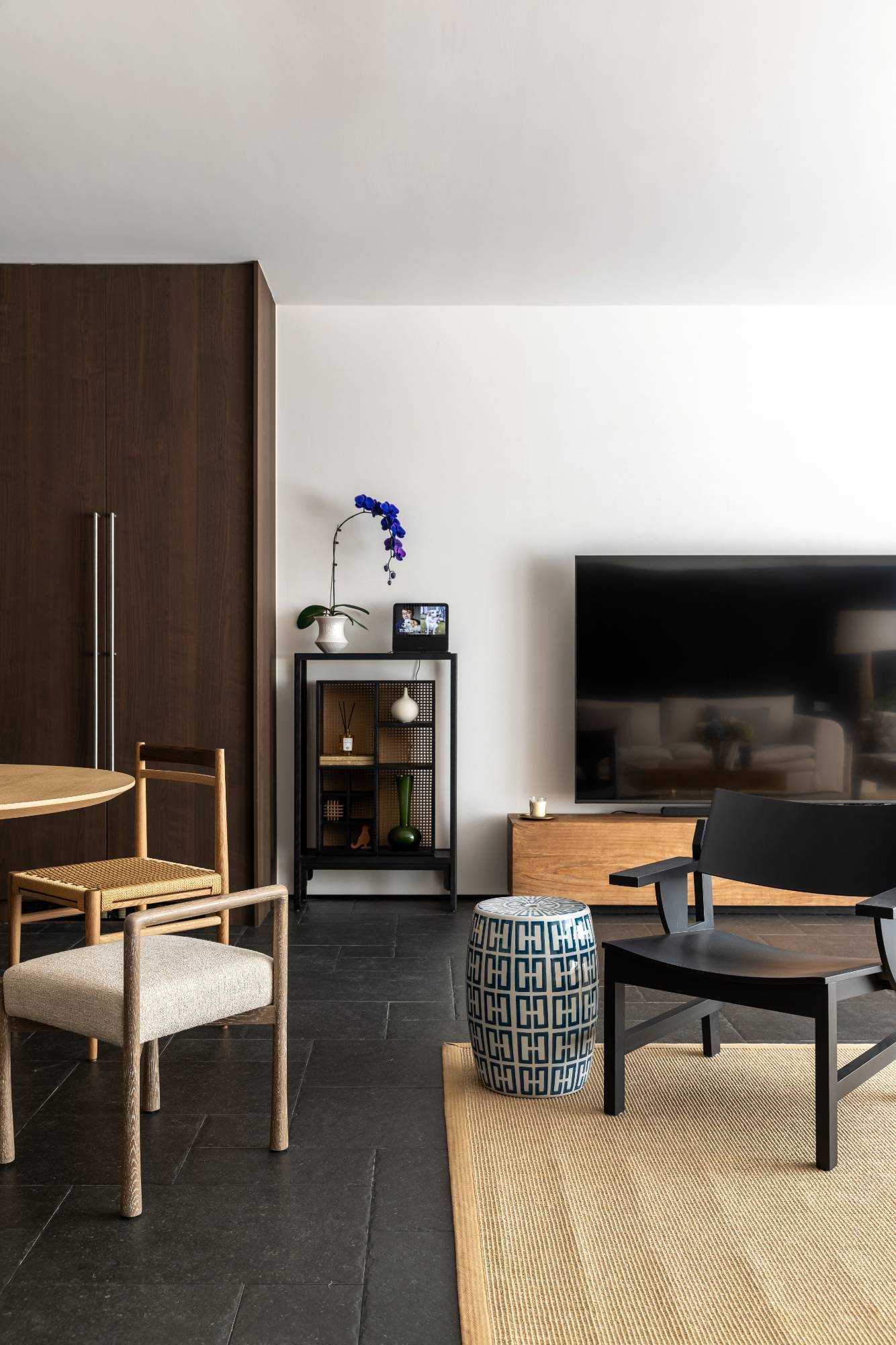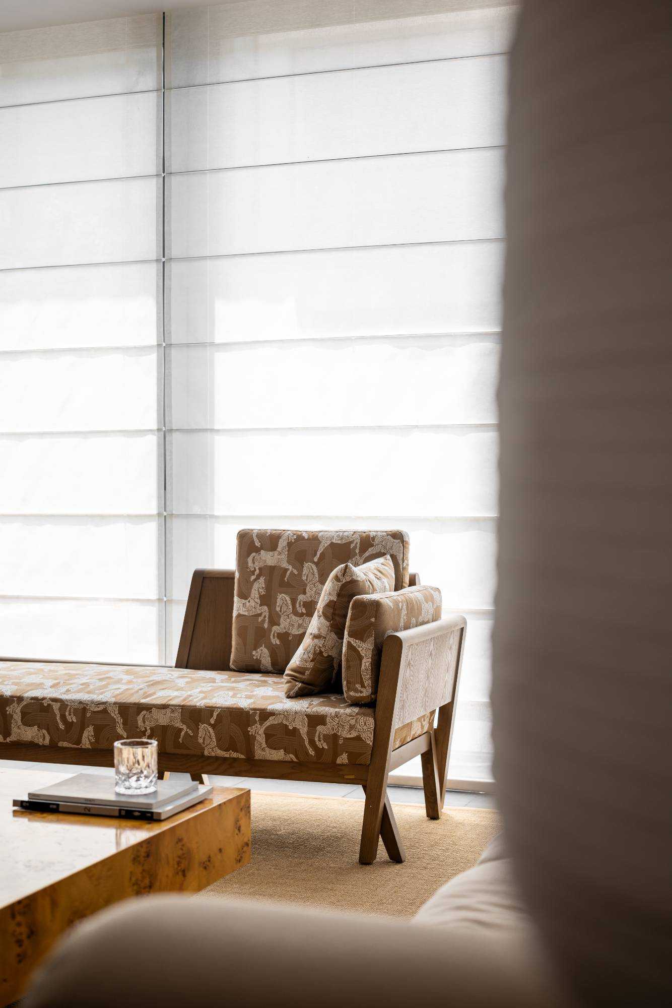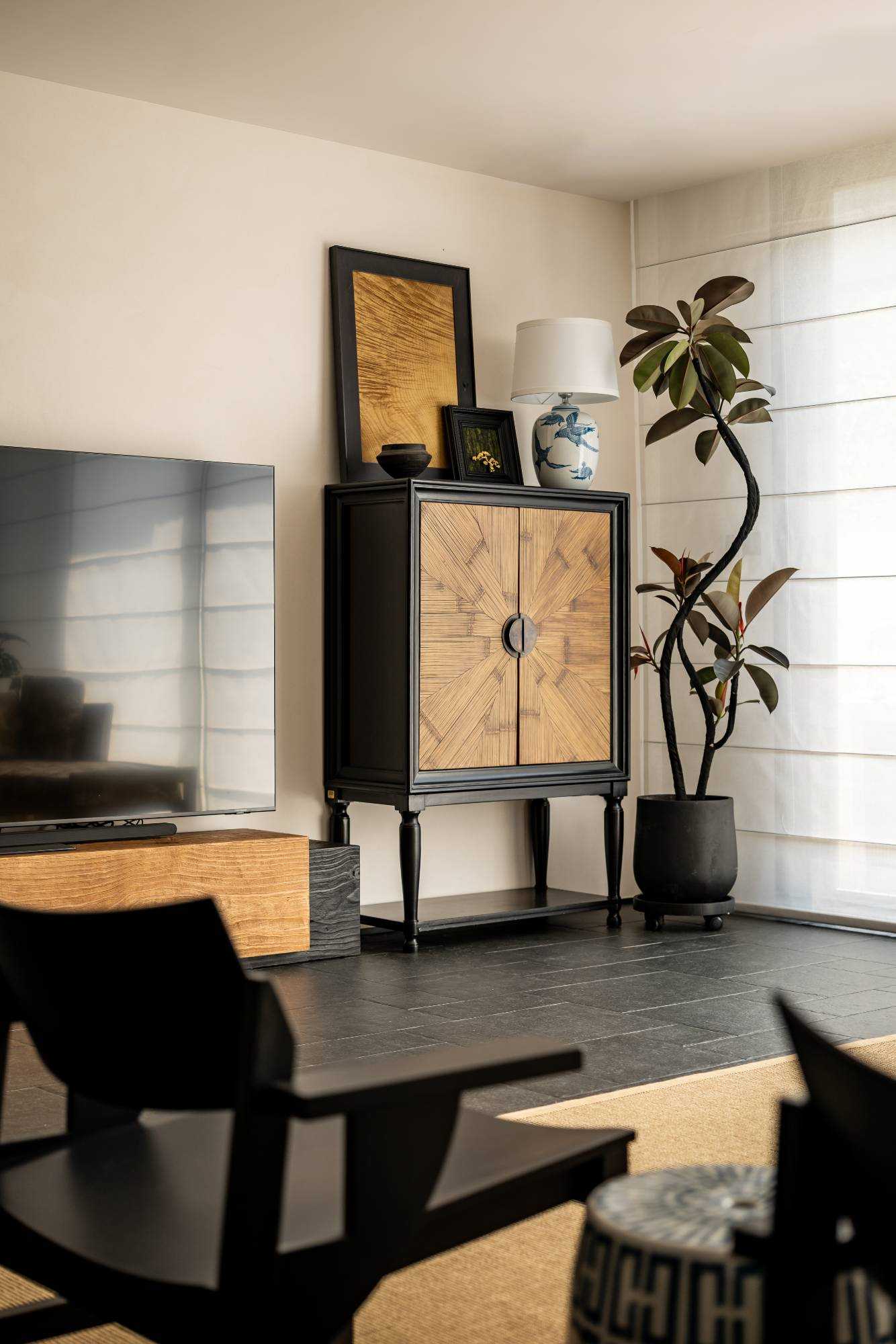 | 在这里,家不再仅仅是一个居住的空间,更是承载着生活诗意与情感温度的艺术殿堂,让每一位居住者都能在其中,找到属于自己的理想生活方式。 步入客厅,实木布艺懒人椅率先映入眼帘。它以完整木头为骨,美丽织物为衣,经典 H Deco. 刺绣系列兼具冬暖夏凉的实用功能,不仅是舒适的坐具,更像是一件件精心雕琢的艺术品。 其打破常规的搭配方式,既可化身为奢华的书房长凳,也能变作慵懒的贵妃榻,当友人相聚于此喝茶小叙,自在惬意的氛围瞬间弥漫开来。 一旁的棉麻白色二人位沙发,宛如云朵般柔软,带来极致的包裹感,让人在自然材质的轻抚下,尽情释放对生活的随性热爱。 客厅的每一个角落都充满巧思。中古玄关柜、日式落地灯与复古落地灯相互呼应,在光影交错间,传递出浓郁的松弛复古韵味。顶面以纯白色呈现,简洁无华,而沙发背景的黑色木墙板则形成强烈的视觉冲突,巧妙地突出空间质感。窗帘的材质更是为整个客厅增添了一抹复古风情,仿佛将时光的故事娓娓道来。 | |||