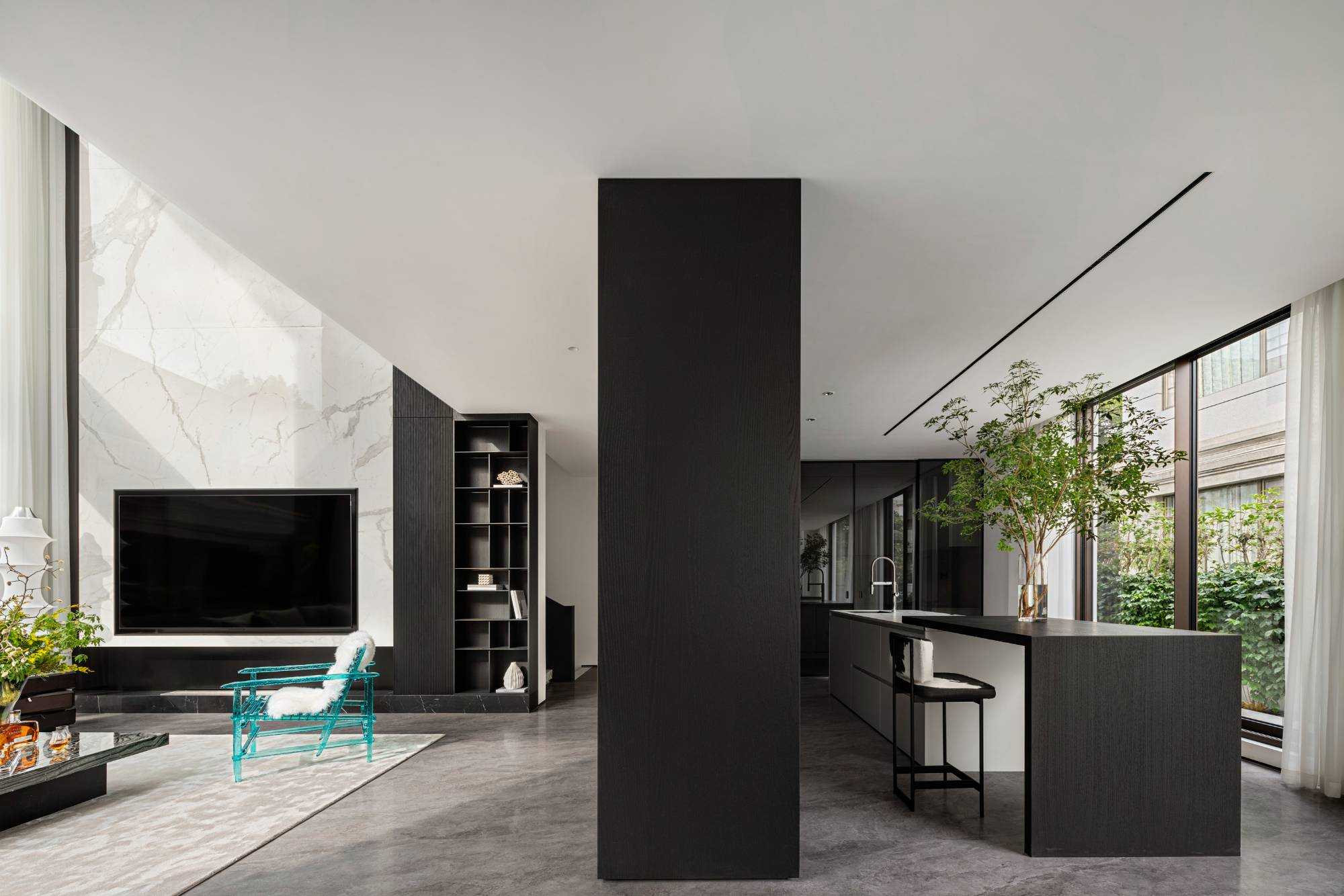 | 历时3年见证存量时期老房子的蜕变. 重新定义人类居住的场域: 试问何为住宅?它或许是人类对居住场所的重新定义——从空间视角重构人与生活方式的关系。在存量时代,同质化建筑遍布全国,不同城市批量诞生了大量雷同的房屋。随着时间推移,这些建筑逐渐“老化”。因此,如何营造更精细的城市生活颗粒度,成为设计 师探索的重要课题 看不见的建筑 设计师通过消隐建筑痕迹的叙事手法,让空间成为承载自然诗意的容器。当晨昏光影在素壁游走,四季更迭于窗棂流转,居住者将忘却物理空间的边界,只觉身处虚实相生的自然剧场。在这里,缥缈流动的光影轨迹与真实可触的生活场景交织,让人在时空的褶皱里,触摸到生活最本真的肌理。 原有建筑因窗户狭小导致采光不足,层高较低且室内昏暗、通风不畅。设计师通过外立面改造和垂直空间动线的突破性设计,解决了这些问题:拆除欧式建筑繁复的装饰性线条与造型,打通连接一层和二层的楼板,释放部分空间打造露台。改造后的外立面选用现代系统门窗与环保外墙漆作为主材,摒弃冗余装饰,以简洁的形态强化建筑与环境的互动性,最终营造出流动的诗意空间。 是家,也是城市 具有家的温馨又具备城市的多样性,可以包容多样的生活方式 在空间垂直动线规划中,设计师拆除了一层与二层之间的楼板,通过挑空区域串联起地下室、一层及二层,形成通透的社交型空间;而二层至四层则作为生活居住区,实现动静分区的动线布局。材质选择上,设计师以经典黑白色调为主,摒弃潮流堆砌,专注契合业主的审美品味。随着时间推移,空间将在居住者的日常中持续生长,承载并传承属于他们的生活记忆。 艺术家朱丹的两副画作分别位于大厅的上方和下方,形成一种既分离又整合的关系,结合Edra品牌的A'MARE椅,整面墙宛如一件大型装置。 建筑空间的背后是居住者的真实生活 去了解居住在这里的人们 他们的故事比砖瓦更鲜活 推开窗棂 让空间呼吸 容纳昼夜更迭的韵律 邀请自然做客——光、星空与季风 任晨曦漫过窗台 在墙垣间流转 、于地板上舒展 这便是空间书写的诗篇 客厅紧邻中餐厅与开放式西厨,极简的橱柜内嵌丰富的家电设备,搭配时尚中岛设计,共同构成一个精致优雅的空间,成为家人交流互动的温馨角落。宽敞的中式厨房则与中岛相连接,专业的家电配置既满足传统中式烹饪需求,也兼顾了西餐的多样化诉求。 淡粉色的Edra沙发与艺术地毯相映成趣,空间从室内自然延伸至露台。墙面书架组合与艺术家画作、空间色调形成呼应,共同营造出静谧安宁的阅读角落。居住空间如同承载城市精神的容器,其功能设计需满足使用者多元化的精神需求。 三层为主人起居室,为方便主人使用在休息区域设置了一个阅读空间,多宝阁中陈列着业主收藏的艺术摆件,Edra花瓣椅在烟熏橡木色的木饰面柜体的衬托下显的璀璨夺目,当午后的阳光穿透窗户,木地板上流转着斑驳的光影,岁月缱绻,葳蕤生长。 艺术重塑空间价值 地下一层作为社交型空间,划分为家庭影院与品酒接待两大区域。影院区内陈列着意大利进口艺术家具、精选红酒雪茄以及青年艺术家画作,整体空间通过多元艺术元素交织,营造出居住者精神世界的沉浸感。 品酒雪茄区则选用色彩斑斓的透光石作为背板核心材质,结合定制灯光系统与艺术家具,强化空间氛围与美学调性。透光石后方的灯光经过智能调色处理,可随不同场景需求自动调节背景光效,实现空间情绪的动态表达。 | |||