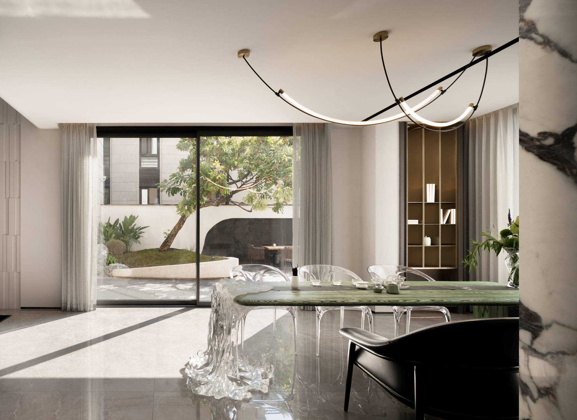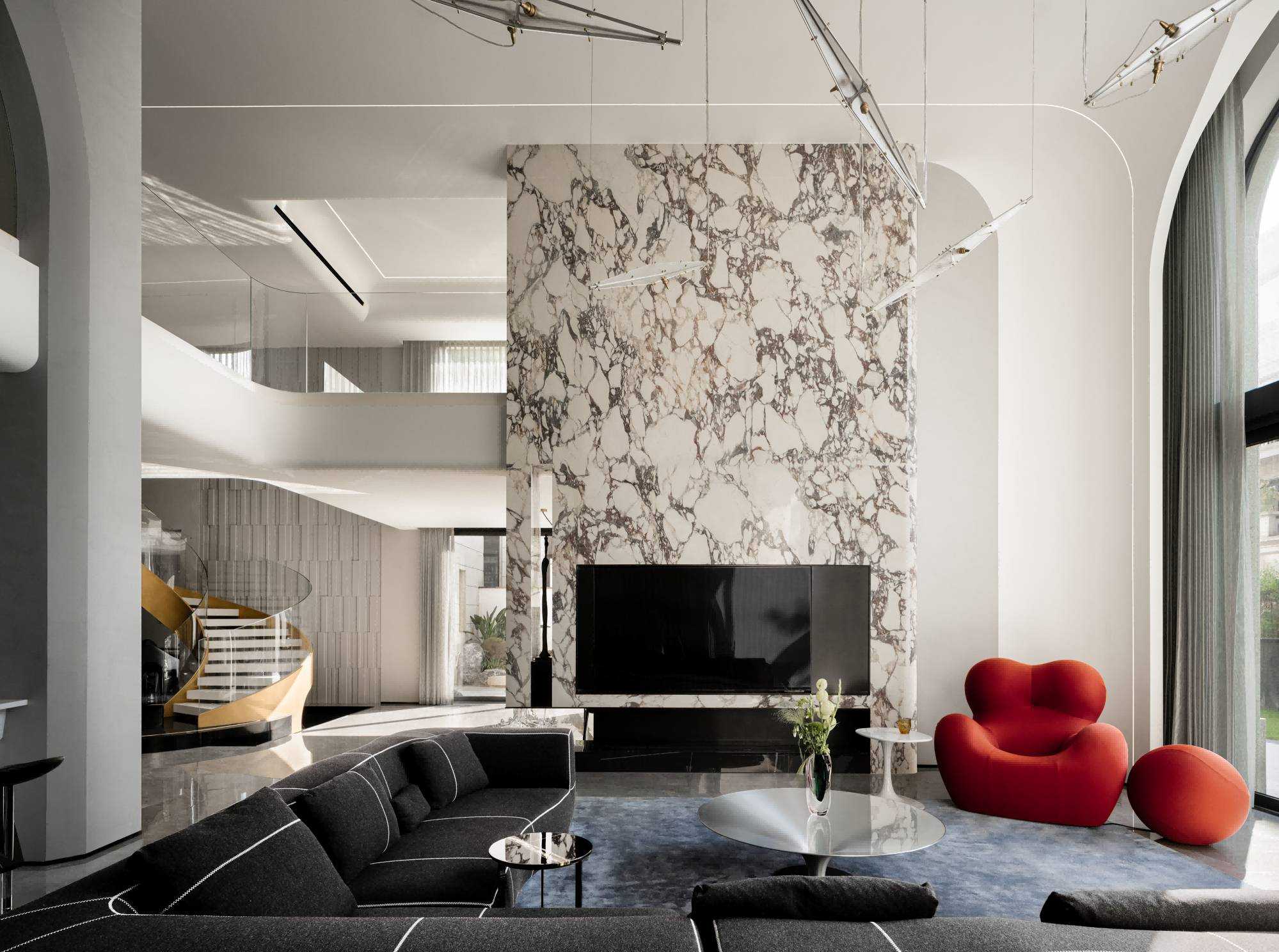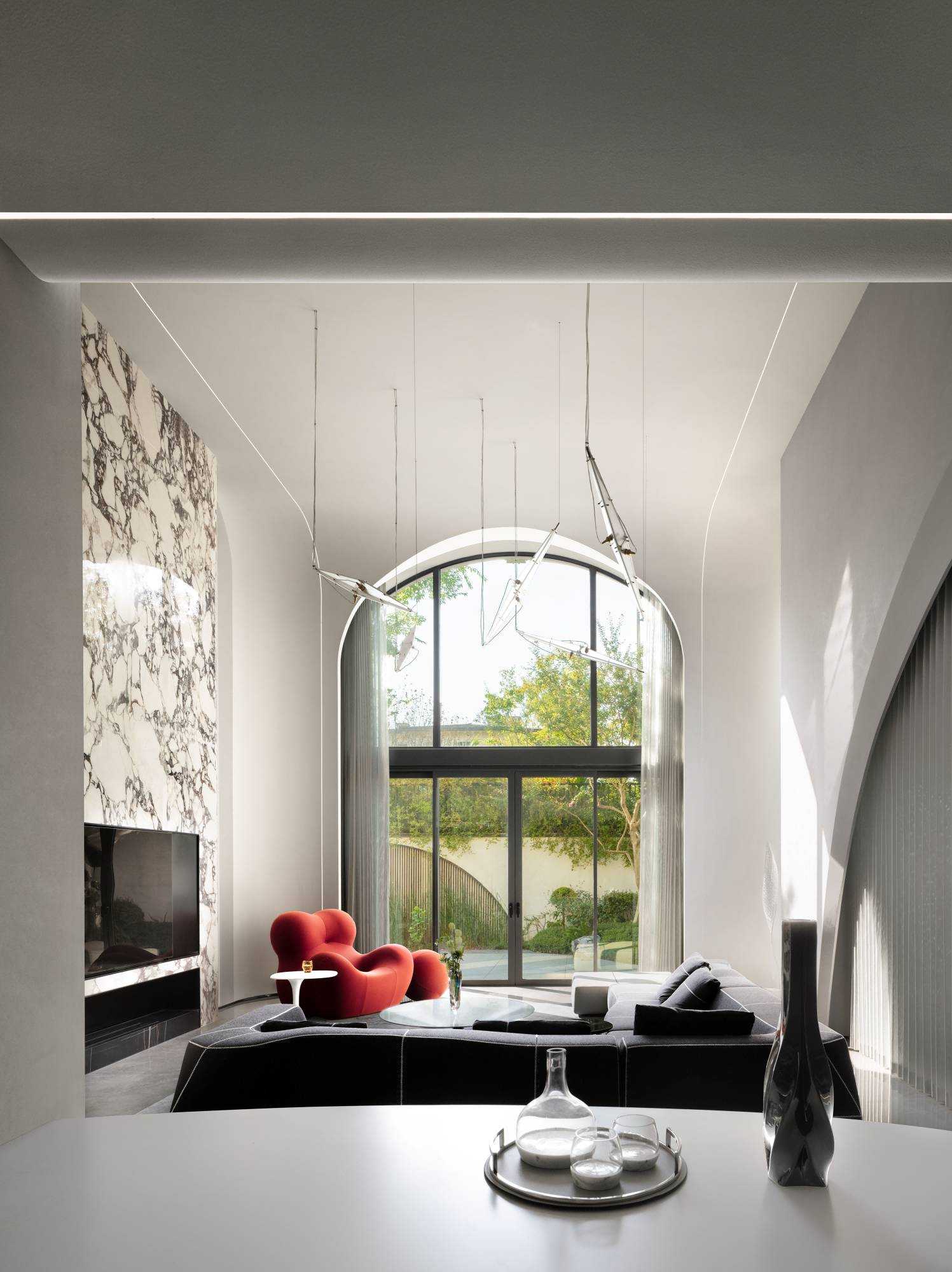 | 设计不应仅局限于空间的舒适感,更应提供与居者相匹配、甚至更高阶的生活方式,实现居者自我个性表达的同时,也能回归内心的宁静与安稳。这是设计师与业主达成的共识。 该项目位于重庆的半山之上,面朝嘉陵江和远山,室外是就山势、借远景、引溪水,顺势而为形成的外部环境,室内也以此为思路,依托建筑、围绕需求、营造场景,通过顺势演变的形态,突破传统的设计思路,并实现不可复制,是这个项目最大的特点。 借势原始通透的建筑结构,设计师将楼梯重新规划在负二层入户位置,一则形成极具装置艺术感的玄关,隔而不断且给人入户仪式感,二则无形中将空间分割,形成洄游动线,增加空间的探索性。 这一改动让负一层空间自然作为转换界面,可承载多条动线切换,两层空间因动线转换而完全开放,成为整个居所的活动中心. 在解决空间异形上,审美同样顺势而为。原始空间里两大承重柱,均以弧形包裹成柔和的柱体,与旋转楼梯和圆形地台相呼应,消弭在空间的建筑艺术感中。 以此整个空间开始延续弧形语言,半弧形态弱化方形窗体的突兀,顶面与墙面的转角以弧形过渡,线性灯光勾勒出建筑形态,让空间具有整体性与流畅性。 弧形元素贯穿到健身房,提取现代时尚的格栅造型,没有多余的设计,仅以流动的线条和极简质感的材质,将理性、克制、留白的空间留给运动的家人。 设计师聚焦居所的每个成员,既有各自涵养内心的归所,又有家人间亲密互动的场域,生活的诗意与家人间的爱意相融。 茶室与花园相接,极简的线条、轻盈的色调、当代的材质,都让茶室更显纯粹与轻松,在这里或一人独酌,或与友对饮,亦或与家人促膝交谈,都是最好的慢时光。 阳光朗朗,清风徐徐,琴声悠悠,琴房是居所的精神领地,伴随光影谱写着空间的节奏韵律。 户外花园映射着四时交替,室内处处标记着三餐烟火与日常印记。一楼阅读区贯穿超大落地窗景,为室内营造丰富的自然采光,光影斑驳在室内游走,让空间瞬间灵动。 简餐区和阅读空间相互延伸,位置上相对独立又完全开放,拥有极强的连贯性与包容性。 家最终的使命,是承载和陪伴。休闲区迎合当下孩子的童趣,选择简单且有趣味的软装,同时聚焦未来可适性,尽可能使用可灵活组合、调整的活动家具,以根据孩子的成长变化而适时改变空间属性。 书房的布置简约雅致,光透过百叶帘演绎空间的动与静,一盏舒适的台灯,一个精心挑选的书桌,在这个安静的小角落,是最沉浸的时光。 寝居,是涵养身心的归所,也是家人情感的凝聚点。三个孩子房聚集在同一层,各自拥有独立套房又有公共社交区供孩子共同玩耍,保证每个孩子独立性的同时,给予相互陪伴成长的空间。 大女儿选择自己最爱的白与灰作为空间主色调,形式简约、材质纯粹,明亮的光照进房间更显轻盈利落的质感。 儿子房选择蓝色作为点缀,正如男孩拥有稳定、淡然、勇敢的性格,特别的角落装饰也让他在专属空间里表达着个性的自己。 小女儿房利用墙面的弧度嵌入圆形床,与建筑墙体围合形成天然的包裹感;视线所及之处都是柔和的圆弧造型和软绵的材质,增加童趣的同时,也在细节中感知对家人的爱护。 主卧打开大大的落地窗,将户外露台的自然景观纳入室内,合上窗帘是静谧舒适的休憩空间,拉开窗帘是感受四时变化景致、弥漫自然气息的诗意世界。 延续动线的顺畅引导,洗漱、泡澡、淋浴、护理等流程都贴合着居者日常习惯,所有微小细节都将在日常中被感知到,从而由内生发出对美好生活的期待与欣喜。 | |||