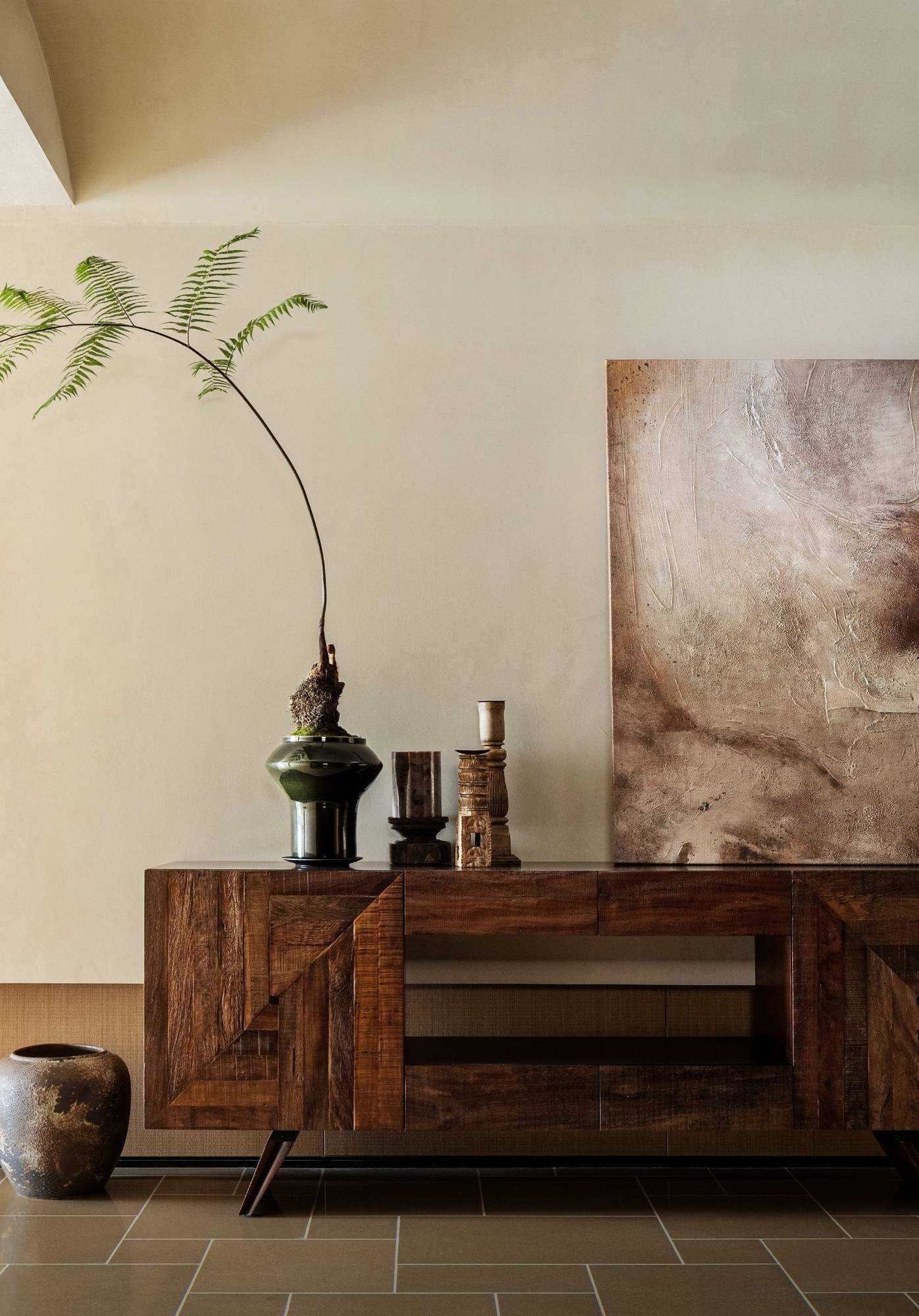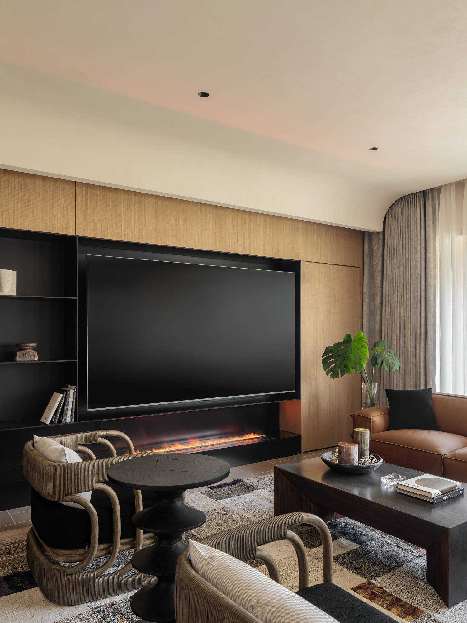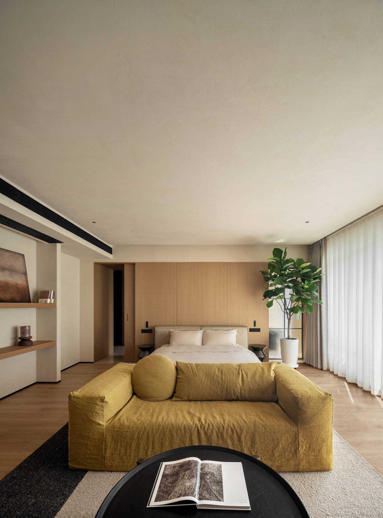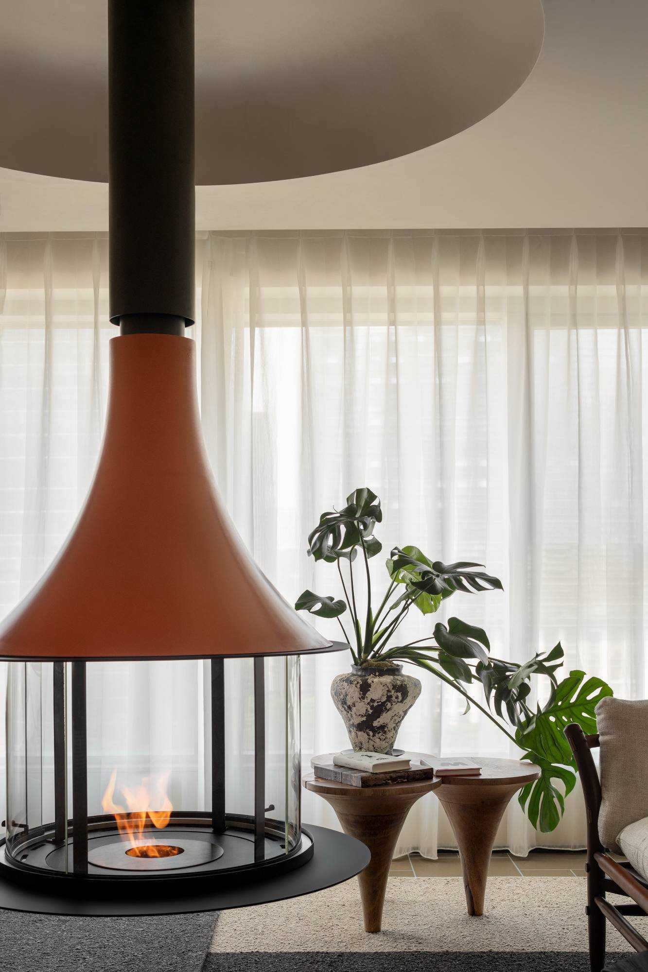 | “侘是在简洁安静中融入质朴的美,寂是时间的光泽。” “复古”是一种存在于语言之外的美感,是一种需要用心去体验,用心去追随的宁静。是无需繁复修饰,在残缺中看见完整,在有限中感受无限的精神境界。正因如此,复古、侘寂、松弛感成为当下一剂疗愈人心的良药,在钢筋水泥铸造的城市广厦中,带给人凝固时间的闲适感。 以光为引 以意为境 “我把握住的,全变成光。我丢弃的,全变成灰烬。我是火焰,确实无疑。”——尼采 初入空间,便能感知场域的精神力量,循着一缕金丝猴蕨所指,火光构筑的诗意客厅映入眼帘。以带有圆弧天花的场景为叙始,垂吊壁炉为中心,窗边会客厅一如“空中花园”,勾勒全案视觉焦点。 空间黑色材质、不锈钢等现代元素的运用,以克制、精妙的手法展现,结合来自丹麦、法国、印度、东南亚等世界各地的家具,营造具有国际化符号,同时具备厚重感的空间特质。 生生灯火 明暗无辄 “人生忽如寄,莫辜负茶、汤和好天气。”——汪曾祺 设计师将平面布局进行了新的构思与布局,原先封闭的客厅被打开,获得更大的开放式宽敞社交空间。壁炉旁长案茶台接应客人、友人,不疾不徐地进入下一环节的感官之旅。 在一览城市风景的“空中庭院”旁侧,比邻茶台的另一方客厅,为好友相聚增加了延展空间,黑色体块解构雾化壁炉嵌入原木色电视背景墙,避免场域压抑,棕色牛皮沙发与藤编家具的混搭,则丰厚了空间的艺术层次,同时带来几分仿佛度假般的野趣。 幽微深处 其乐无穷 “生活可爱而光明,生活拥有黄金巷,我们想要更紧抓住生活,我们并不畏惧生活。”——里尔克 爱这人间,就该更爱这朝朝暮暮的烟火气。可围坐十二人的巨大圆形餐桌,会客宴请尽显大方优雅的气度,如逢喜宴,亦能寓意圆融、圆满,生活的好兆头由餐区开启。 餐厅的复古柱式来自印度百年古建构建,充满了人工雕琢与时光雕琢之美,将复古侘寂的精神安放,顶天立地,充斥整个空间。 悉听生命 无尽流动 “若更无山天地溷,纵还有石水云空。”——胡缵宗 室内泳池是松弛感私宅的亮眼一笔,使得居住感受更丰富,推开黑色隔扇拉门,别有洞天,碧蓝的柔波更增强了度假的代入感。夏日的闲暇午后,在私家泳池惬意放松,眺望远处光景,是无限奢侈的乐事。 一个房子的容量是有限的,而设计所创造的可能性却是无穷尽的。“克制”带来长情的满足感,“惜物”带来与时间抗衡的哲学。有别于传统豪宅,设计师试图创建一间有着“永恒回归”概念的家宅,提醒居者记忆与情感将在轮回中会不断被唤起。 | |||