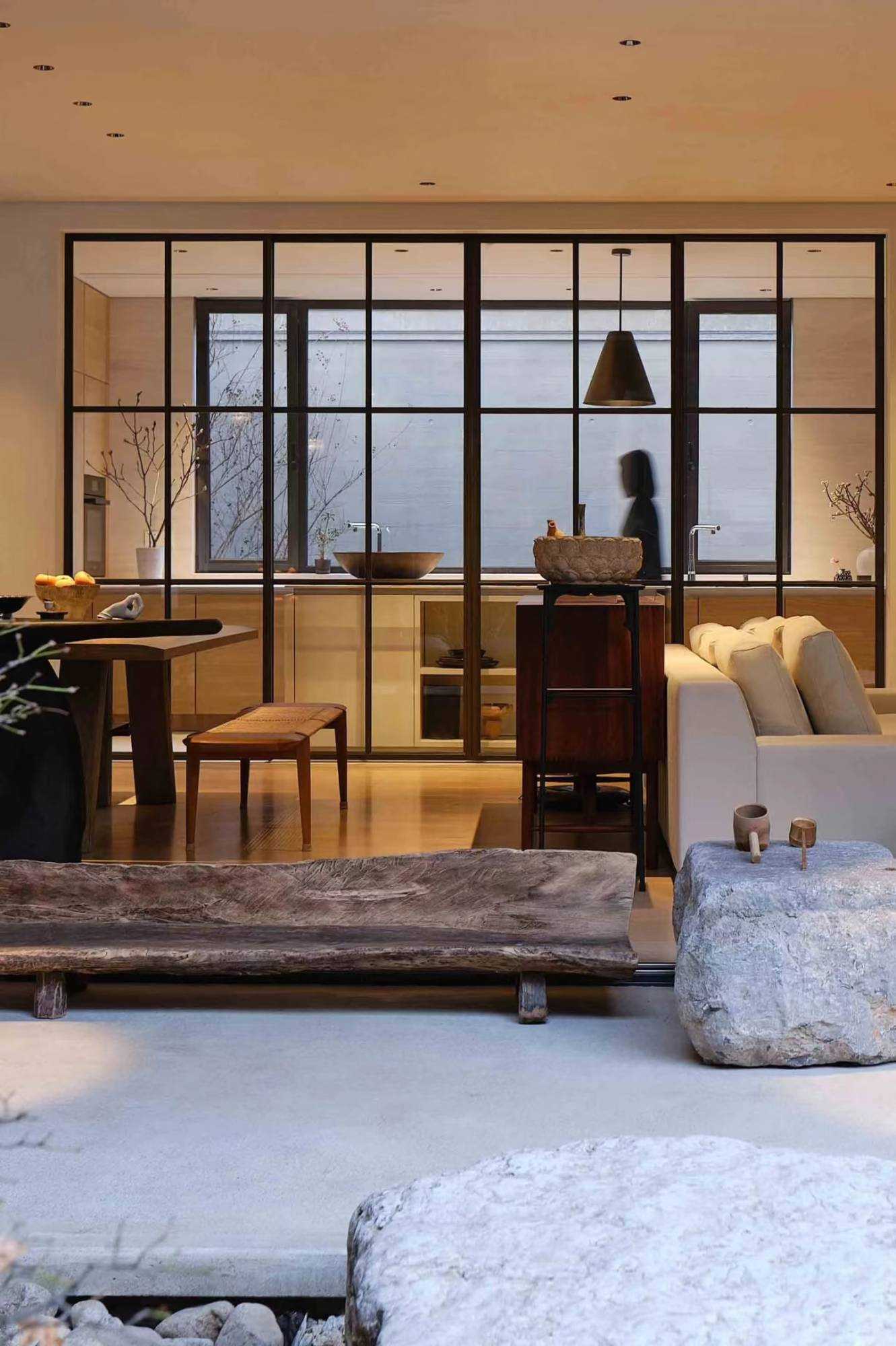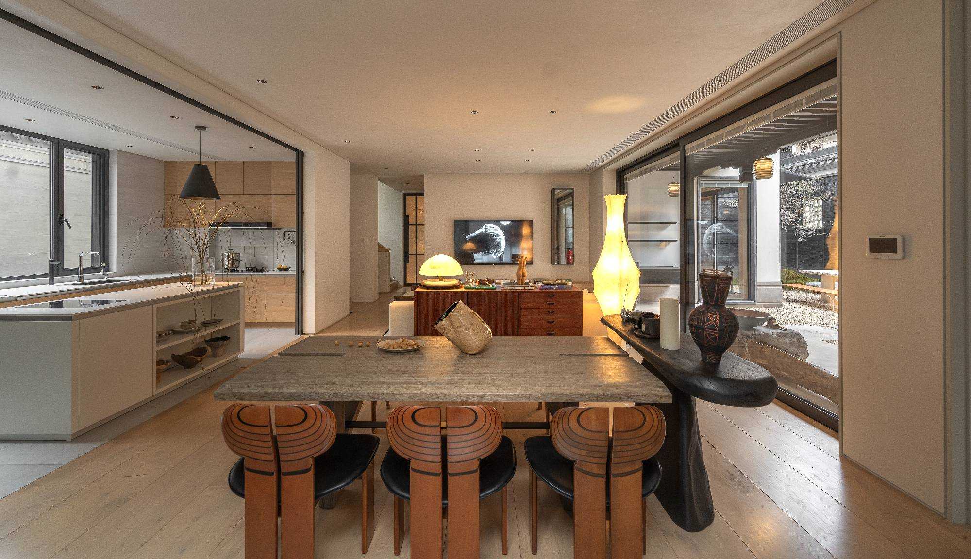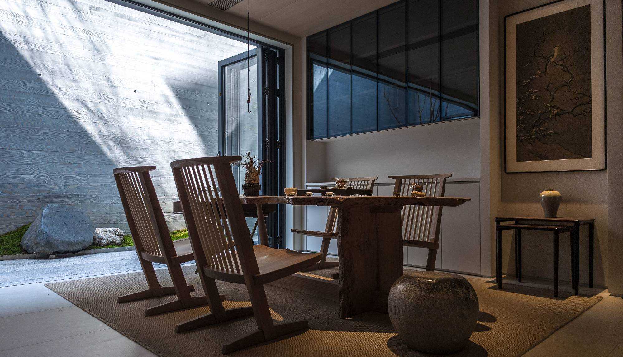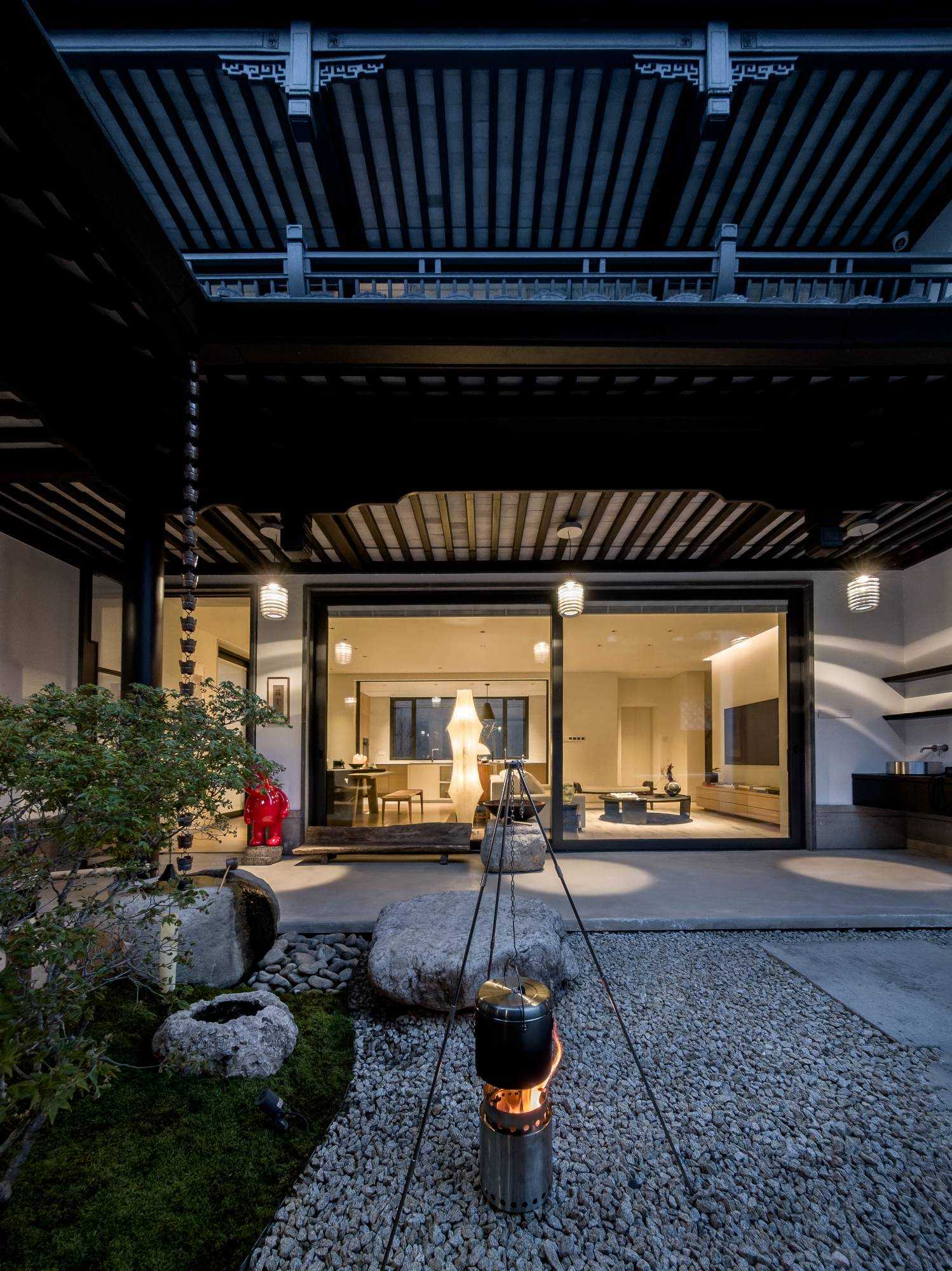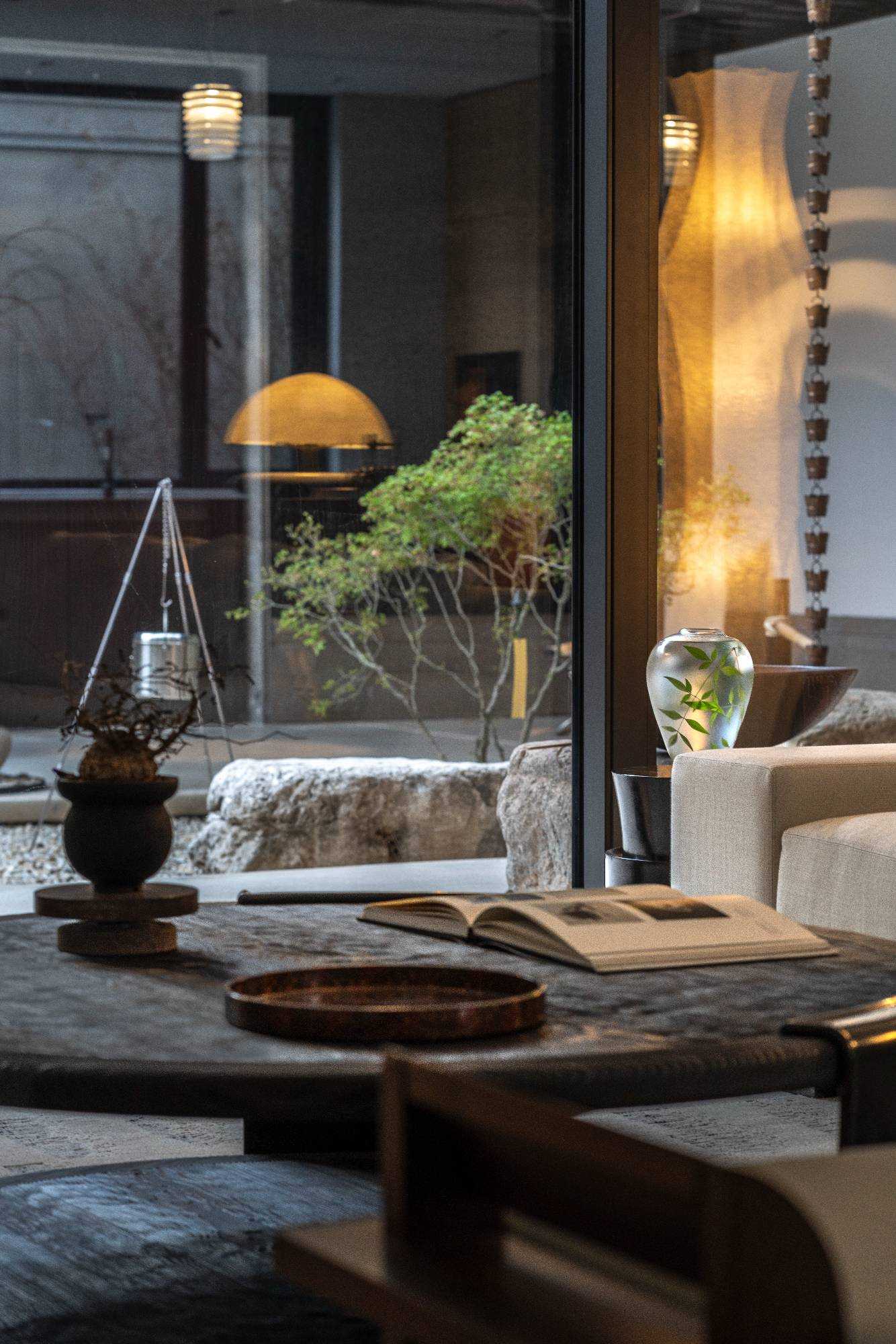 | 由项目本身的合院切入,将中式庭园之“游”,与日式庭园之“观”,相融在此。游赏与坐观两相宜,无关乎具体风格,而是从业主自身生活追求与状态中,风格自然生长。所抵之处,成为业主珍藏家具与器物的展示场,不论是购自日本的铜质雨链,还是搬石头时师傅的竹扁担改造成的添水,以所爱之物构筑出静心欣赏四季景致的栖息地,得以悠然赏青绿翠滴,苍苔落红的四季流转。 中式合院与90后,两个看似不想干的词汇,却在杭州西溪湿地一侧,开出了不同寻常的花朵。业主槐树夫妇二人与设计师,用这所独具风情的中式住宅,完成了这次充满意义的陪伴性收藏实践。而如何诠释契合业主夫妇的独特生活美学,是贯穿始终的设计线索。设计将居住者的生活方式融入多维感官体验之中,从材质到色彩,从灯光到细节,带着对业主对理解与陪伴,用其生活方式的美好诠释,构筑出专属的家居理想。 业主两人经营着一家时尚买手店,赴世界各地用挑剔的眼光来寻找点亮生活的单品。当阅遍世界后,更安心将家容纳所藏珍物,包罗纯粹的个人兴趣。而设计需要做的,是用全局思维来以物抵心,通过空间意趣结合丰富的藏品,打造出融汇东西意趣,归隐于市的家宅。 | |||