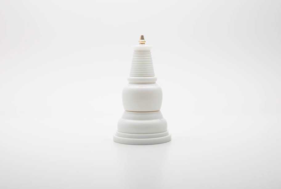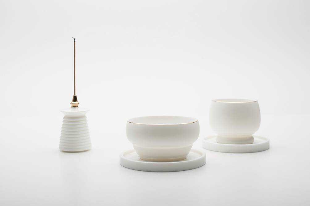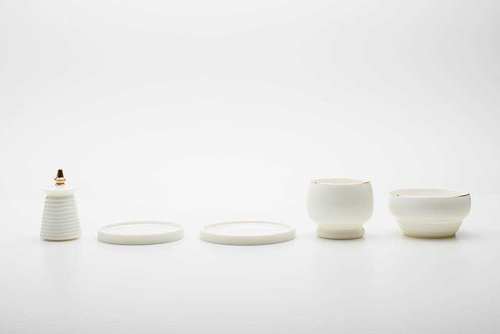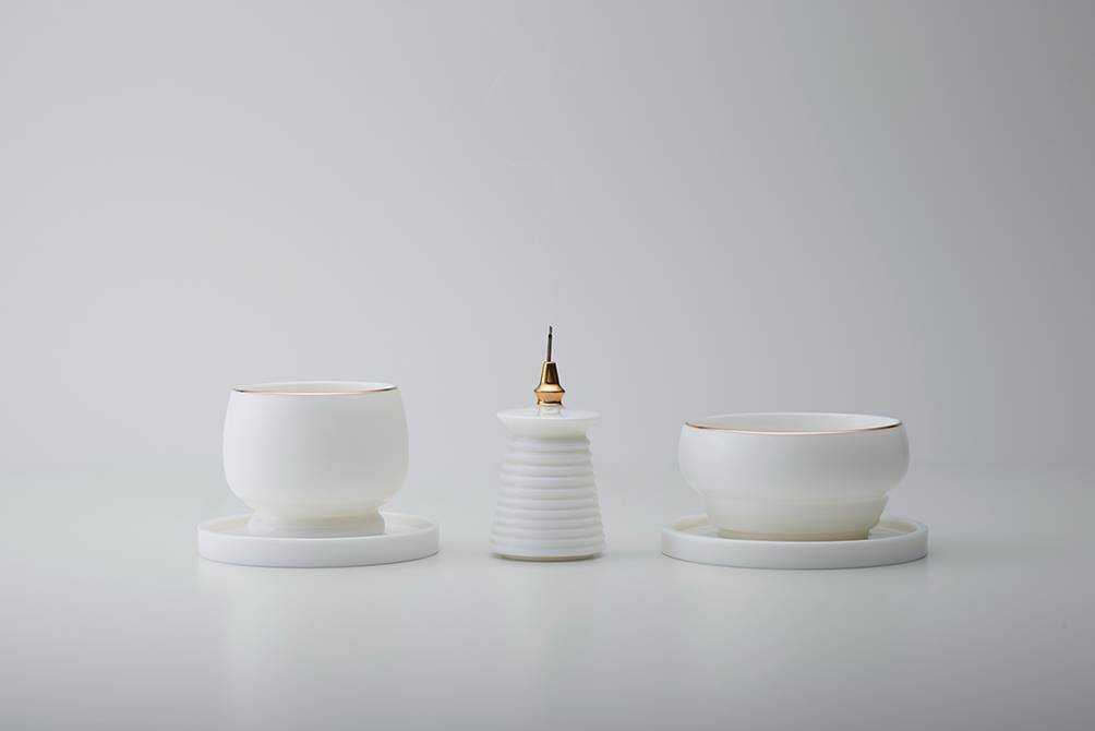 | 白塔的全名为释迦文佛真身舍利塔,坐落在山西省五台山台怀镇塔院寺内,通身高七十五点三米,塔身状如藻瓶,周身青砖砌造,外抹石灰,通体洁白,比例匀称,朴实无华。轮廓雄浑,气势磅礴。昼则映日,夜若白光。它是清凉山的第一胜景,更是五台山的象征。 设计师探寻茶器基本功能之外,与人更多的情感关联,追求多重感官的美好体验。可置于茶桌,主杯、客杯用来饮茶,香插用来焚香;可置于佛堂,敬水,供灯,上香。 至真、至拙、至天然的美物,将茶香与禅意统一营造,实现 “禅茶一味” 的意境可视化。 可观可赏,可用可品,观时素淡静雅,禅意凝润,用时闲适安心,茶味生香。借此,茶器的传统技术创新与设计感的现代表达,变得和睦清新。 希望这件作品可以实现文化与功能,艺术与生活的互融乃至升华。 中国德化白瓷历经千年的辉煌,代表着至纯与至真,因 “白如雪、明如镜、薄如纸、声如磬” 而享誉世界,被誉为 “中国白”,也因此成为中国陶瓷面向世界的一张名片。整体温润圆融,不似白玉胜似白玉,美妙的胎釉质感逼似 “玉之五德”,从而把追求玉器质感的制瓷工艺推向巅峰。因为德化地区山体有其独特的地质结构,其高岭土质地坚密,含铁钛等杂质成分少,故瓷质晶莹如玉,釉面滋润似脂,被欧洲人称为 “中国白”。“中国白” 以乳白釉为主流,胎骨细腻坚致,晶莹透亮,他们认为这是中国瓷器之上品。 | |||