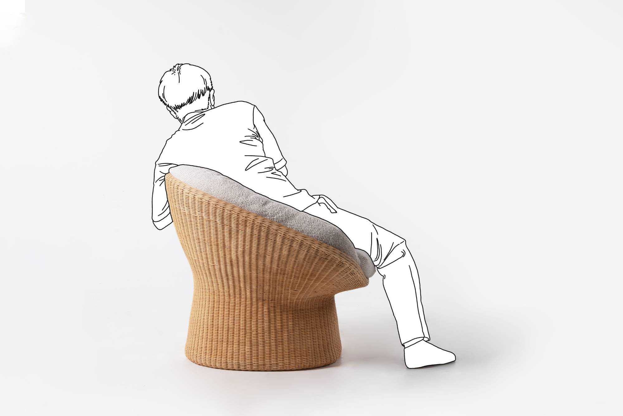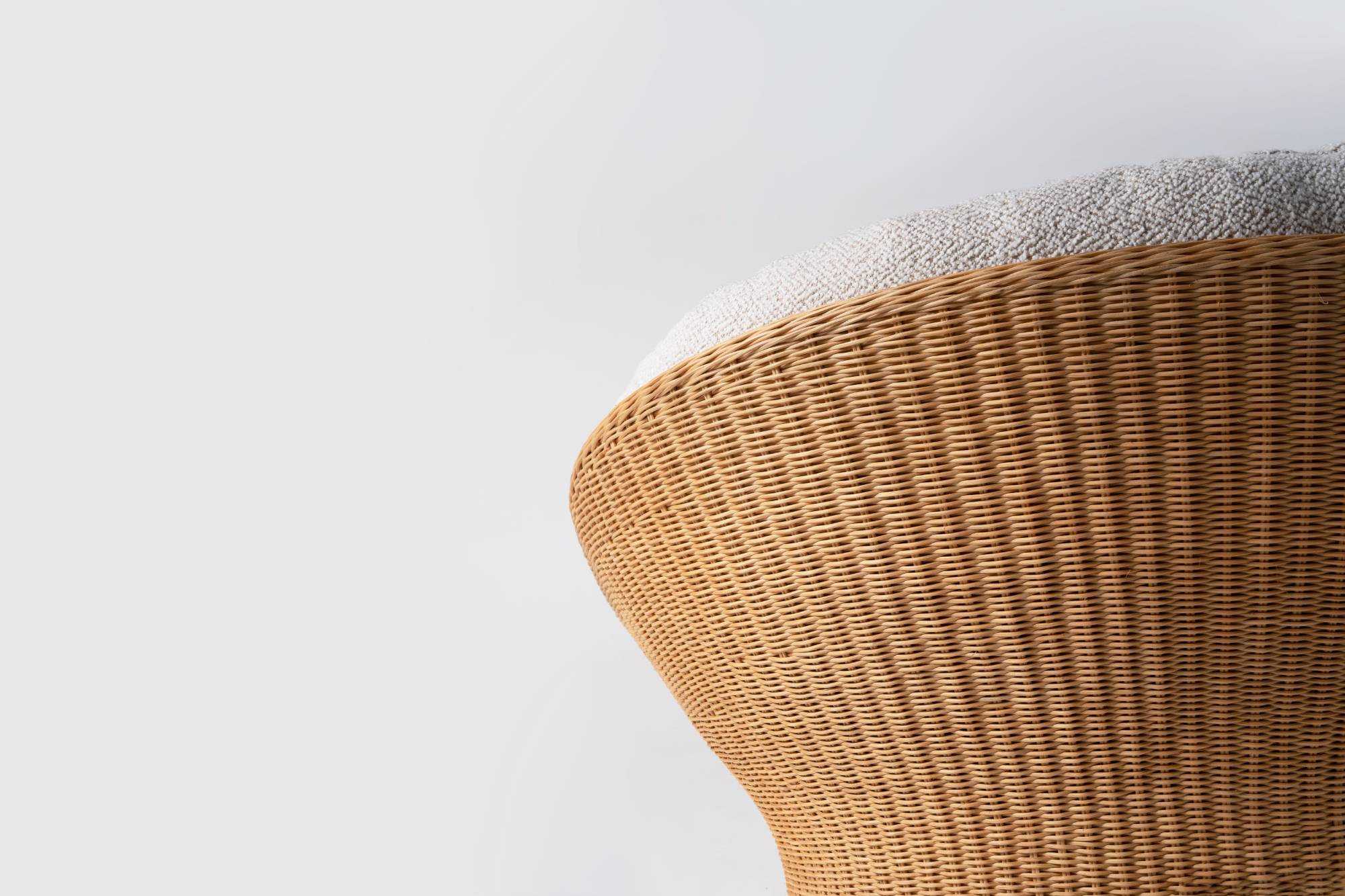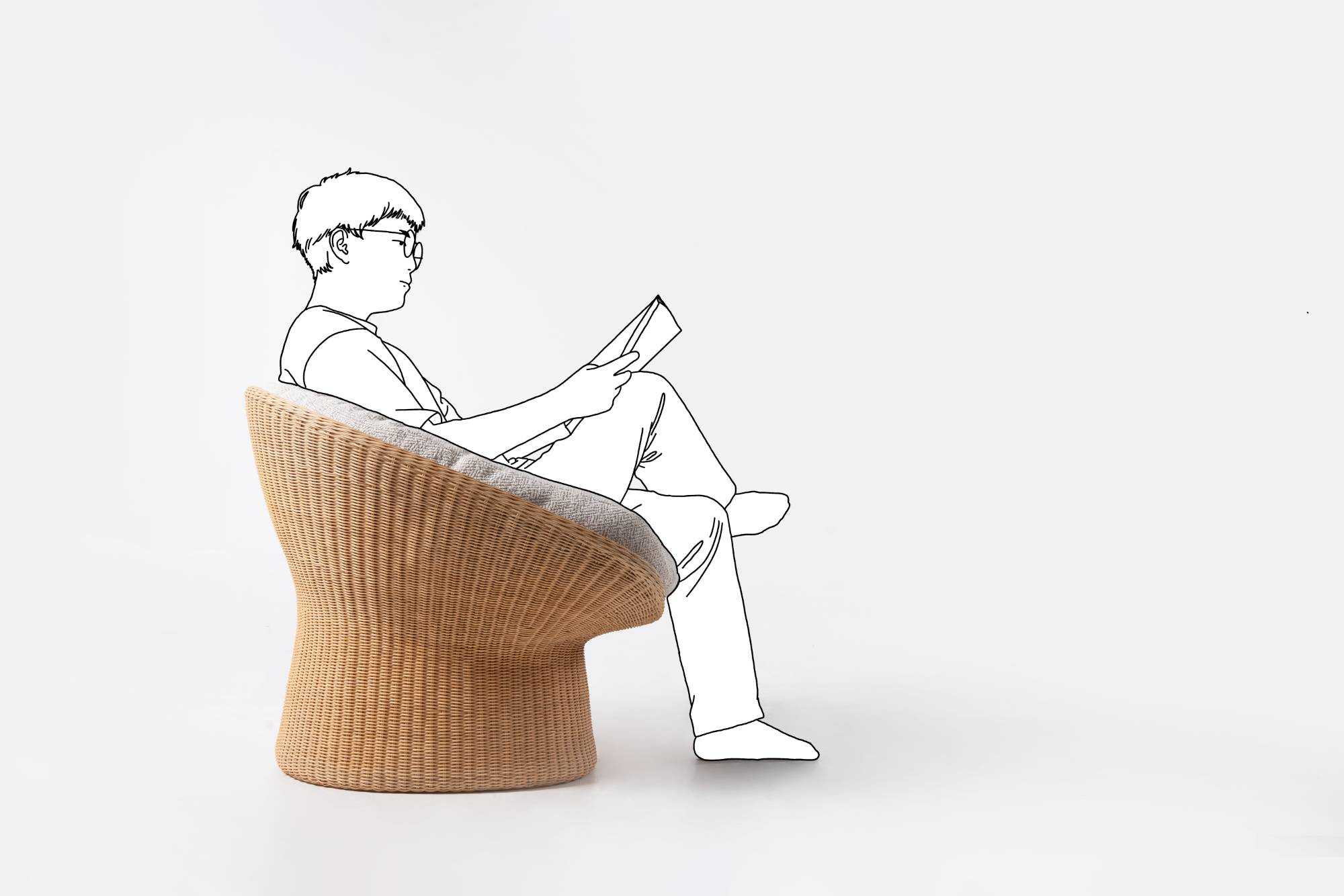 | 我对藤编的最初印象,来自于儿时回忆里的一把藤椅。后来,在发展很快的城市里,已经很难寻觅到藤椅的身影。人们似乎也不再青睐藤制品的家具,觉得“现代生活”的环境格格不入。 机械化渐渐代替了纯手工,藤编的手艺,在慢慢消失。设计师希望通过藤编的再设计唤起人们对这种材料的喜爱。 篮椅以一种现代的手法重新诠释了篮子的形态,篮椅的造型极具美感,收束的腰部与宽大的座位形成鲜明的对比,敞开的造型将软垫包裹其中。产品内部结构由金属骨架制成,为独特的形式提供了强度和稳定性,双层表面覆盖着手工编织的真藤,工艺难度复杂,这种技术需要熟练的匠人花费一周的时间。座面底部完全由海绵填充,适配的软垫依偎在座椅上,创造出现代与传统材料的融合,让人每次就座时都倍感舒适。米黄色的藤在使用中颜色会变深,这是岁月在家具上留下的痕迹。 | |||