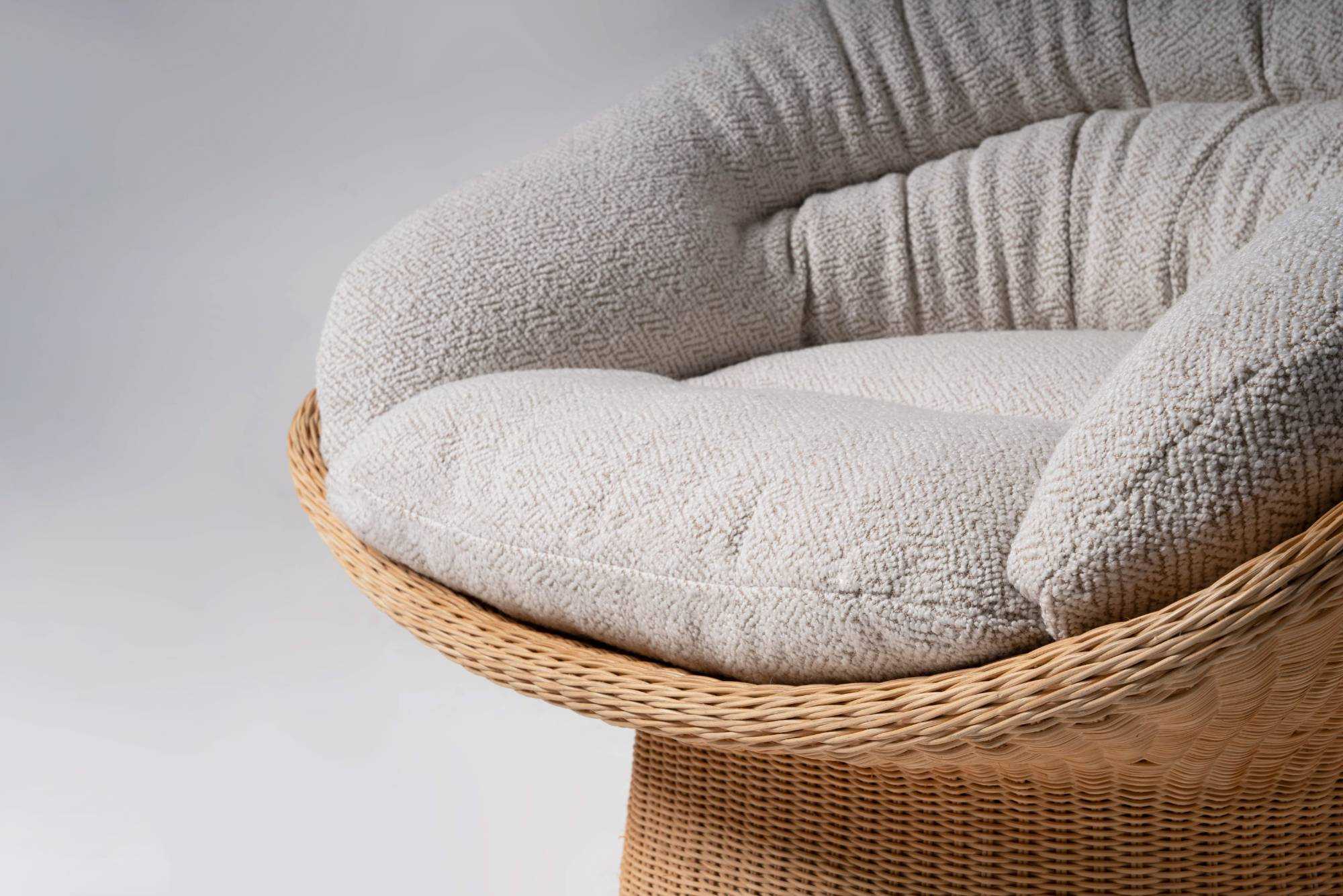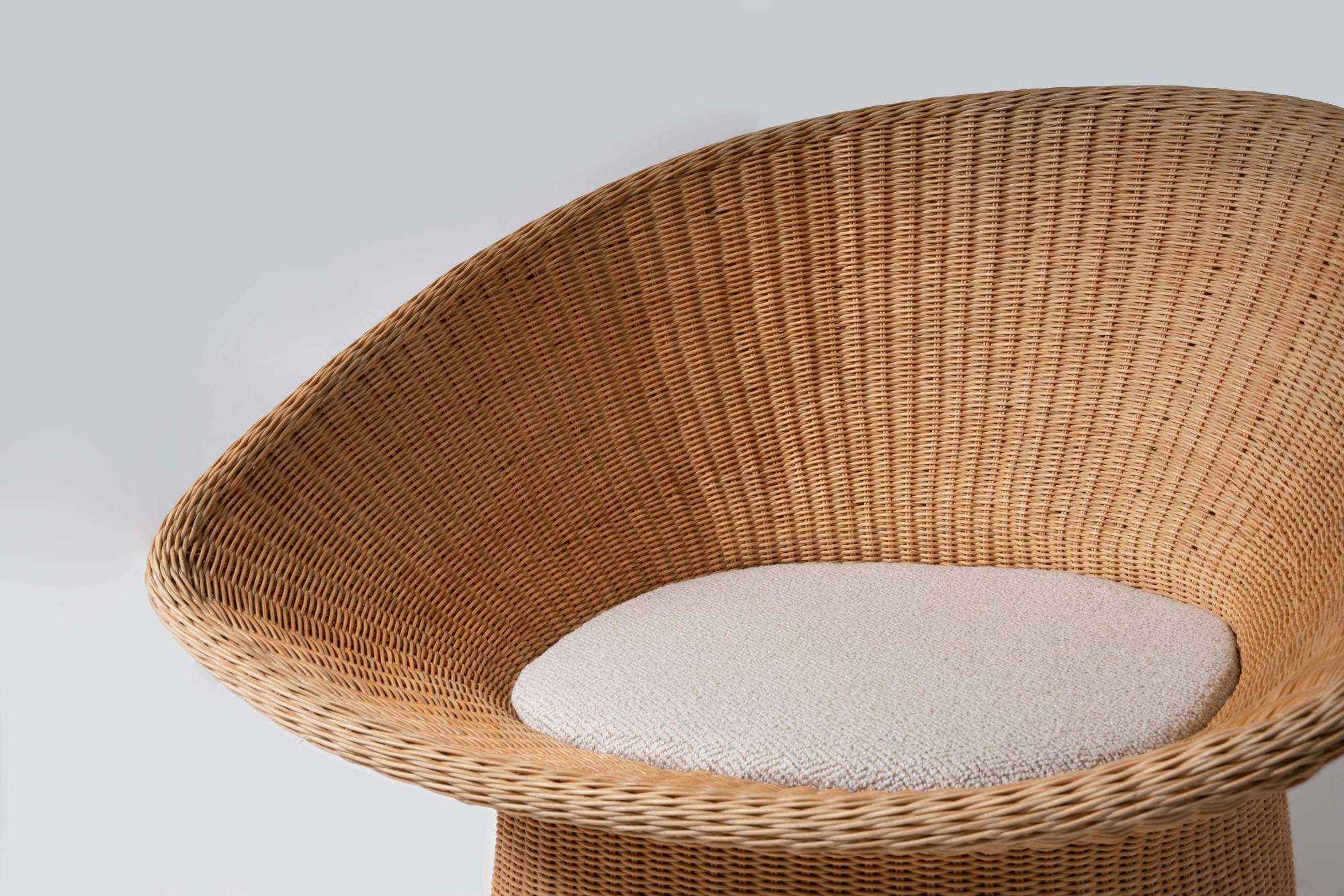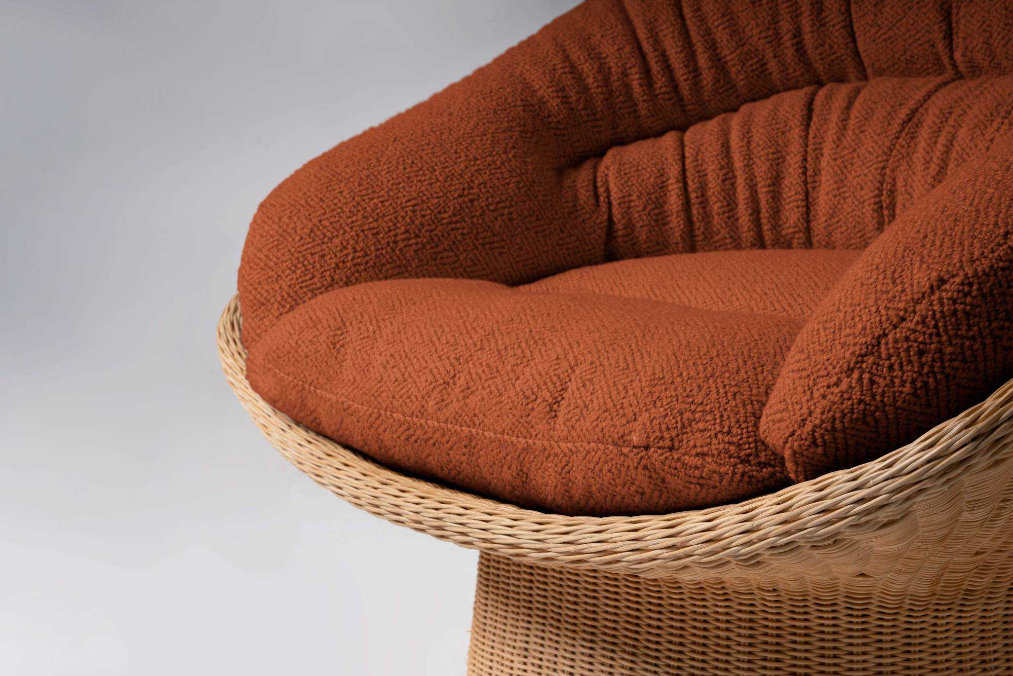 | 我对藤编的最初印象,来自于儿时回忆里的一把藤椅。后来,在发展很快的城市里,已经很难寻觅到藤椅的身影。人们似乎也不再青睐藤制品的家具,觉得“现代生活”的环境格格不入。 机械化渐渐代替了纯手工,藤编的手艺,在慢慢消失。设计师希望通过藤编的再设计唤起人们对这种材料的喜爱。 篮椅以一种现代的手法重新诠释了篮子的形态,篮椅的造型极具美感,收束的腰部与宽大的座位形成鲜明的对比,敞开的造型将软垫包裹其中。产品内部结构由金属骨架制成,为独特的形式提供了强度和稳定性,双层表面覆盖着手工编织的真藤,工艺难度复杂,这种技术需要熟练的匠人花费一周的时间。座面底部完全由海绵填充,适配的软垫依偎在座椅上,创造出现代与传统材料的融合,让人每次就座时都倍感舒适。米黄色的藤在使用中颜色会变深,这是岁月在家具上留下的痕迹。 | |||