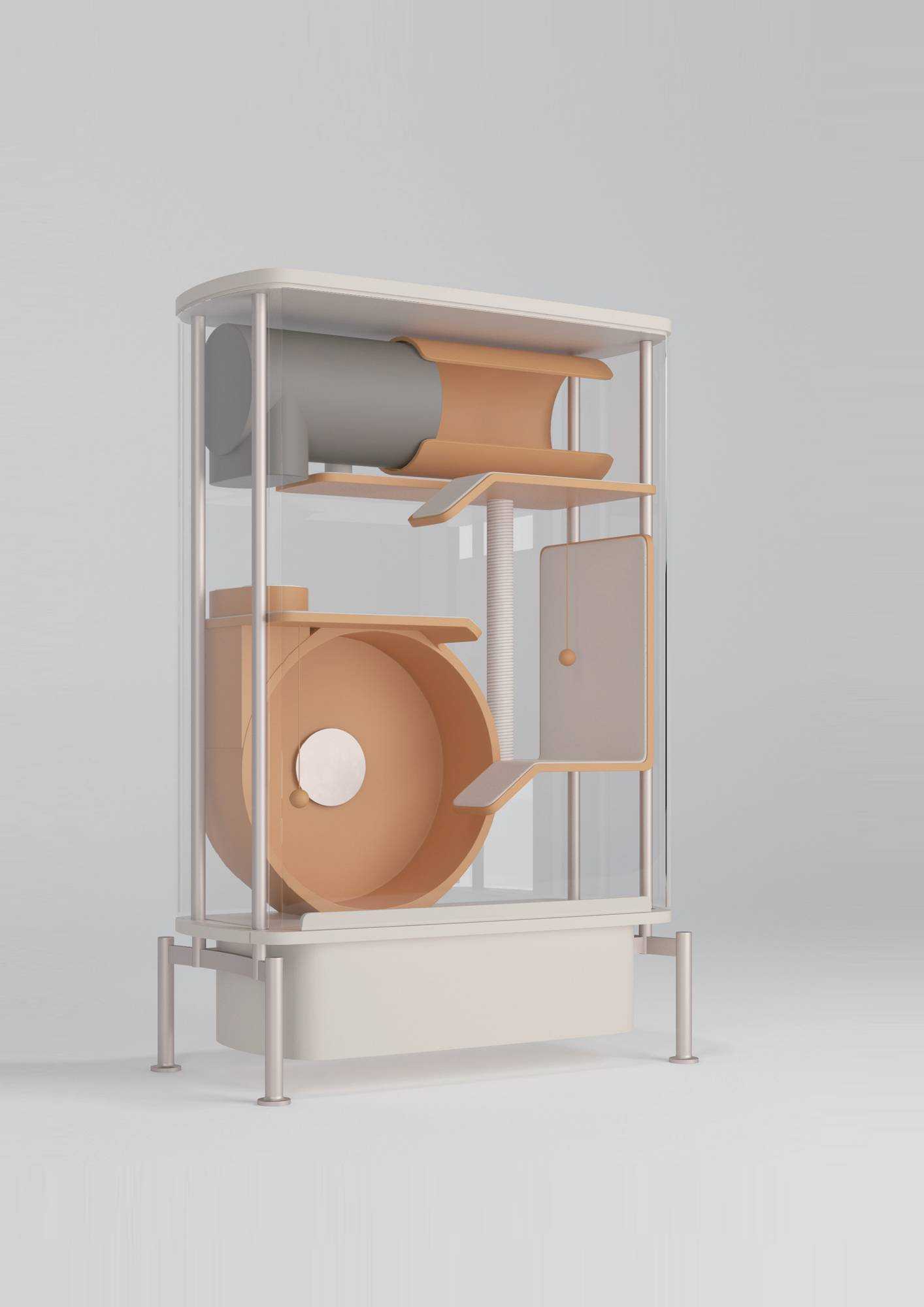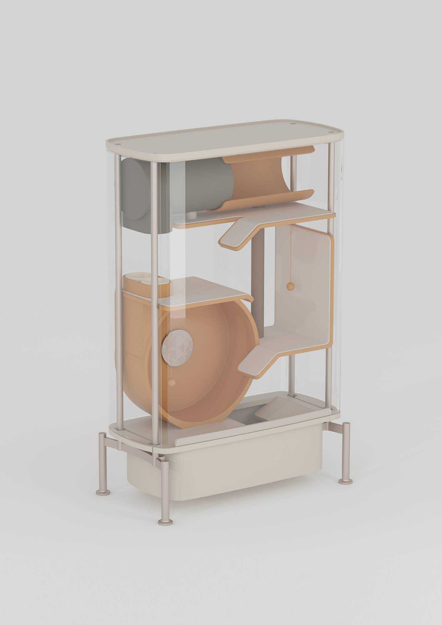 | 养猫是当下社会的一种普遍现象。养猫人士,希望给爱宠一个更温暖、有品质感的居所,去完成爱宠的饮食起居。爱宠时常无法与我们同进同出,所以需要一个集成的空间,来提供更好生存环境。这件产品 设置自动投食机器、带有新风系统的卫生间等功能。 相比于市场上同类产品,在满足基础功能之上,我们具有较好的视觉设计。让人宠在生活中都得到更好的体验。 | |||