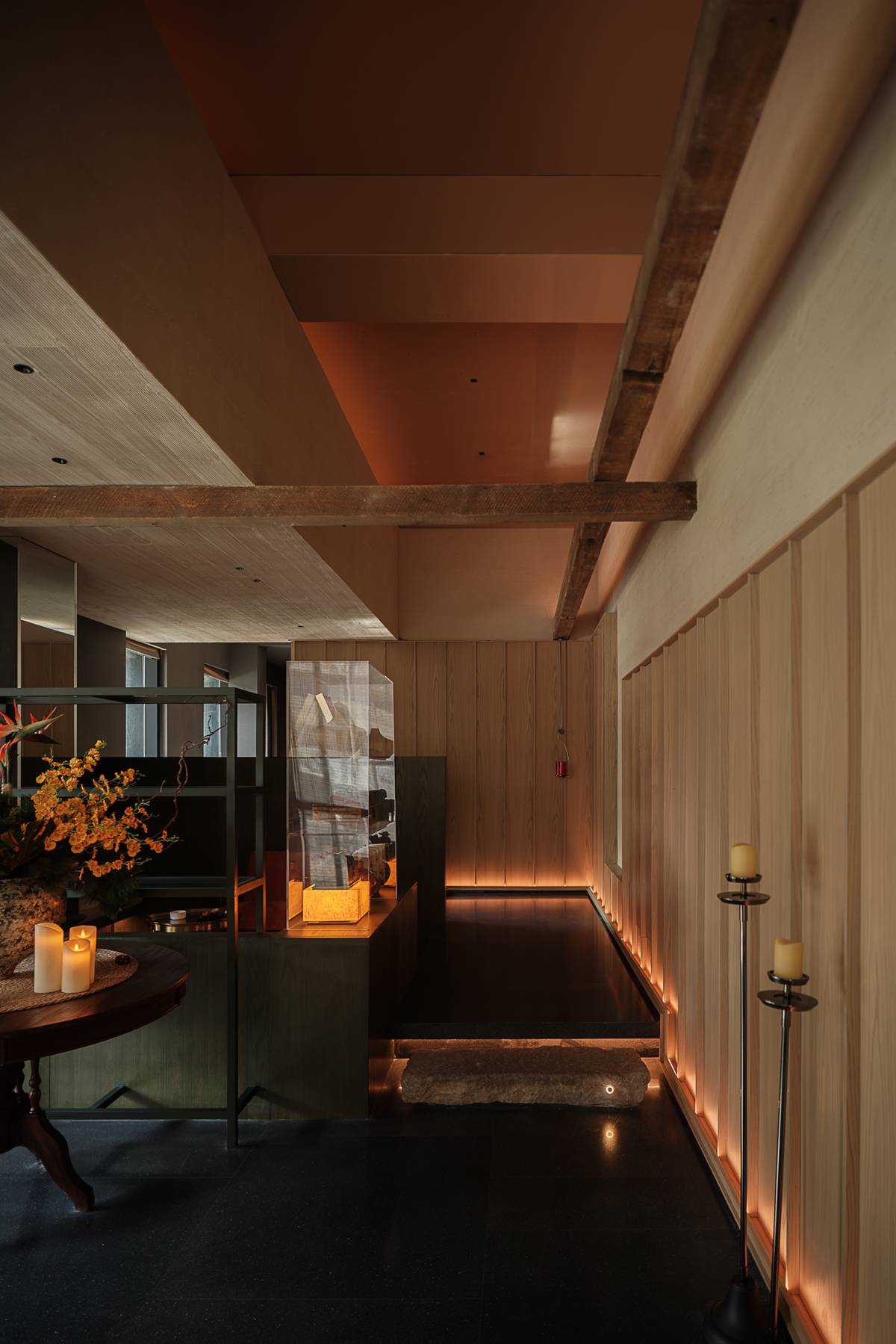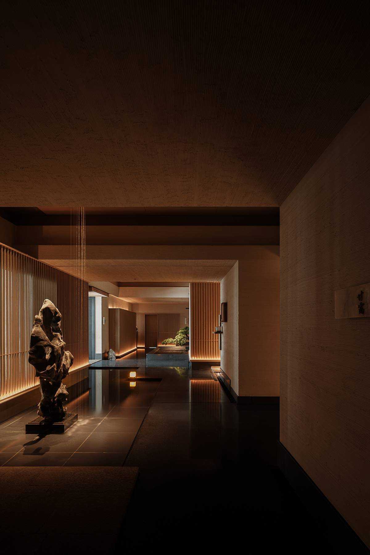 | 设计师将徐霞客的探索精神和看过的好山好水带到餐厅,让来客跟随徐霞客的脚步,一起感受这趟有美景、有美食、有乐趣的文化之旅。设计师借游园来创造饱满的情绪价值,打造拥有度假感、轻松感的餐厅。来客们在这可以抚琴听曲、烹茶品茗、酌酒对弈等等,感受东方文化中的极致浪漫,体验生活的活色生香。 自然光线酒在做旧石材的墙面上,粗糙的肌理在灯光的映衬下,使得来客踏进包厢的那一刻,沉下心来感受美食与环境。就餐时,雾化壁炉的橙红色灯光配合水蒸气,像火焰一般,象征着烟火气的生活热闹、吉祥。与传统餐厅设计不同,设计师在室内公共区域也加入了大量的景观布置:绿植、太湖石、栈道、流水、依水布置的包厢,与自然为伍,脚下蜿蜒曲折的道路指引着勇敢的探索者,向未知的美好出发。 在这里,时间都慢了下来,空间里充满了故事。在这里,它静静地在等待着每位宾客的到来,岁月静好和文化沉淀在此交织。期待宾客们一起诉说着彼此的经历,进行一场轻松的、文化的心灵之旅。 | |||