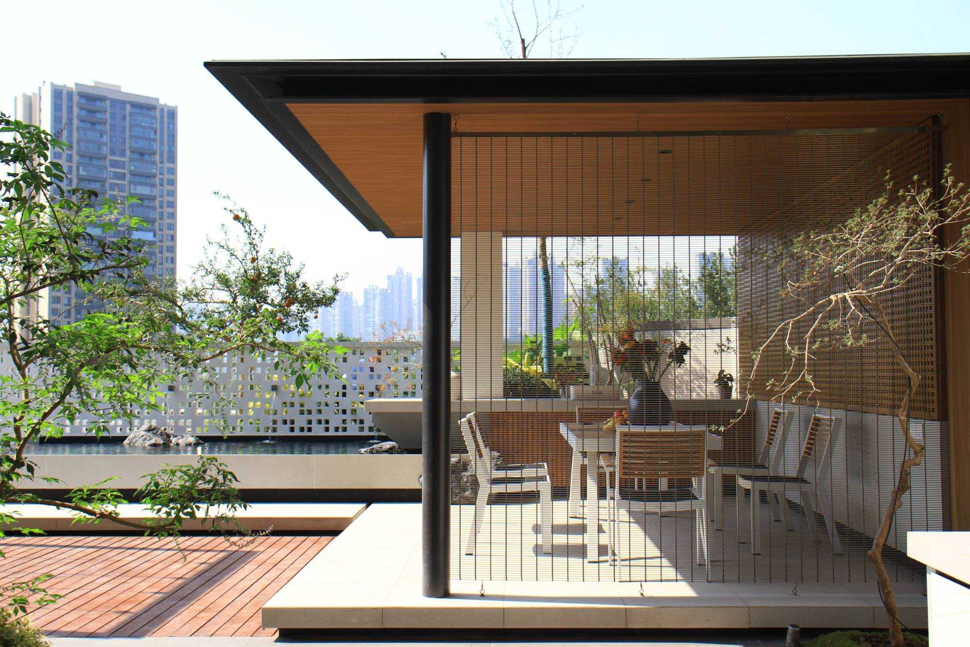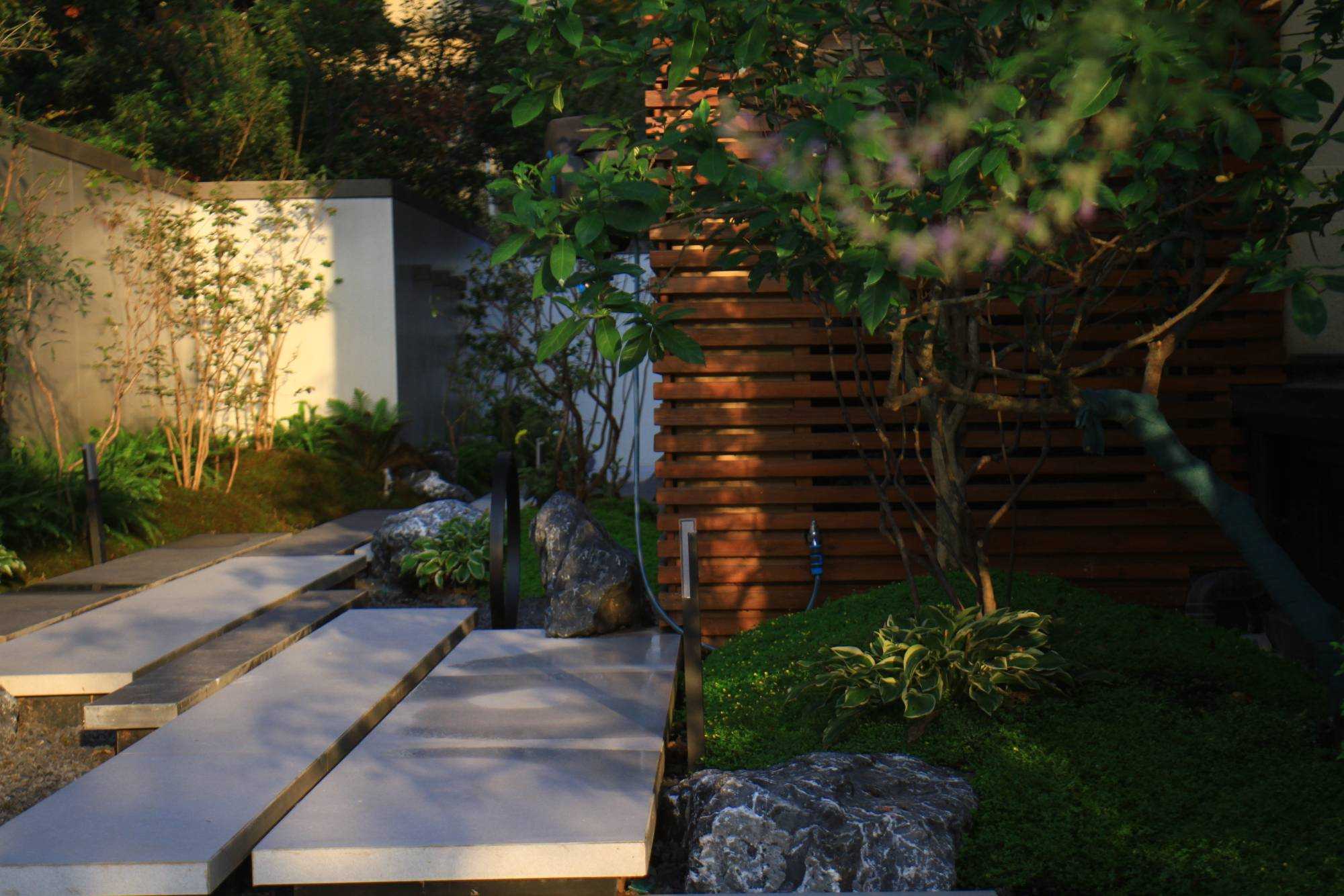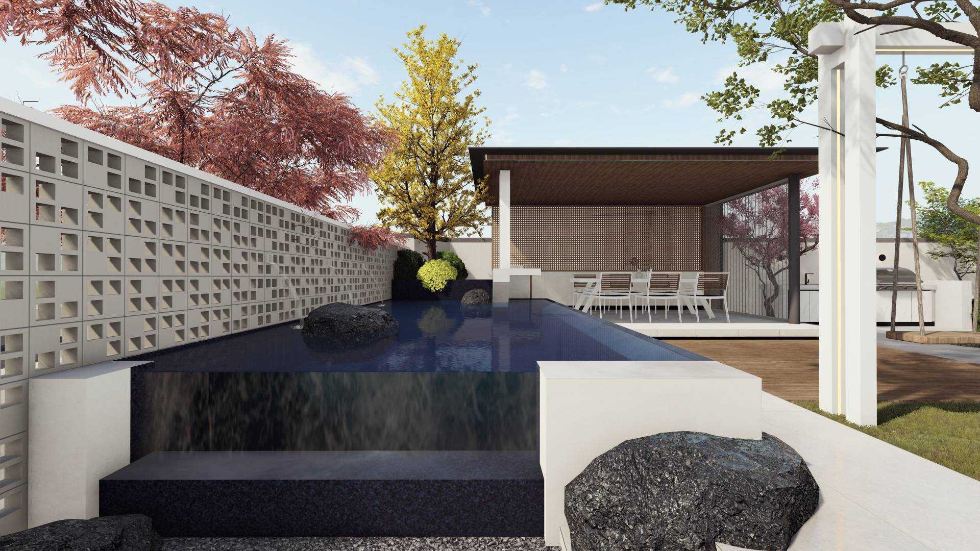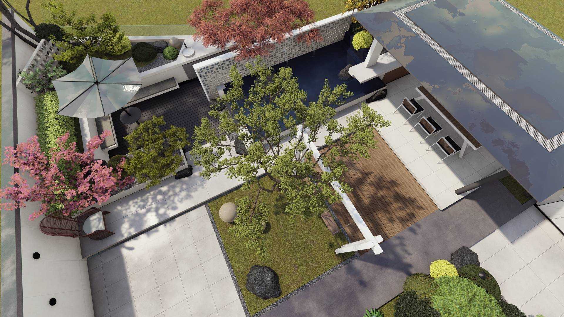 | 花园客户为一对母女,在与设计师沟通中,母亲与女儿都对花园充满了向往,整个花园包容了她们未来的无限时光。 东向简洁的花园入户门厅体现出园主人的低调与内涵。嵌入半透玻璃的花园大门宽敞且不失比例,还增加一点神秘感。 推门而入,眼前一副误入野山深处的自然画面,内心不由自主生出一种想探秘的情绪。左侧空间为老人房的主题花园,暖色屏风和暖色原木地板使得此处小空间显得格外温馨与静谧。 北侧花园,由东向西,高围墙带来的安全敢胜似大山,踱步在山脚下,错位排布的平桥步道,以曲径通幽的方式向前延伸,控制着行进的方向,端景随着步伐不断变幻,营造出在山间树林里穿梭的感受。 树林出口处豁然开朗,花园厨房(操作台)与花园餐厅的极简凉亭紧邻,金属筛网为其罩上一层神秘的面纱,里面的场景若隐若现,呈现出含蓄的美感。坐西北朝东南的花园餐厅,面向一座亲子秋千,原木地板及草坪为秋千的快乐增加了一道安全保障和松弛感,这个秋千是母亲回忆儿时的美好童年,也是女儿现在的快乐玩伴,承载了两代人的独特记忆。 餐厅内回望北院林间小道,有一种一夫当关万夫莫开的霸气,同时又有一种身处深山的清净自由的感受。 餐厅操作台与水景相互咬合,以一艘船舶驶入江海的姿态将水景引入凉亭之中,同时扩宽了操作台的展面,大气且增加了实用性。凉亭内主座位面相西南方位的水面,波光粼粼的水面倒映着广阔天空中的景象。 水池西向规整的镂空景墙能让视线透墙而过向远处延伸,且对气流的流通影响较弱。夕阳的光透射到水面映衬着景墙的倒影,又是一副自然的画面。 穿过水池前的“浮桥”(平桥步道),右侧台阶下行来到了花园客厅,客厅下沉避免建筑门厅正前方视线被遮挡,此区域和室内客厅区域西晒的问题大大减弱,同时也增加了花园客厅的私密性、围合性和舒适性。在花园客厅的位置能够很好的与花园餐厅进行互动,两区域中间通过抬高的水面将视觉放大化,使得整个场景得到升华。 利用花园客厅下沉的高差,西面的种植池横向由南向北贯穿,形成一个带操作台功能的远眺吧台。吧台后背是水池的镂空景墙,前方远处是公园及江景,是最隐蔽的冥想空间。 整个西面的花园,通过生动的水景将花园餐厅(凉亭区)、花园客厅(下沉区),活动区(草坪秋千区)紧密结合在一起,既统一又独立的布局,为整个花园空间带来了静谧与松弛感。 | |||