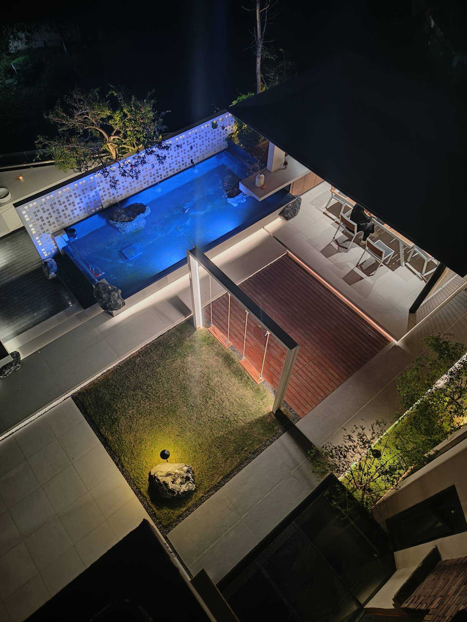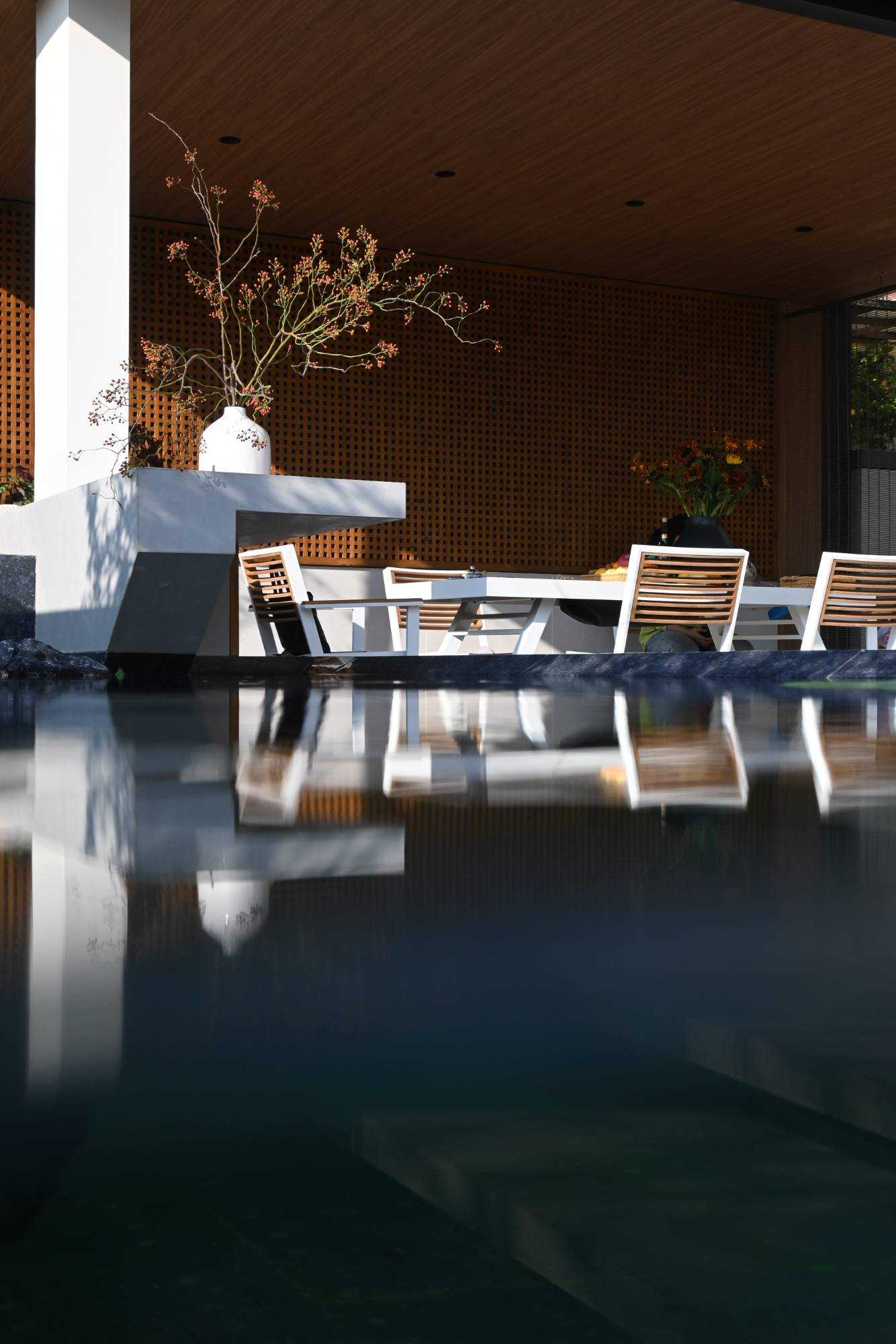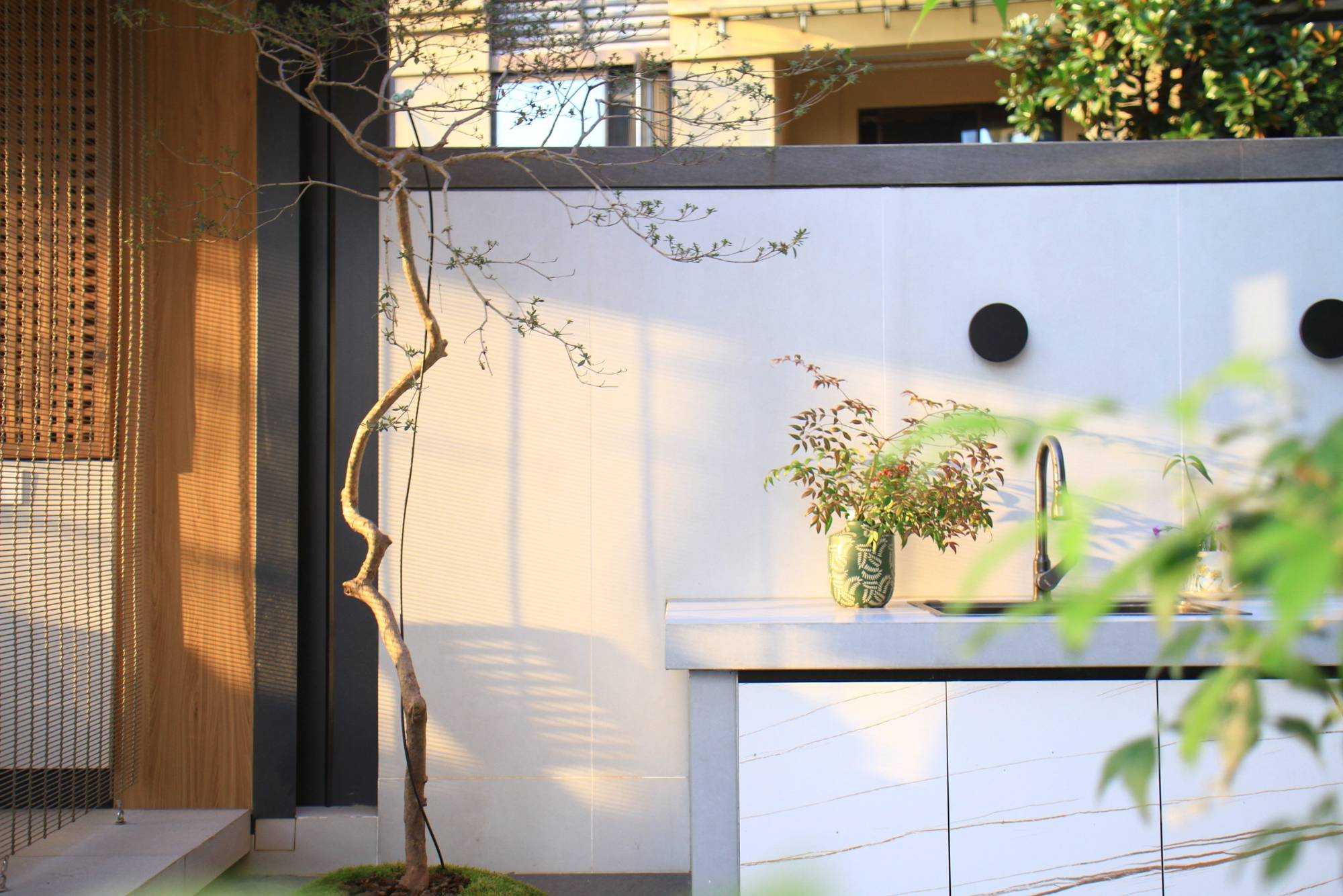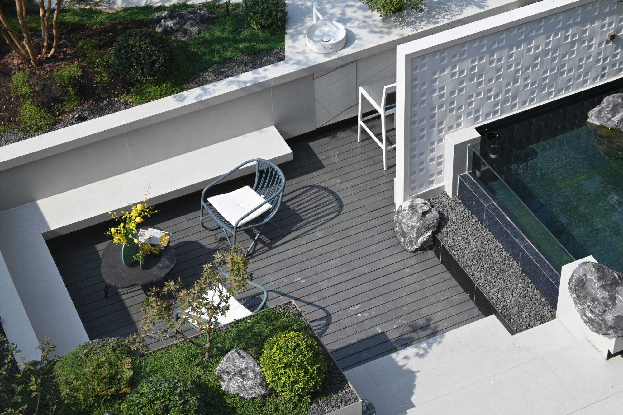 | 花园客户为一对母女,在与设计师沟通中,母亲与女儿都对花园充满了向往,整个花园包容了她们未来的无限时光。 东向简洁的花园入户门厅体现出园主人的低调与内涵。嵌入半透玻璃的花园大门宽敞且不失比例,还增加一点神秘感。 推门而入,眼前一副误入野山深处的自然画面,内心不由自主生出一种想探秘的情绪。左侧空间为老人房的主题花园,暖色屏风和暖色原木地板使得此处小空间显得格外温馨与静谧。 北侧花园,由东向西,高围墙带来的安全敢胜似大山,踱步在山脚下,错位排布的平桥步道,以曲径通幽的方式向前延伸,控制着行进的方向,端景随着步伐不断变幻,营造出在山间树林里穿梭的感受。 树林出口处豁然开朗,花园厨房(操作台)与花园餐厅的极简凉亭紧邻,金属筛网为其罩上一层神秘的面纱,里面的场景若隐若现,呈现出含蓄的美感。坐西北朝东南的花园餐厅,面向一座亲子秋千,原木地板及草坪为秋千的快乐增加了一道安全保障和松弛感,这个秋千是母亲回忆儿时的美好童年,也是女儿现在的快乐玩伴,承载了两代人的独特记忆。 餐厅内回望北院林间小道,有一种一夫当关万夫莫开的霸气,同时又有一种身处深山的清净自由的感受。 餐厅操作台与水景相互咬合,以一艘船舶驶入江海的姿态将水景引入凉亭之中,同时扩宽了操作台的展面,大气且增加了实用性。凉亭内主座位面相西南方位的水面,波光粼粼的水面倒映着广阔天空中的景象。 水池西向规整的镂空景墙能让视线透墙而过向远处延伸,且对气流的流通影响较弱。夕阳的光透射到水面映衬着景墙的倒影,又是一副自然的画面。 穿过水池前的“浮桥”(平桥步道),右侧台阶下行来到了花园客厅,客厅下沉避免建筑门厅正前方视线被遮挡,此区域和室内客厅区域西晒的问题大大减弱,同时也增加了花园客厅的私密性、围合性和舒适性。在花园客厅的位置能够很好的与花园餐厅进行互动,两区域中间通过抬高的水面将视觉放大化,使得整个场景得到升华。 利用花园客厅下沉的高差,西面的种植池横向由南向北贯穿,形成一个带操作台功能的远眺吧台。吧台后背是水池的镂空景墙,前方远处是公园及江景,是最隐蔽的冥想空间。 整个西面的花园,通过生动的水景将花园餐厅(凉亭区)、花园客厅(下沉区),活动区(草坪秋千区)紧密结合在一起,既统一又独立的布局,为整个花园空间带来了静谧与松弛感。 | |||